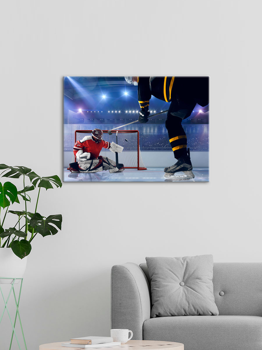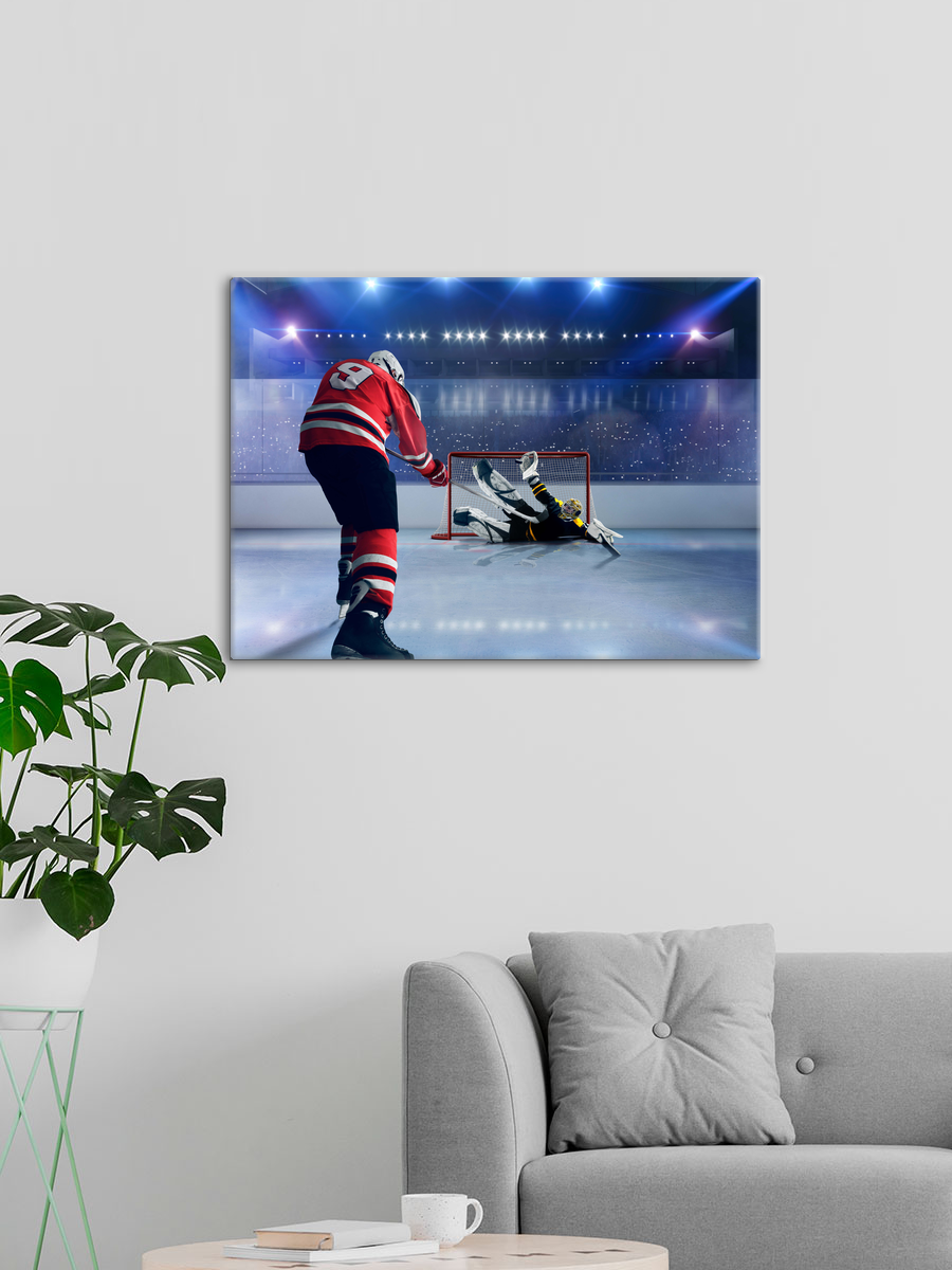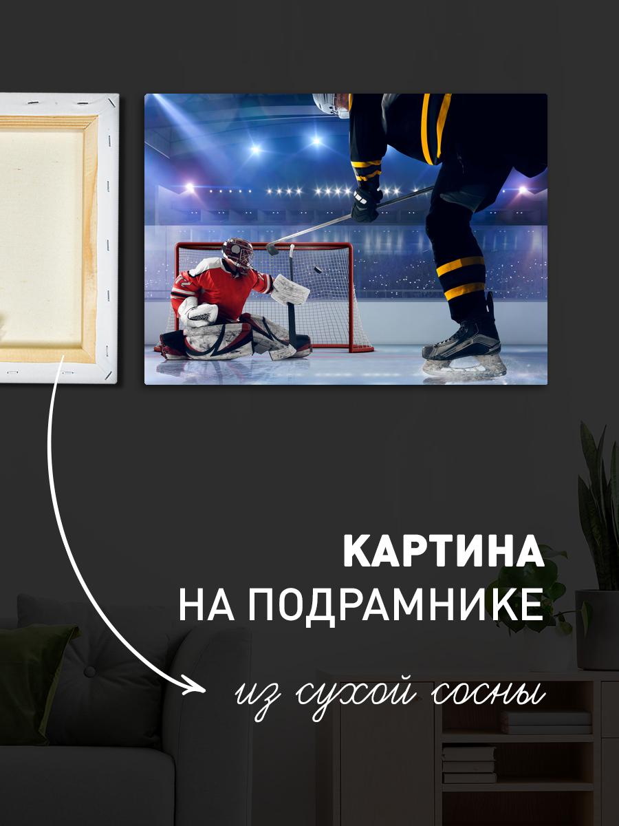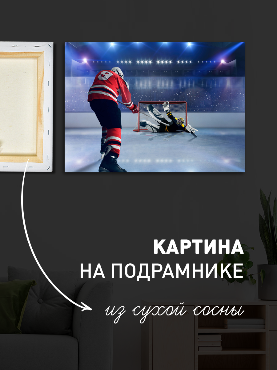 Описание: Картина 50 на 70 "Хоккейная битва" изображает захватывающий момент хоккейного матча, когда игрок с клюшкой готовится нанести удар по шайбе, а вратарь в красной форме напряженно ждет, готовясь к спасению. Эта сцена наполнена энергией и динамикой, передавая атмосферу спортивного азарта и соревнования. Каждая деталь картины была тщательно прорисована, чтобы передать не только физическое напряжение, но и эмоциональное волнение, которое испытывают игроки на льду. Яркие контрастные цвета, такие как красный и черный, создают ощущение движения и скорости, а освещение добавляет драматичности и глубины. Эта картина вызывает чувство страсти и адреналина, что делает её идеальным дополнением для любителей спорта и активного образа жизни. Она сможет вдохновить и мотивировать, напоминая о важности стремления к победе и командной работе. "Хоккейная битва" отлично впишется как в современный, так и в классический интерьер. Вы можете повесить её в гостиной, кабинете или даже в спортивном зале, создавая атмосферу динамики и вдохновения. Эта картина станет настоящим центром внимания, привнося в ваше пространство дух соревнования и азарт хоккейного матча.