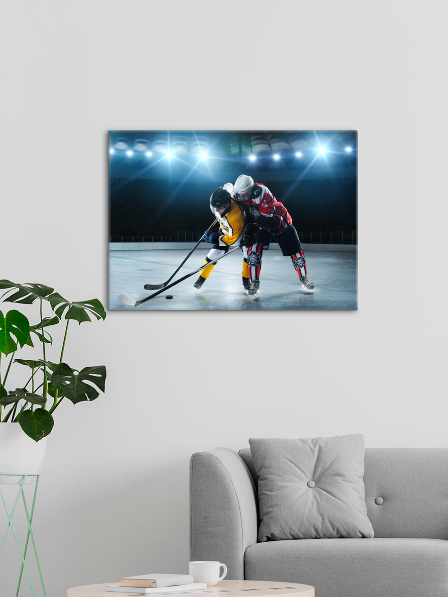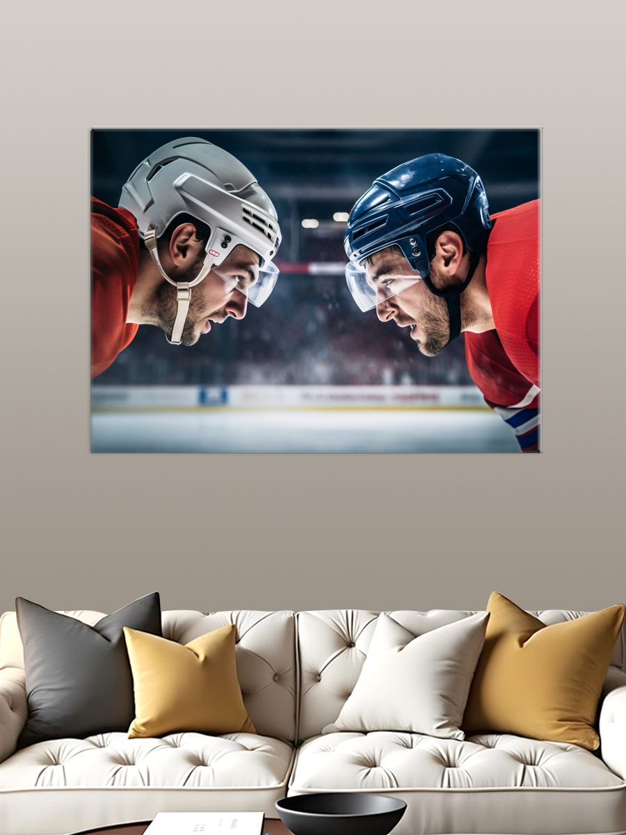 Описание: Картина 50 на 70 "Схватка на льду" изображает напряжённый момент хоккейного матча, где два игрока, одетые в яркие формы, стоят лицом к лицу, готовые к борьбе за победу. Их сосредоточенные взгляды и физическая близость передают дух соревнования и адреналин, который испытывают спортсмены в такие моменты. Уникальность этой картины заключается в её способности передать не только динамику игры, но и эмоции, которые переживают игроки и зрители. Эта картина вызывает чувство восторга и напряжённости, напоминая о страсти и решимости, которые сопутствуют спорту. Она может вызвать у зрителя желание быть частью этого захватывающего мира, вдохновляя на собственные достижения. Идеально вписывается в интерьеры спортивных залов, домашних кабинетов или игровых комнат, а также в офисы, где ценят активный образ жизни и спортивные достижения. Картина станет ярким акцентом на стене, добавляя динамики и энергии в любое пространство. Она также подходит для подарка любителям хоккея и активного образа жизни, а также всем, кто ценит искусство, передающее движение и эмоции.