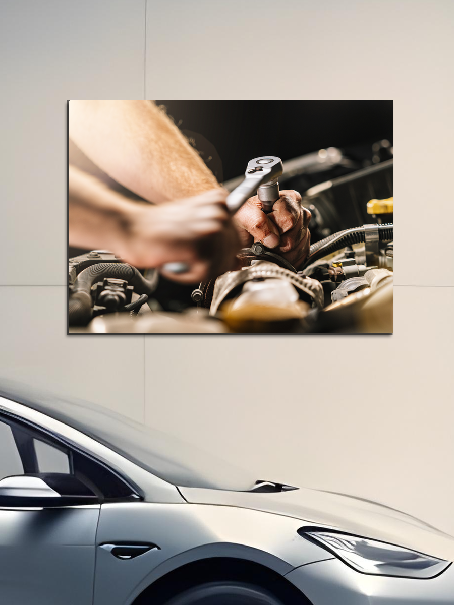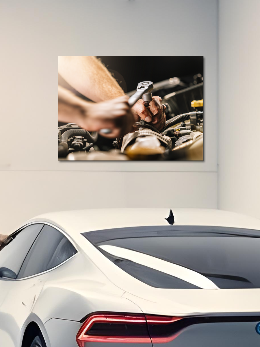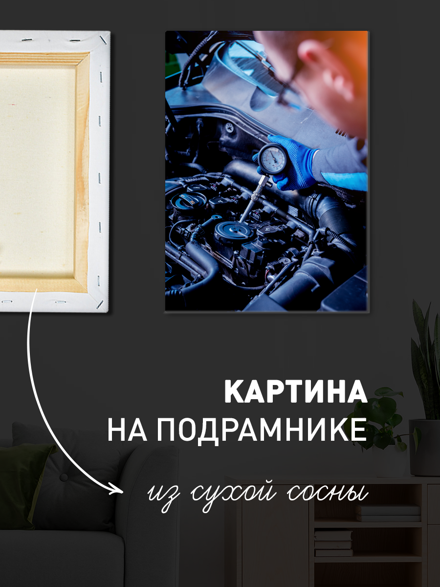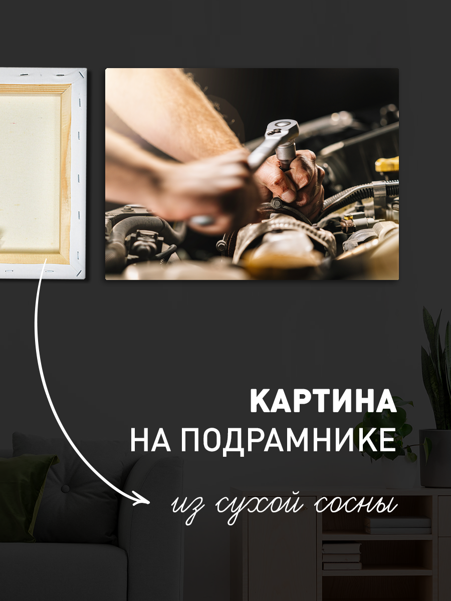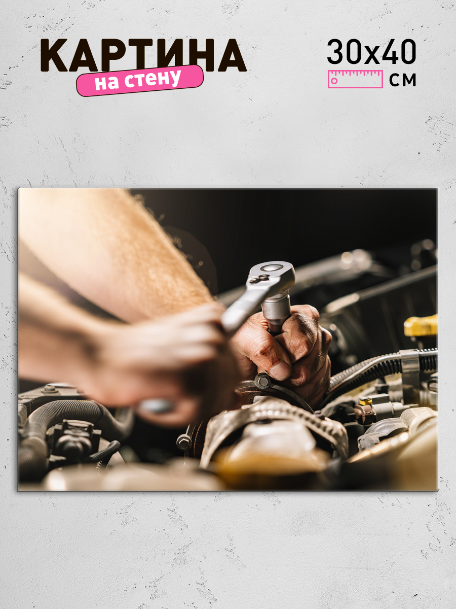 Описание: Картина 50 на 70 'Механика в действии' изображает момент, когда мастер с увлечением работает под капотом автомобиля, используя инструмент для ремонта. Эта работа наполнена динамикой и энергией, передающей страсть к механике и автомобилям. Уникальность картины заключается в передаче детальной текстуры и эмоций, которые вызывает процесс работы, что позволяет зрителю ощутить атмосферу гаража и погрузиться в мир автосервиса. Картина вызывает чувство восхищения и уважения к ремеслу, демонстрируя, как важно внимание к деталям и мастерство в работе. Это изображение способно вдохновить на творчество, пробуждая в зрителе желание заниматься чем-то своим, важным и значимым. Оно идеально подойдет для интерьеров, оформленных в современном или индустриальном стиле: в офисах, мастерских, а также в гаражах или зонах отдыха. Разместив эту картину на стене, вы добавите в пространство нотки динамики и вдохновения, создавая уникальную атмосферу, которая будет радовать глаз и поднимать настроение. 'Механика в действии' станет не только украшением вашего интерьера, но и источником позитивной энергии и мотивации.