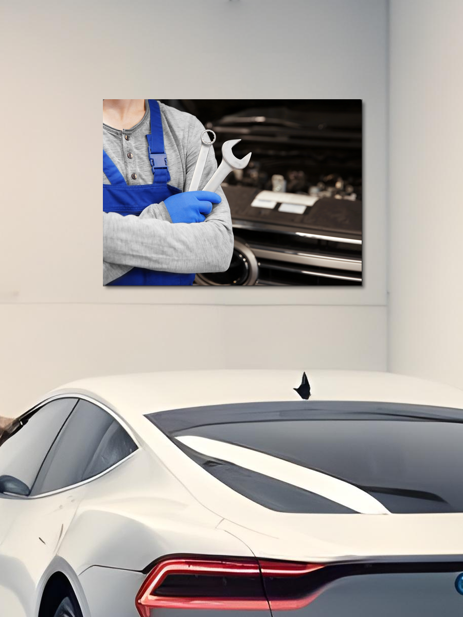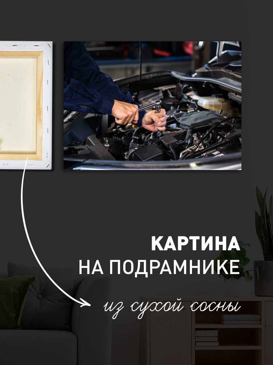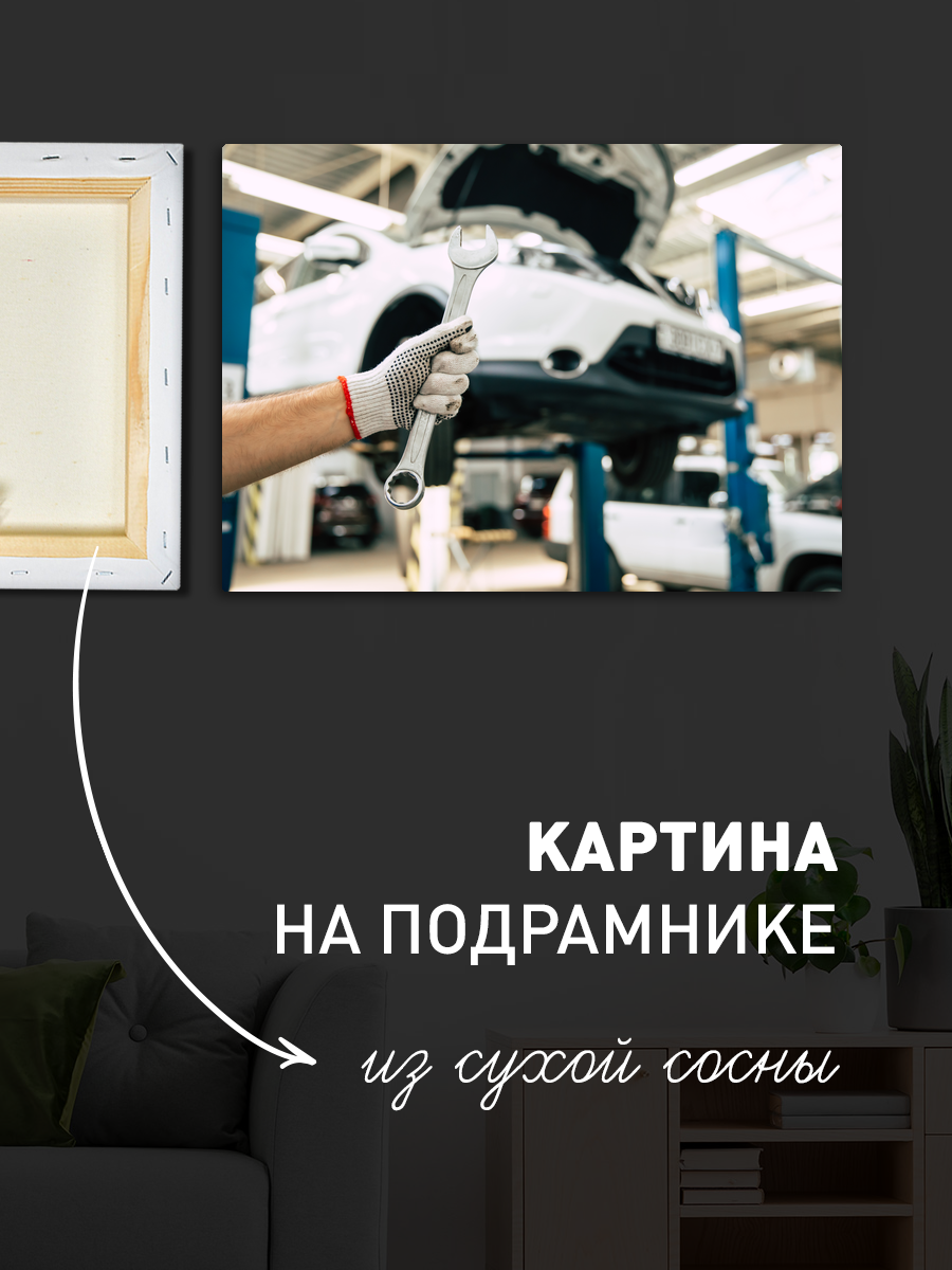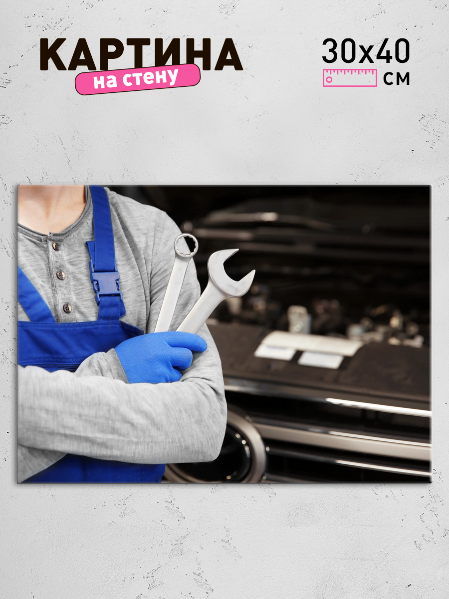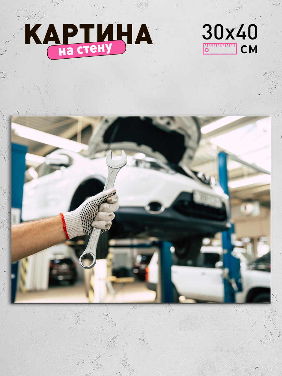 Описание: Картина 50 на 70 "Механика в действии". На этом произведении искусства изображен мастеровой, который уверенно держит в руке гаечный ключ, стоя на фоне автомобиля, поднятого на подъемнике. Основная идея картины заключается в передаче силы и уверенности, которые испытывает человек, работающий с техникой. Уникальность картины заключается в детализированном изображении инструмента и автомобиля, что создает ощущение динамики и профессионализма. Эмоции, вызываемые этой картиной, – это вдохновение и мотивация. Она напоминает о том, как важно быть в гармонии с техникой и окружающим миром. Каждый раз, глядя на нее, вы будете чувствовать прилив энергии и стремление к действию, что делает её идеальным акцентом для рабочего пространства или мастерской. Эта картина отлично впишется в интерьер современного кабинета, гаража или студии, добавляя нотку креативности и профессионализма. Она также станет замечательным подарком для автолюбителей и мастеров, подчеркивая их страсть к технике и ремонту.