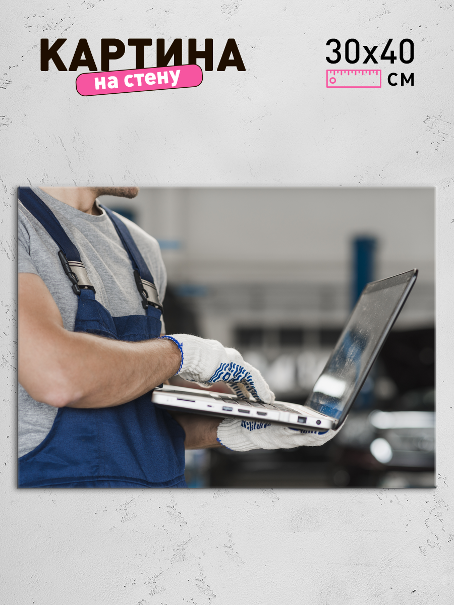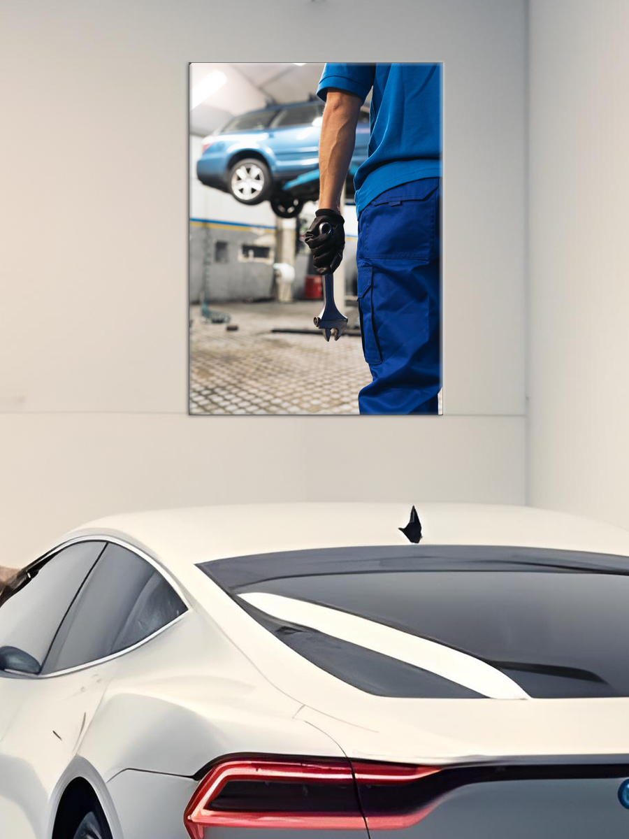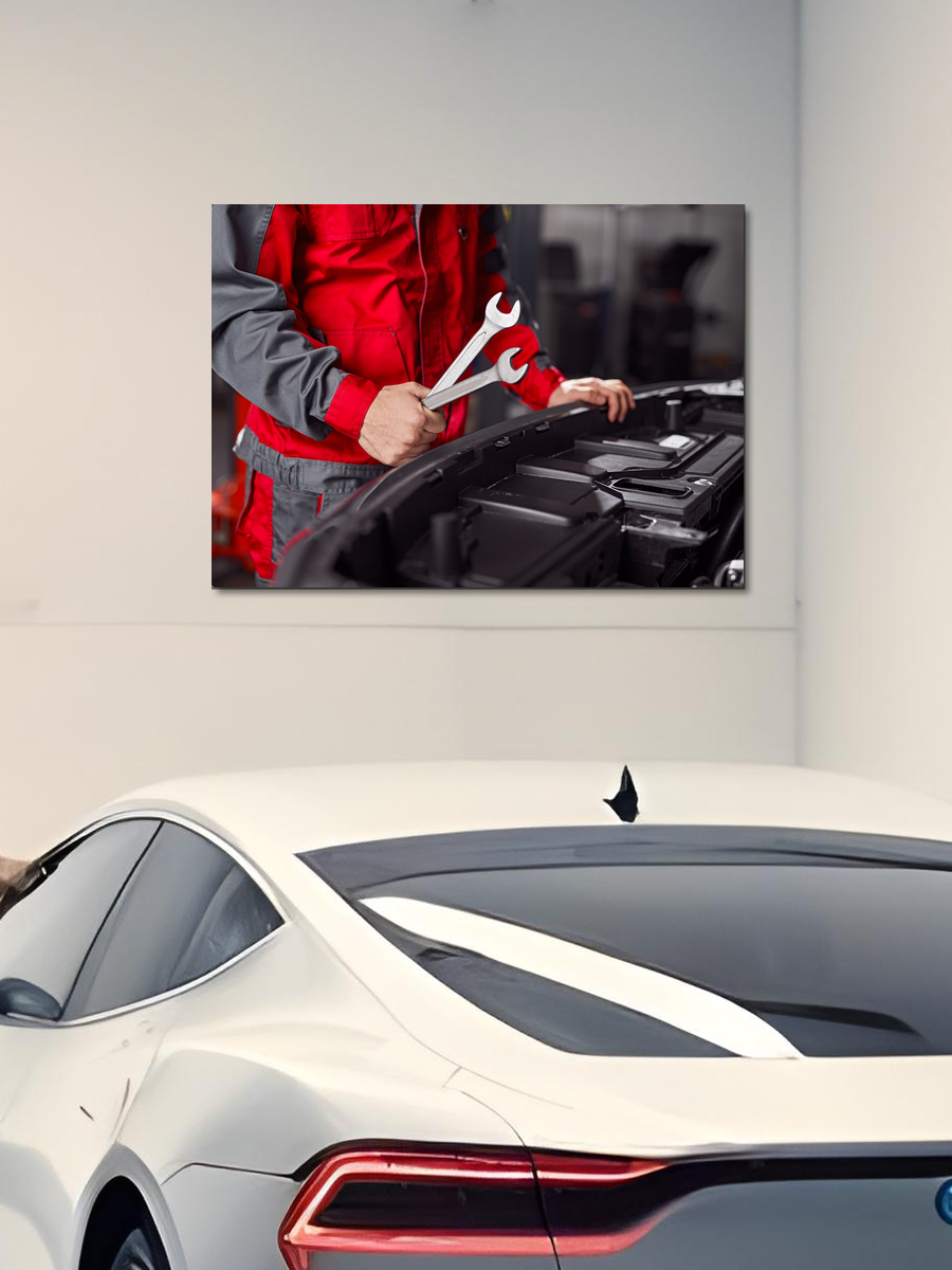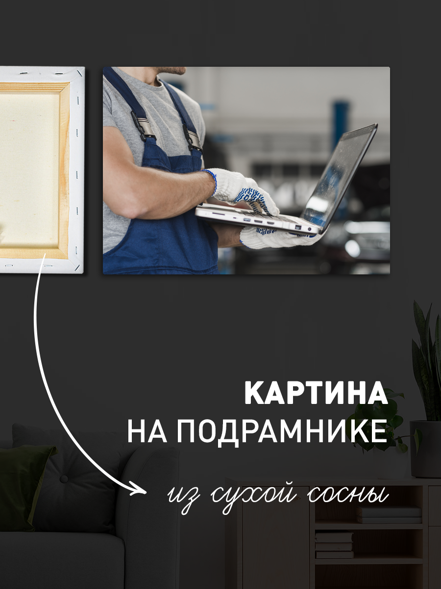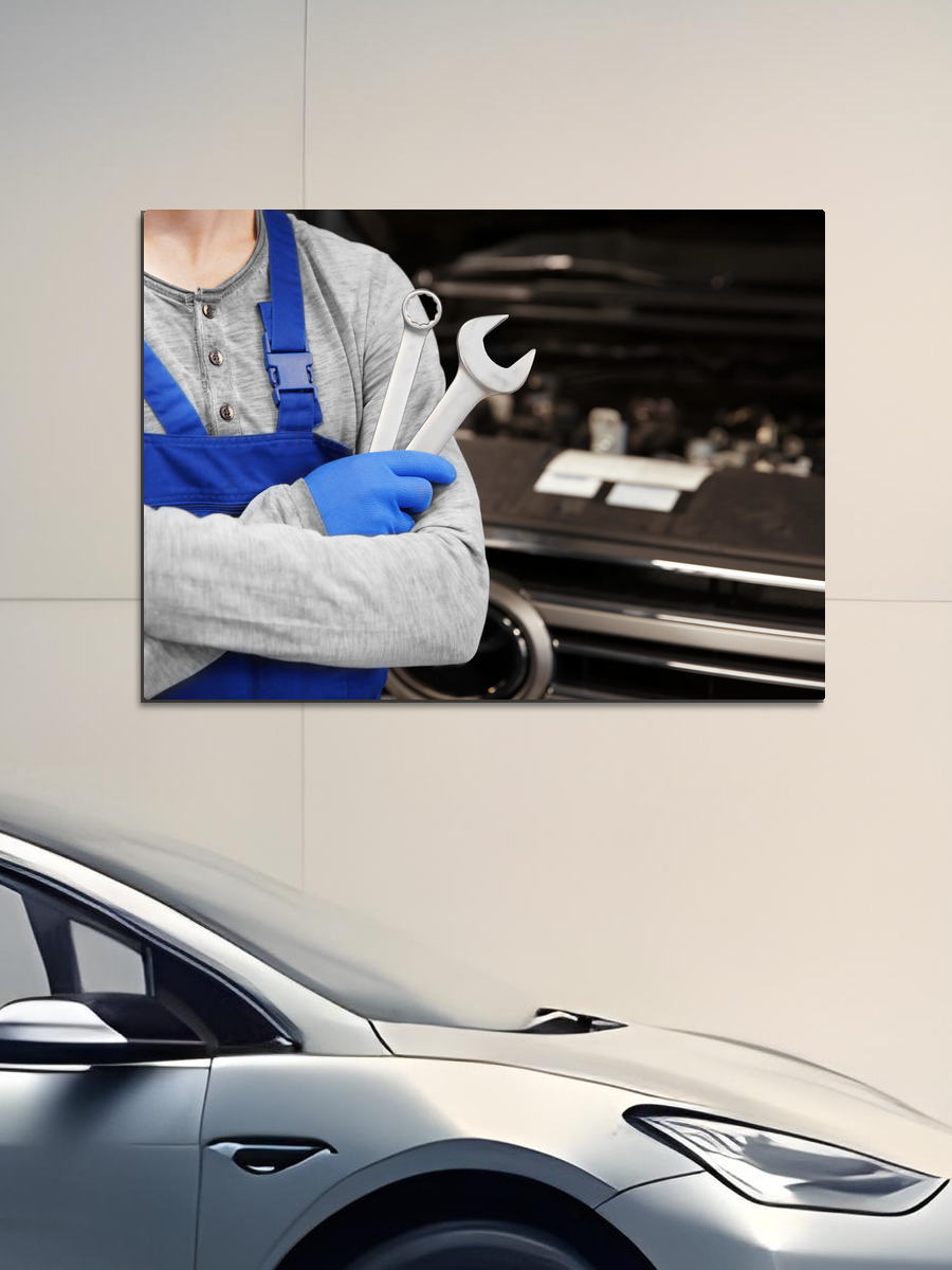 Описание: Картина 50 на 70 "Механика в действии". На этом произведении искусства изображен мастеровой, который уверенно держит в руке гаечный ключ, стоя на фоне автомобиля, поднятого на подъемнике. Основная идея картины заключается в передаче силы и уверенности, которые испытывает человек, работающий с техникой. Уникальность картины заключается в детализированном изображении инструмента и автомобиля, что создает ощущение динамики и профессионализма. Эмоции, вызываемые этой картиной, – это вдохновение и мотивация. Она напоминает о том, как важно быть в гармонии с техникой и окружающим миром. Каждый раз, глядя на нее, вы будете чувствовать прилив энергии и стремление к действию, что делает её идеальным акцентом для рабочего пространства или мастерской. Эта картина отлично впишется в интерьер современного кабинета, гаража или студии, добавляя нотку креативности и профессионализма. Она также станет замечательным подарком для автолюбителей и мастеров, подчеркивая их страсть к технике и ремонту.