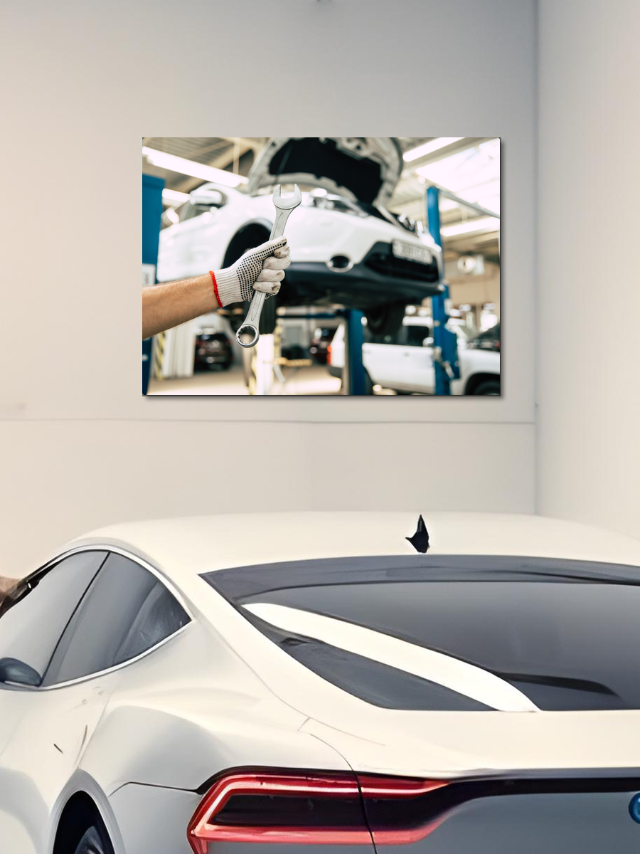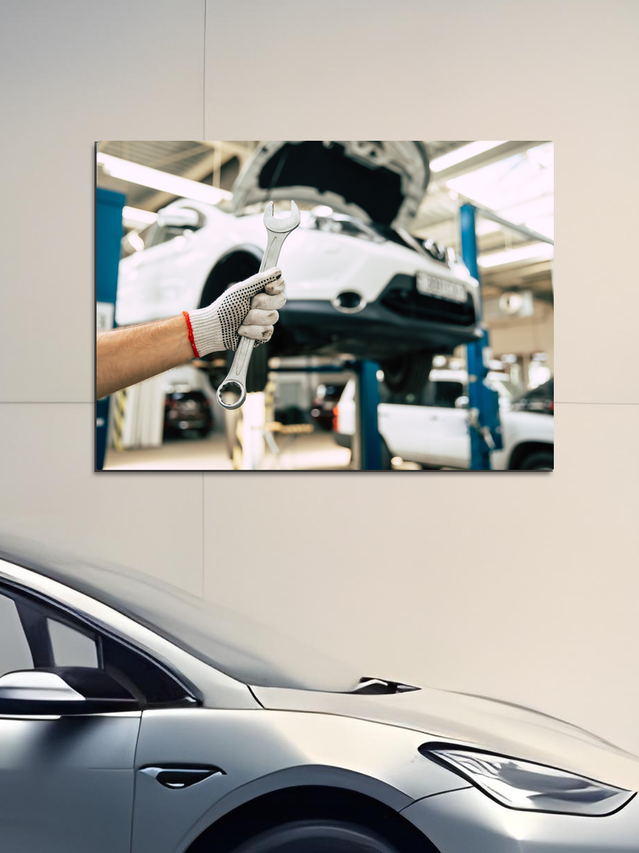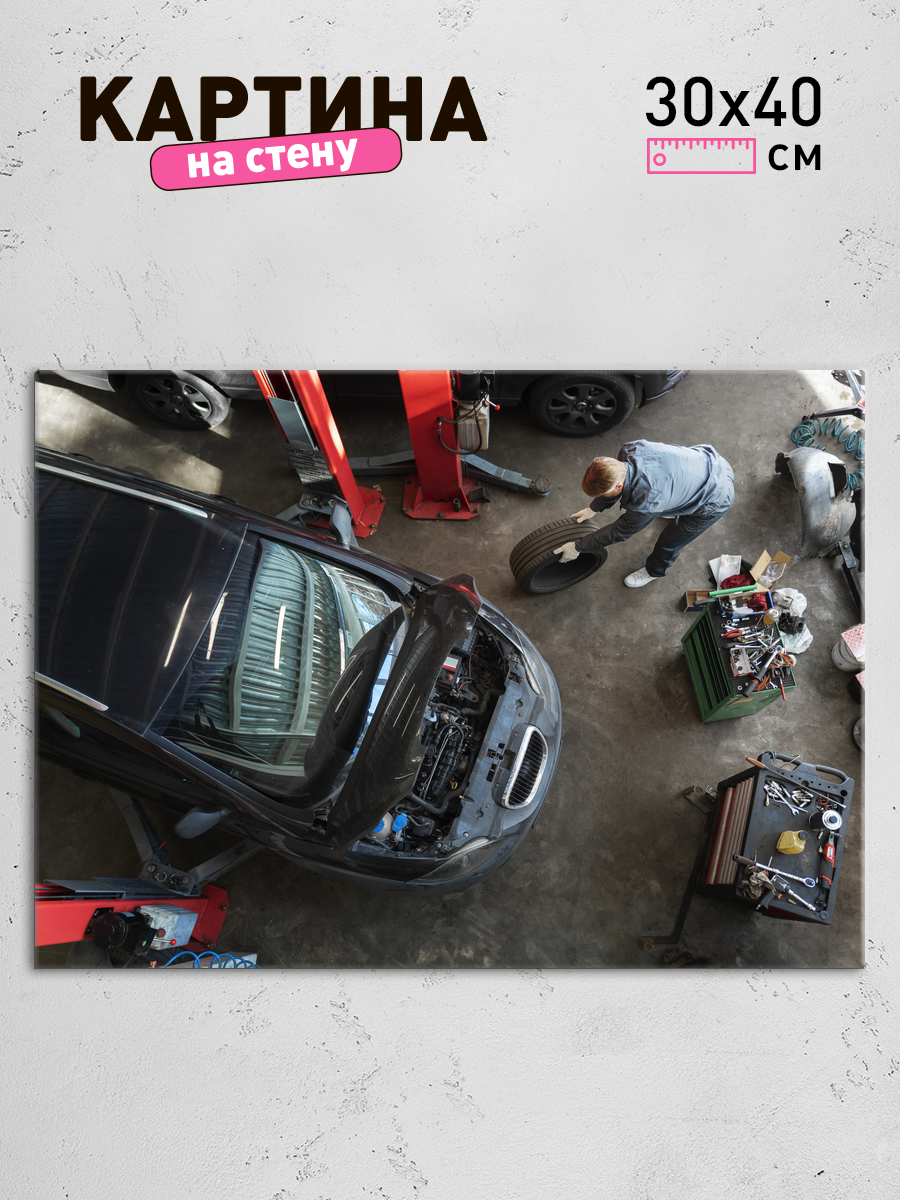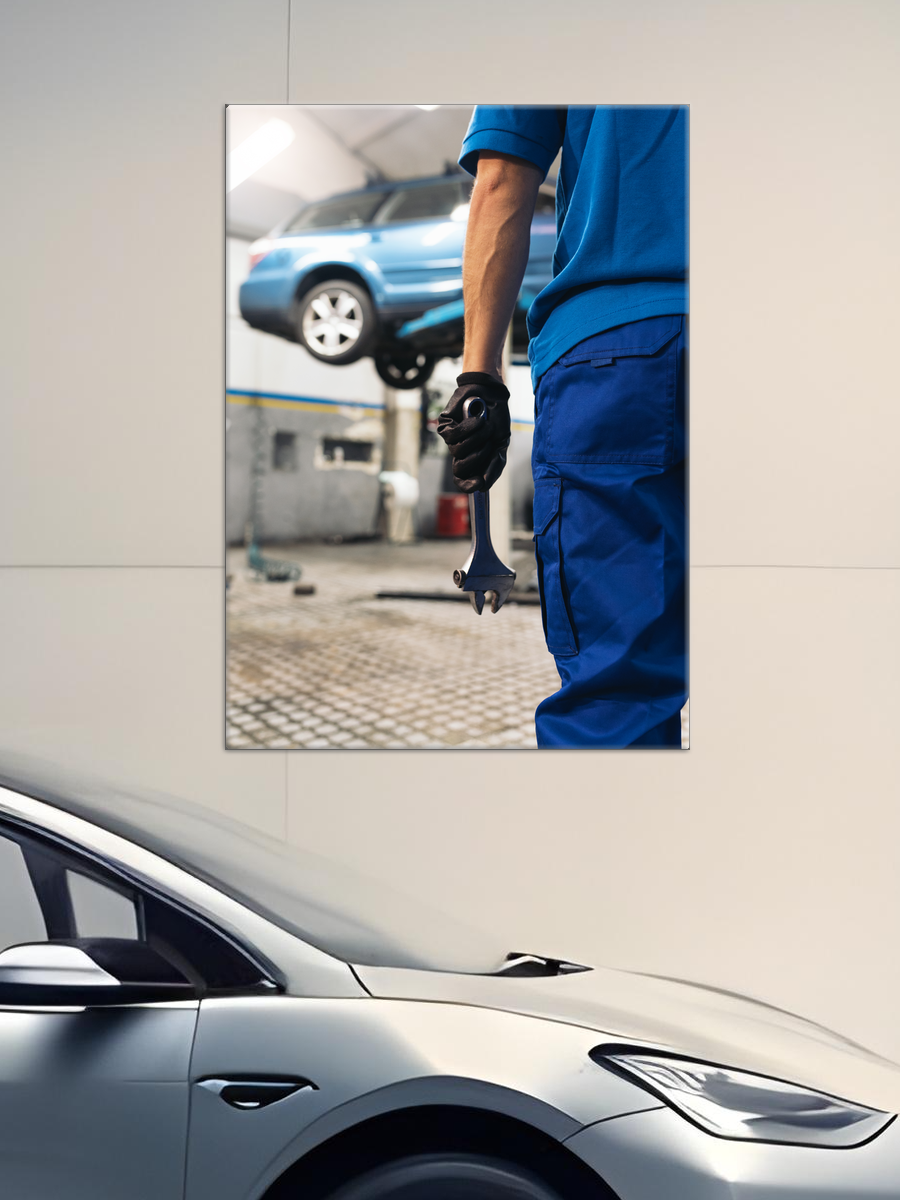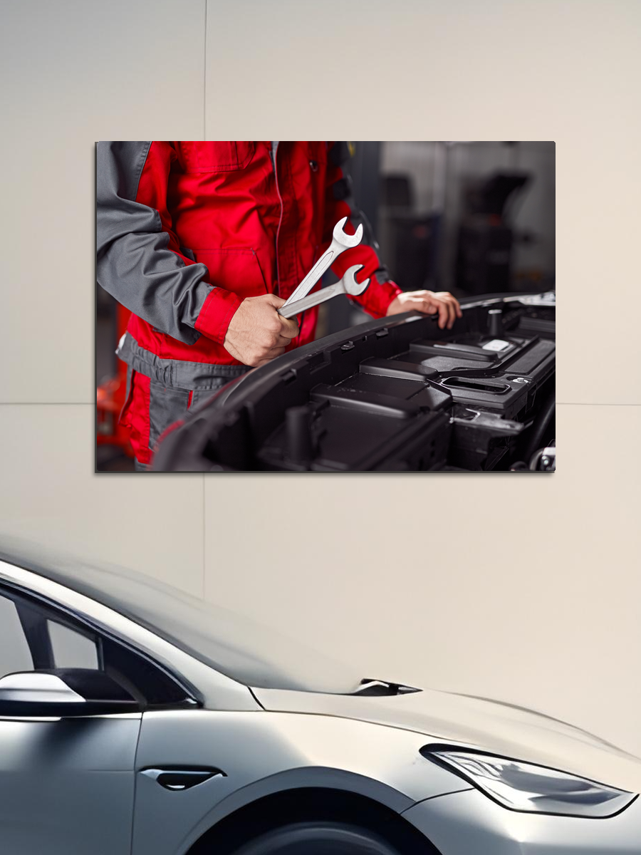 Описание: Картина 50 на 70 "Механика в действии". На этом произведении искусства изображен мастеровой, который уверенно держит в руке гаечный ключ, стоя на фоне автомобиля, поднятого на подъемнике. Основная идея картины заключается в передаче силы и уверенности, которые испытывает человек, работающий с техникой. Уникальность картины заключается в детализированном изображении инструмента и автомобиля, что создает ощущение динамики и профессионализма. Эмоции, вызываемые этой картиной, – это вдохновение и мотивация. Она напоминает о том, как важно быть в гармонии с техникой и окружающим миром. Каждый раз, глядя на нее, вы будете чувствовать прилив энергии и стремление к действию, что делает её идеальным акцентом для рабочего пространства или мастерской. Эта картина отлично впишется в интерьер современного кабинета, гаража или студии, добавляя нотку креативности и профессионализма. Она также станет замечательным подарком для автолюбителей и мастеров, подчеркивая их страсть к технике и ремонту.