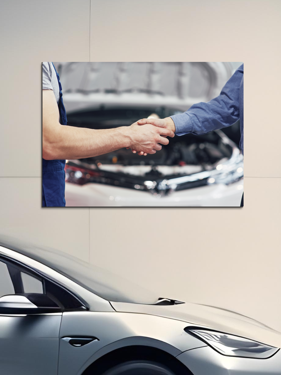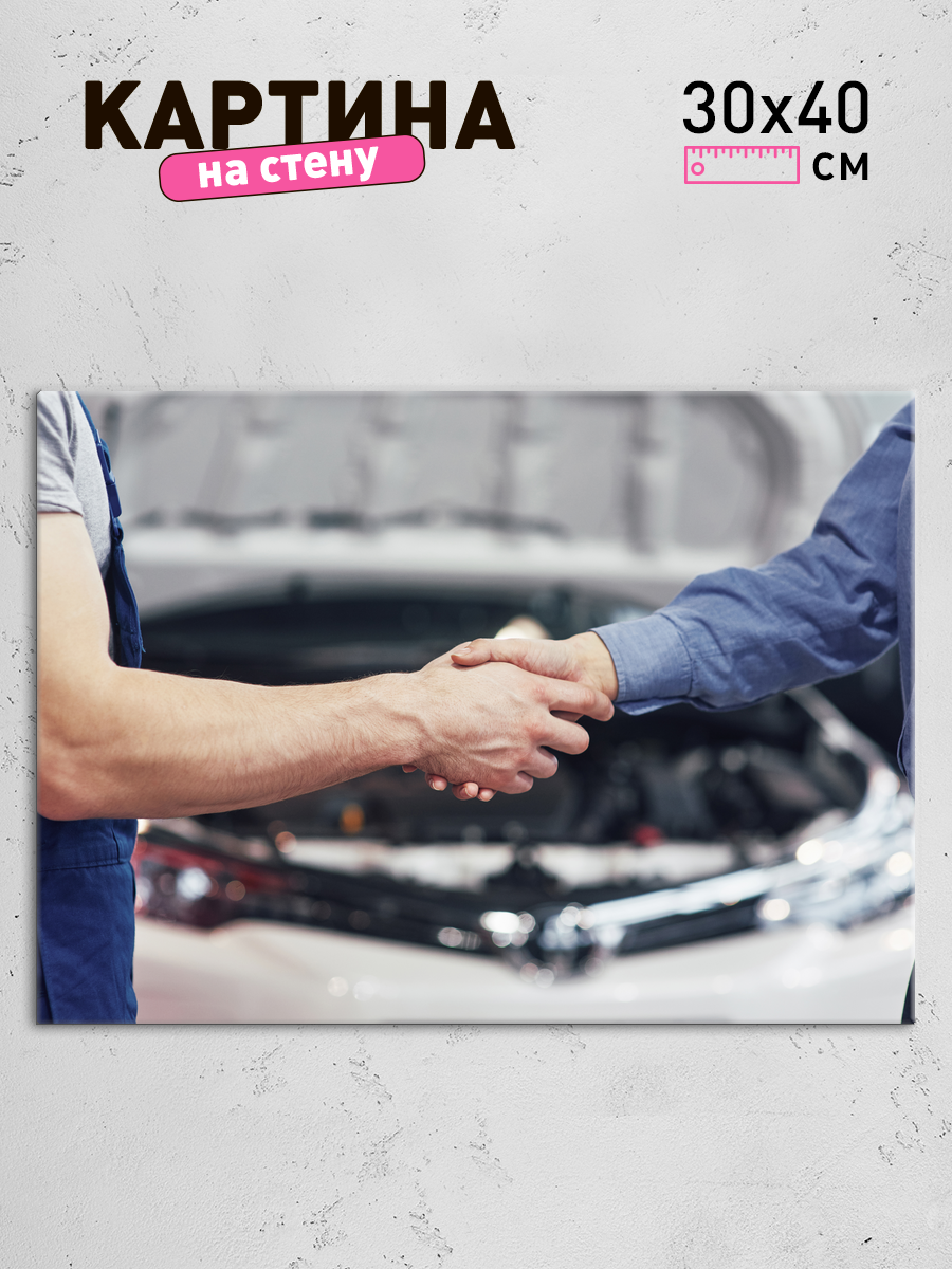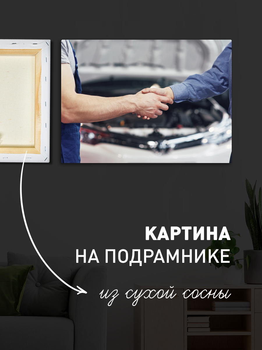 Описание: Картина 50 на 70 "Согласие" изображает момент рукопожатия двух людей на фоне открытого капота автомобиля. Эта работа передает идею сотрудничества и доверия, символизируя взаимодействие между клиентом и мастером. Уникальность картины заключается в ее способности вызывать чувство единства и взаимопонимания, что делает ее идеальным дополнением к любому пространству. Эмоции, которые вызывает эта картина, – это надежда и уверенность в будущем. Она создает атмосферу тепла и дружелюбия, привнося в ваш интерьер позитив и вдохновение. Благодаря своему яркому и современному дизайну, произведение станет отличным акцентом в офисе, мастерской или в зоне ожидания автосервиса. Также картина прекрасно дополнит уют домашнего кабинета или гостиной, придавая помещению стильный вид. Ее можно разместить на стене, где она будет привлекать внимание и вызывать положительные эмоции у гостей и членов семьи. Не упустите возможность сделать ваш интерьер более живым и наполненным смыслом с помощью этой уникальной картины!