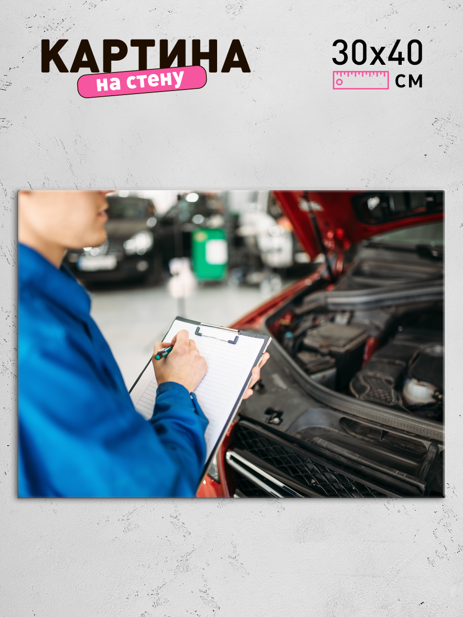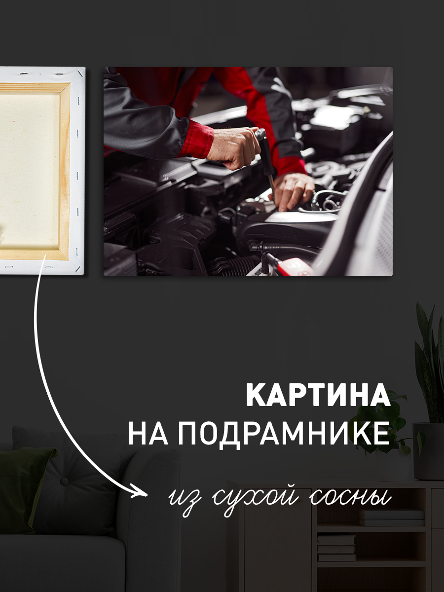 Описание: Картина 50 на 70 "Автомобильный сервис". На этом произведении искусства изображен механик, занятой проверкой состояния автомобиля. Основная идея картины заключается в передаче ощущений труда и мастерства, которые проявляются в каждом движении механика. Уникальность картины заключается в ее способности передать атмосферу автосервиса, наполненного энергией и динамикой. Эта картина вызывает чувства вдохновения и уважения к мастерству. Она погружает зрителя в мир, где каждое действие имеет значение, а работа механика становится искусством. Яркие цвета и внимание к деталям делают изображение живым, а сочетание красного и черного создает атмосферу напряженности и ожидания. Картина прекрасно подойдет для интерьера автосалона, мастерской или дома автолюбителя. Ее можно повесить в гостиной, кабинете или даже на кухне, чтобы добавить уникальности и стиля в ваше пространство. "Автомобильный сервис" станет отличным акцентом и разговорным предметом в любом интерьере.