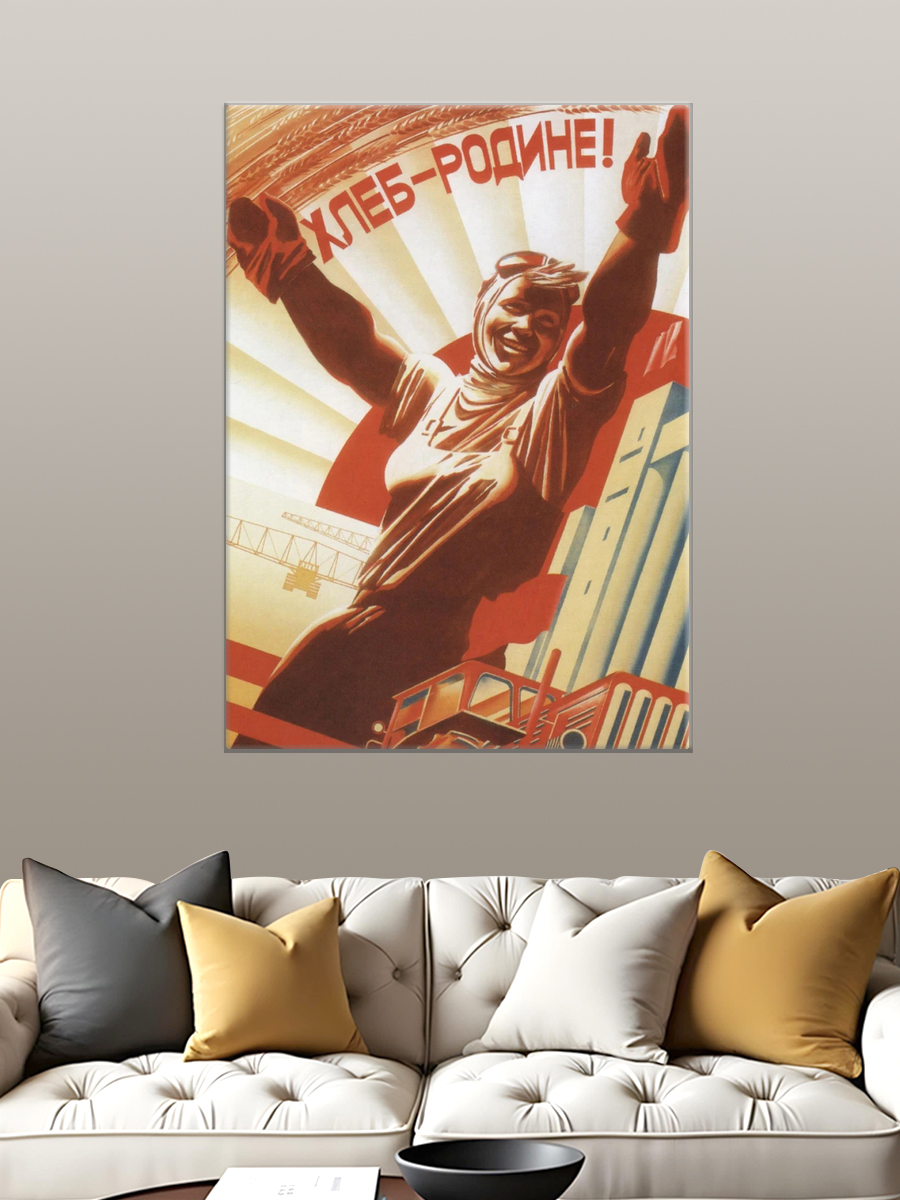 Описание: Картина 50 на 70 "Хлеб - Родине!" запечатлевает мощный образ рабочего, который с радостью и гордостью поднимает руки к небесам. На фоне яркого солнца и контрастных полос, эта работа олицетворяет дух трудового подвига и единства. Уникальность картины заключается в её историческом контексте, который вызывает ностальгию по временам, когда труд был в центре общественной жизни. Эта картина вызывает мощные эмоции, вдохновляя на труд и достижения. Она наполнена энергией и позитивом, что делает её идеальным элементом для любого интерьера. Представьте, как она будет смотреться в вашем рабочем кабинете, создавая атмосферу мотивации, или в гостиной, привнося дух единства и трудолюбия. Картина прекрасно впишется в индустриальный стиль, а также станет ярким акцентом в современном интерьере. Она подойдет для кафе, офисов и креативных пространств, где ценят искусство и историю. Подарите себе и своим близким вдохновение, добавив эту картину в своё пространство.