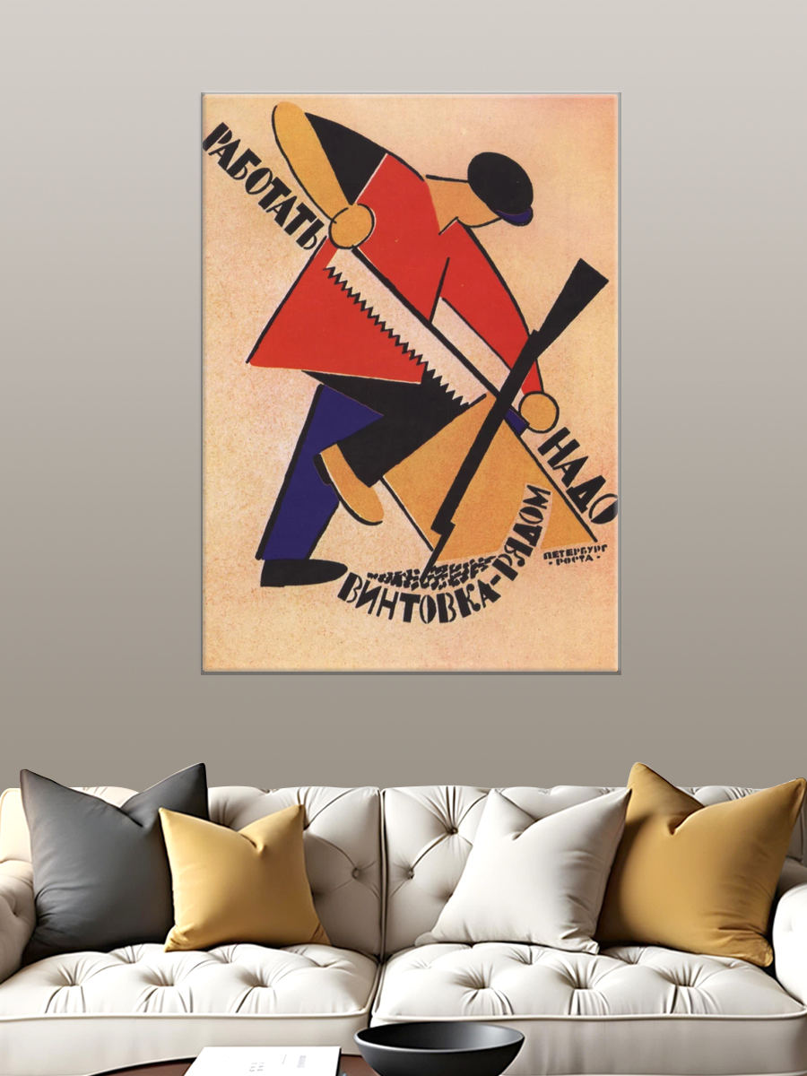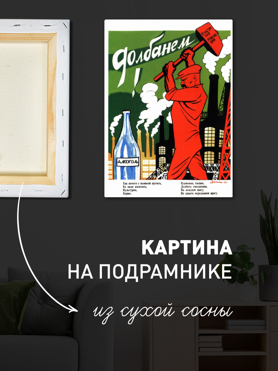 Описание: Картина 50 на 70 'Долбанем!' представляет собой яркий и выразительный пример советского плаката, передающий мощный дух эпохи. На фоне индустриального пейзажа, наполненного дымящимися заводами, изображен человек, с решимостью поднявший молоток. Центральная идея картины – призыв к культурной революции и борьбе с пьянством, что отражается в контрасте между бутылкой алкоголя и энергичным трудом рабочего. Уникальность картины заключается в ее способности изображать социальные и культурные идеи через простые, но яркие образы. Эта работа вызывает мощные эмоции: она вдохновляет на действия, пробуждает чувство гордости за труд и преданность идеалам. Яркие цвета и динамичная композиция делают её центром внимания, способным наполнить любое пространство энергией и смыслом. Картина идеально подойдет для интерьеров в стилях лофт или индустриал. Её можно разместить в офисе, кабинете или студии, где она станет не только украшением, но и источником вдохновения для творчества и работы. Также она будет уместна в современных кафе или мероприятиях, посвященных искусству, где ее послание будет актуальным и резонирующим с аудиторией.