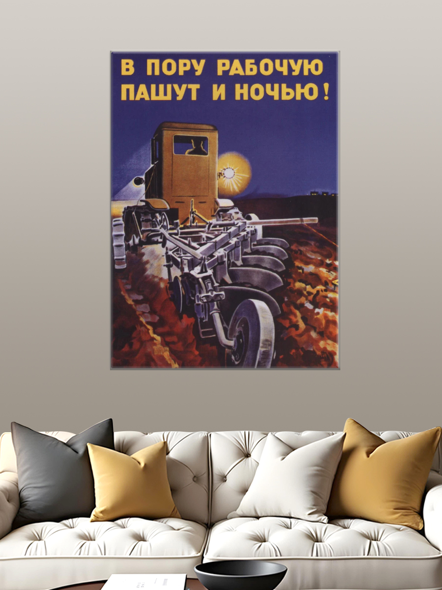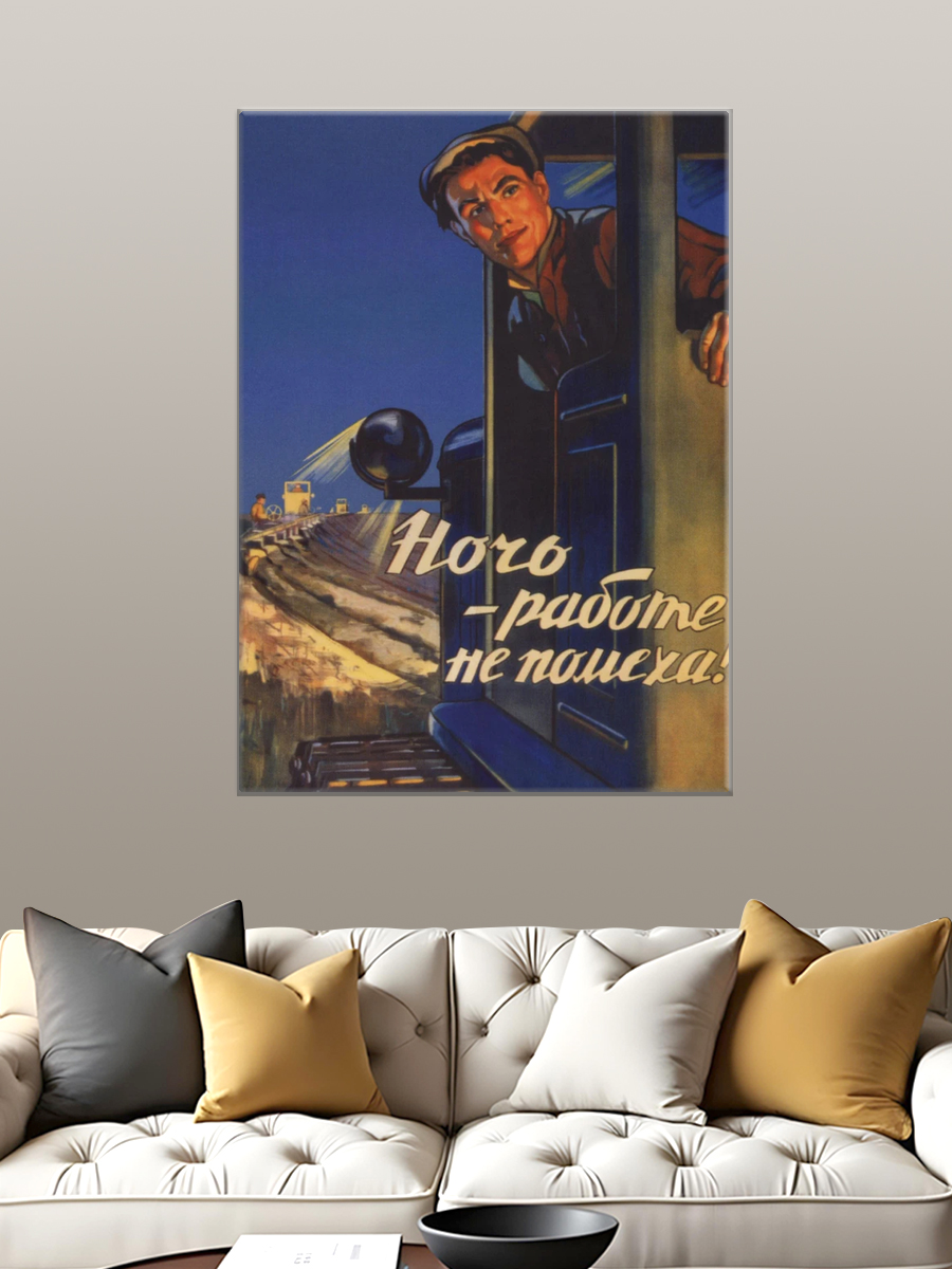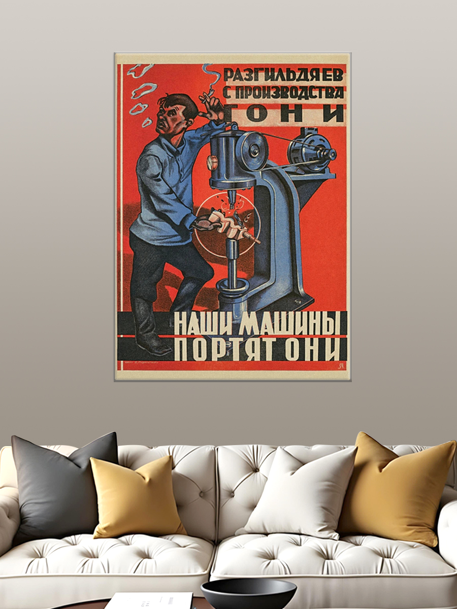 Описание: Картина 50 на 70 "Наши машины портят они" представляет собой яркий и динамичный плакат, выполненный в стиле советской пропаганды. На изображении мы видим рабочего, сосредоточенно работающего с машиной, символизирующей промышленный прогресс. Основная идея картины заключается в восхвалении труда и техники, что делает её уникальной и вдохновляющей. Эта картина вызывает чувство гордости за достижения индустриализации и стремление к улучшению. Яркие цвета и эмоциональная экспрессия персонажа передают энергию и страсть, которые могут наполнить любое пространство позитивом и мотивацией. Картина станет отличным дополнением для интерьеров в стиле лофт, индустриальном или даже современном. Она прекрасно впишется в офисное пространство, рабочий кабинет или студию, добавляя атмосферу креативности и динамики. Также её можно разместить в комнате, где вы хотите создать вдохновляющую обстановку, будь то домашний офис или зона для творчества. Приобретение этой картины — это не только возможность украсить ваше пространство, но и шанс стать владельцем произведения, которое будет вдохновлять на новые достижения!