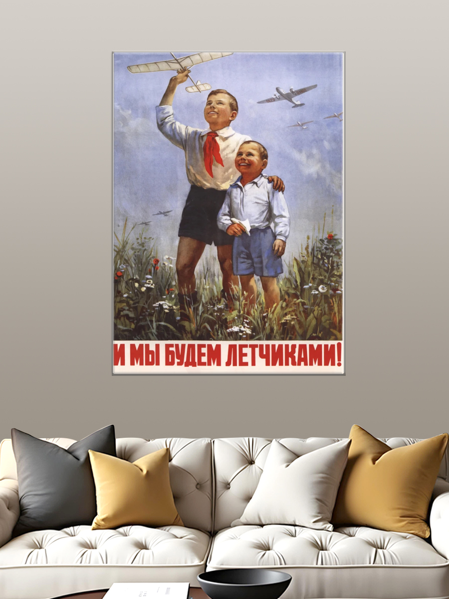 Описание: Картина 50 на 70 "И мы будем летчиками" представляет собой яркое воспроизведение детской мечты о полете и свободе. На холсте изображены два мальчика, один из которых с радостью держит в руках модель самолета, а другой, с восторгом, смотрит на него. Это произведение искусства наполнено позитивной энергией и стремлением к высотам, символизируя детскую беззаботность и мечты о будущем. Эта картина вызывает у зрителя теплые чувства, напоминая о собственных мечтах и детских воспоминаниях. Яркие цвета и динамика изображения создают атмосферу радости и вдохновения, заставляя задуматься о том, как важно сохранять мечты на протяжении всей жизни. Картина идеально впишется в интерьер детской комнаты, создавая пространство, наполненное мечтами и вдохновением. Она также подойдет для офисов и творческих пространств, где необходимо поддерживать позитивный настрой и креативный подход к работе. Повесьте её на стену, чтобы каждый день наслаждаться этой яркой и вдохновляющей картиной, которая напомнит вам о том, что мечты имеют значение и могут стать реальностью.