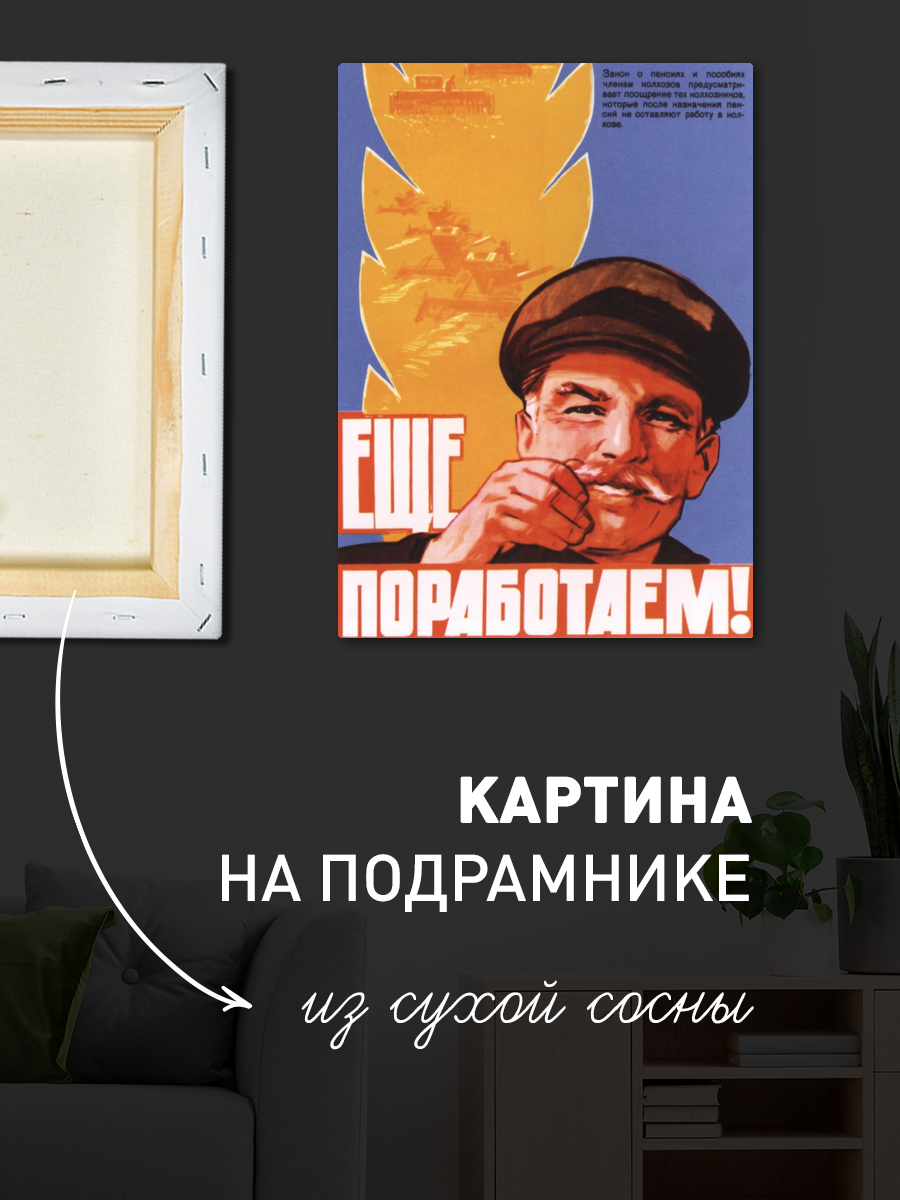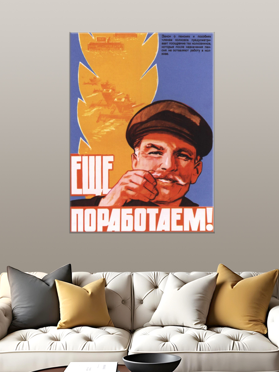 Описание: Картина 50 на 70 "Ещё поработаем!" представляет собой яркое и выразительное произведение искусства, в котором изображен исторический момент, наполненный духом труда и целеустремленности. На картине мы видим уверенного человека с усами, который с вдохновением смотрит в будущее, поддерживая идею коллективного труда и социальной ответственности. Основная идея картины заключается в призыве к совместным усилиям и неустанной работе на благо общества. Эта картина вызывает мощные эмоции: она вдохновляет на действие, наполняет энергией и придаёт уверенность. Яркие цвета, такие как красный и жёлтый, создают атмосферу оптимизма и стремления к улучшению, а голубой фон добавляет нотки спокойствия и стабильности. "Ещё поработаем!" станет отличным дополнением к любому интерьеру, особенно в офисных пространствах, рабочих кабинетах или творческих студиях. Она прекрасно впишется в современные стили, такие как лофт, минимализм или даже винтаж, добавляя уникальности и характера. Также картина может стать центром внимания в домашнем офисе или учебном пространстве, вдохновляя на новые достижения. Эта картина не только украсит ваше пространство, но и будет служить постоянным напоминанием о важности труда и достижения целей. Поддержите свою страсть к успеху и командной работе с этой вдохновляющей картиной.