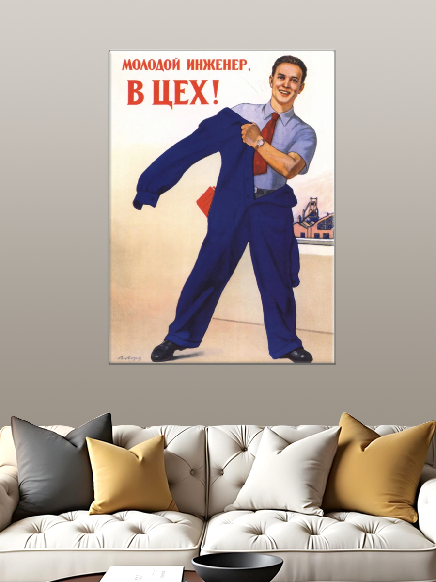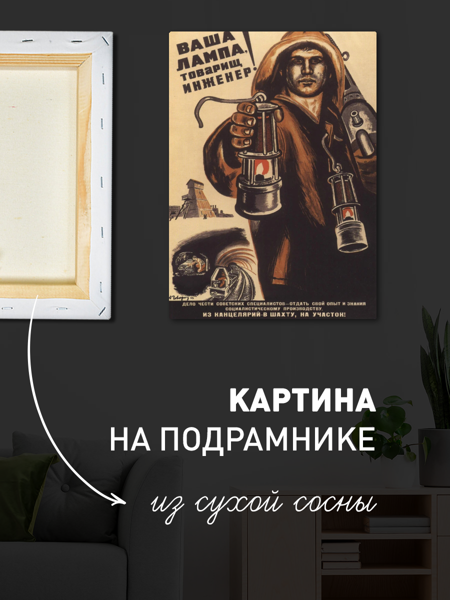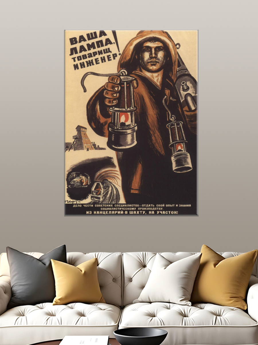 Описание: Картина 50 на 70 "Ваше Лампа, Товарищ Инженер" представляет собой яркий пример советского плаката, который вдохновляет на труд и преданность делу. На этом произведении изображен мужчина с фонарем, символизирующим свет, надежду и стремление к знаниям. Основная идея картины — призыв к специалистам отдать свои знания и опыт для общего блага, что делает её актуальной и в современном мире. Уникальность картины заключается в её историческом контексте и мощном месседже, который вдохновляет и мотивирует. Эмоции, которые вызывает эта картина, варьируются от чувства гордости за труд людей до стремления к действию. Она напоминает о важности работы и коллективного духа, согревает душу и вдохновляет на достижения. Эта картина станет отличным акцентом в любом интерьере, особенно в кабинетах, офисах или общественных пространствах, где ценят труд и преданность делу. Она также прекрасно впишется в пространство, посвященное истории, культуре или искусству, становясь интересным разговорным объектом для гостей. Представьте, как она будет выглядеть на стене вашего рабочего пространства или в библиотеке, создавая атмосферу стремления и вдохновения.