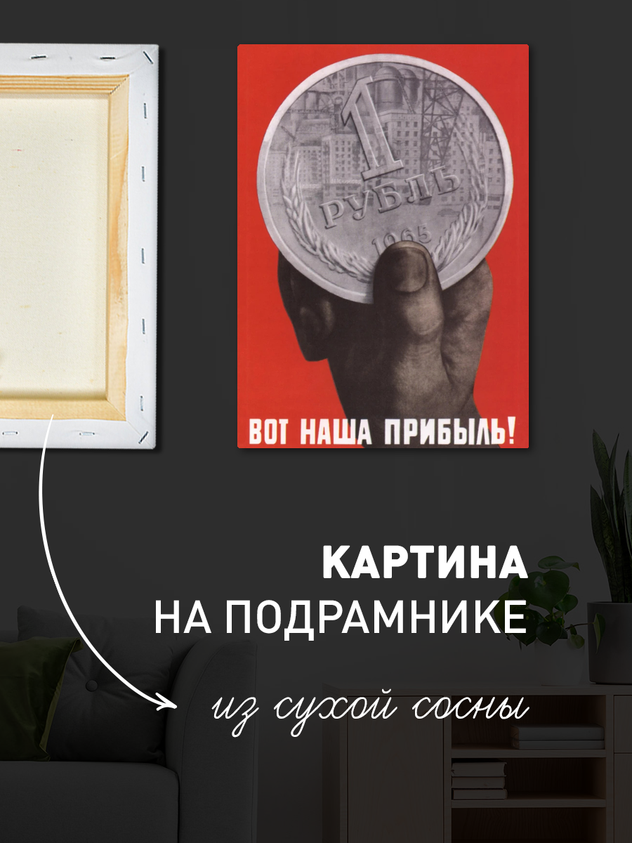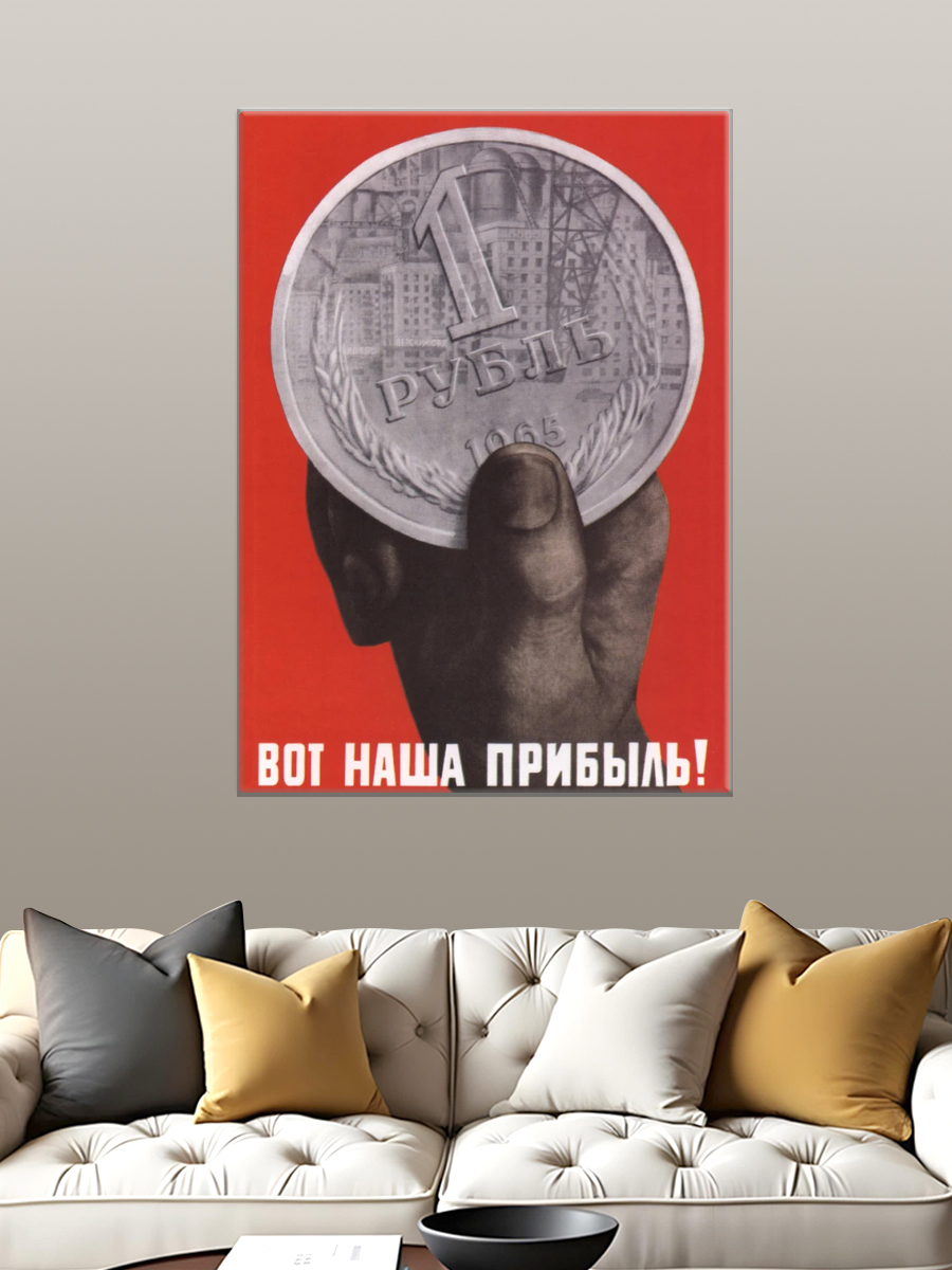 Описание: Картина 50 на 70 "Вот наша прибыль!" представляет собой мощное изображение, на котором изображена рука, держащая крупную монету в один рубль. Этот элемент символизирует надежду и труд людей, вложивших свои усилия в строительство и развитие. Основная идея картины заключается в демонстрации ценности труда и коллективного успеха. Уникальность этого произведения в его историческом контексте – оно было создано в 1965 году и отражает дух своего времени. Эта картина вызывает широкий спектр эмоций: гордость за достижения, вдохновение и мотивацию к действию. Яркий красный фон создает энергичное настроение, привлекая внимание и подчеркивая важность представленного элемента. Смотрящий на картину может ощутить связь с прошлым и осознать значимость совместного труда, что делает её особенно актуальной в современном мире. Картина гармонично впишется в различные интерьеры: от офисов и рабочих пространств до уютных домашних кабинетов. Она станет отличным акцентом в зоне отдыха, подчеркивая стремление к успеху и трудолюбие. Также она подойдет для общественных пространств, таких как кафе и библиотеки, создавая атмосферу вдохновения и мотивации. "Вот наша прибыль!" – это не просто картина, это манифест, который будет вдохновлять и радовать глаз.