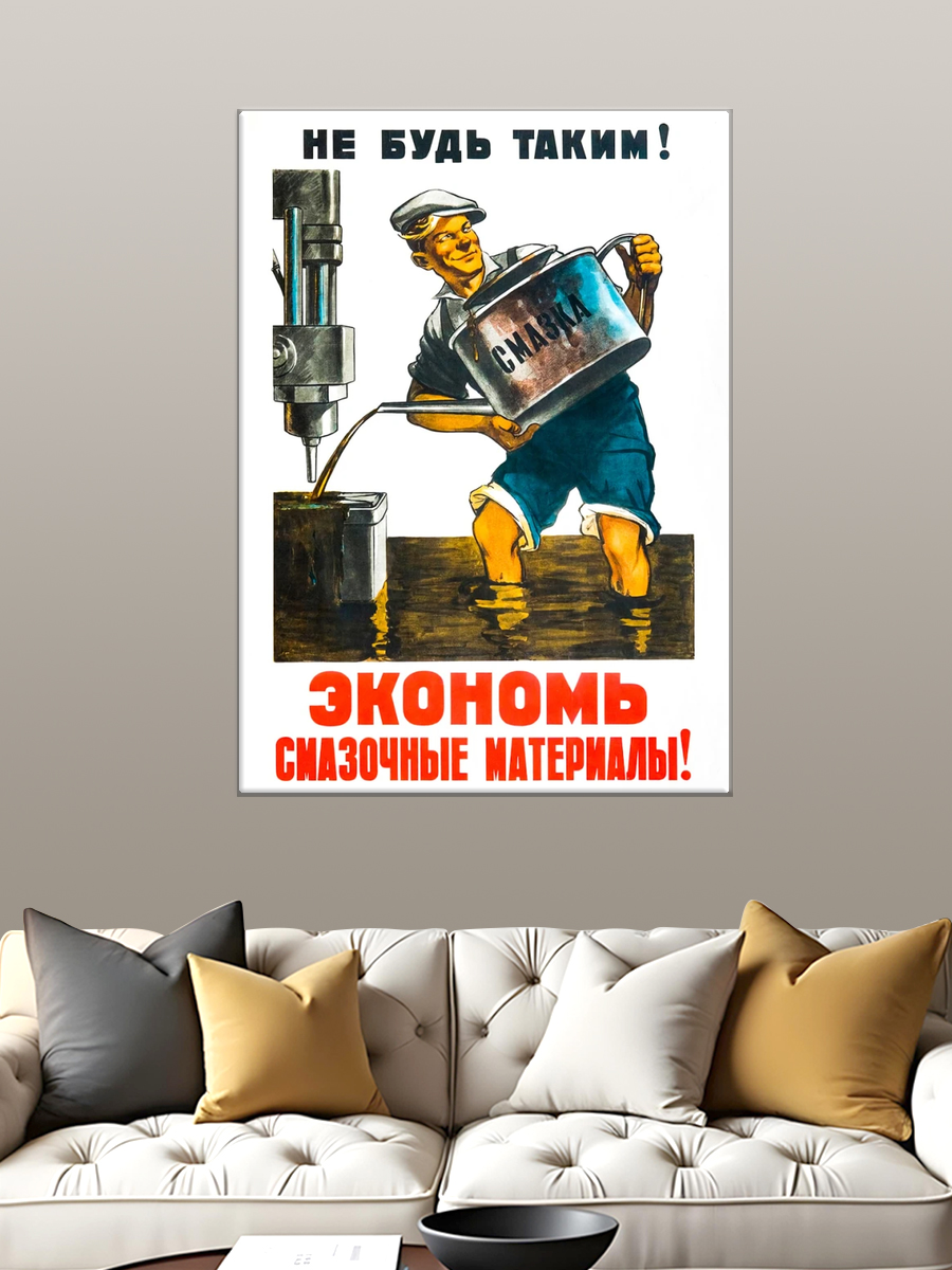 Описание: Картина 50 на 70 "Не будь таким!" представляет собой яркий и выразительный плакат, который передает важное сообщение о бережном отношении к смазочным материалам. На изображении мы видим работника, который с улыбкой наливает масло, подчеркивая необходимость экономии ресурсов. Эта картина уникальна своей советской эстетикой и мощным визуальным посланием, что делает её привлекательной для ценителей искусства и истории. Эмоциональная составляющая картины вызывает чувство ностальгии и ответственности. Она напоминает о важности бережливого подхода к ресурсам и может стать отличным напоминанием о ценности работы и заботы о природе. Яркие цвета и динамичные линии создают ощущение движения и жизни, что делает картину настоящим акцентом в любом интерьере. Эта работа отлично подойдет для офисов, мастерских или даже домашних рабочих пространств, вдохновляя на продуктивность и осознанность. Она также может найти свое место в современных интерьерах, добавляя элемент исторической значимости и оригинальности. Повесьте её в зоне отдыха, чтобы создать атмосферу комфорта и мотивации. Эта картина станет не только стильным элементом декора, но и важным напоминанием о бережном отношении к ресурсам.
