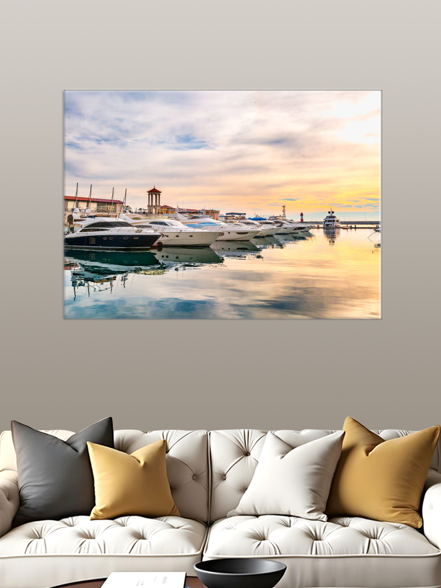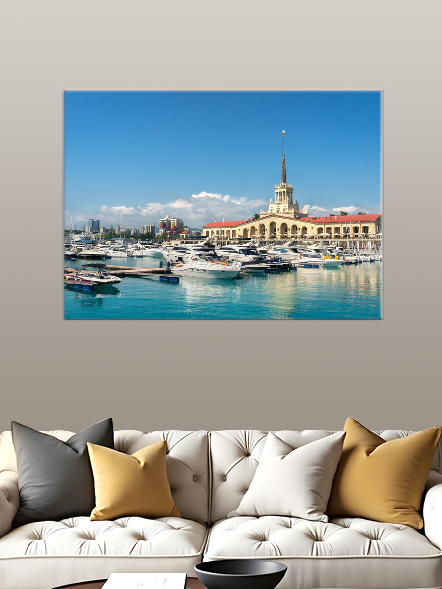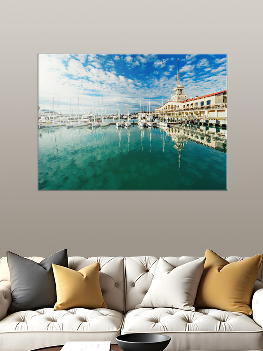 Описание: Картина 50 на 70 "Прибрежный Пейзаж" изображает живописный морской порт, наполненный яхтами и лодками, под ярким голубым небом. Основная идея картины — передать атмосферу спокойствия и умиротворения, сочетая элементы природы и архитектуры. Уникальность этой работы заключается в ярких оттенках и детализированном изображении, которые создают ощущение присутствия на берегу. Картина вызывает положительные эмоции, напоминая о летних днях, проведенных у моря, и пробуждая желание путешествовать. Она наполняет пространство светом и гармонией, делая его более уютным и стильным. Эта картина станет прекрасным акцентом в любом интерьере: она идеально подойдет для гостиной, кабинета или даже спальни, добавляя нотку свежести и энергии. Повесив её на стену, вы создадите атмосферу, способствующую отдыху и вдохновению, что сделает ваше пространство еще более привлекательным и комфортным.
