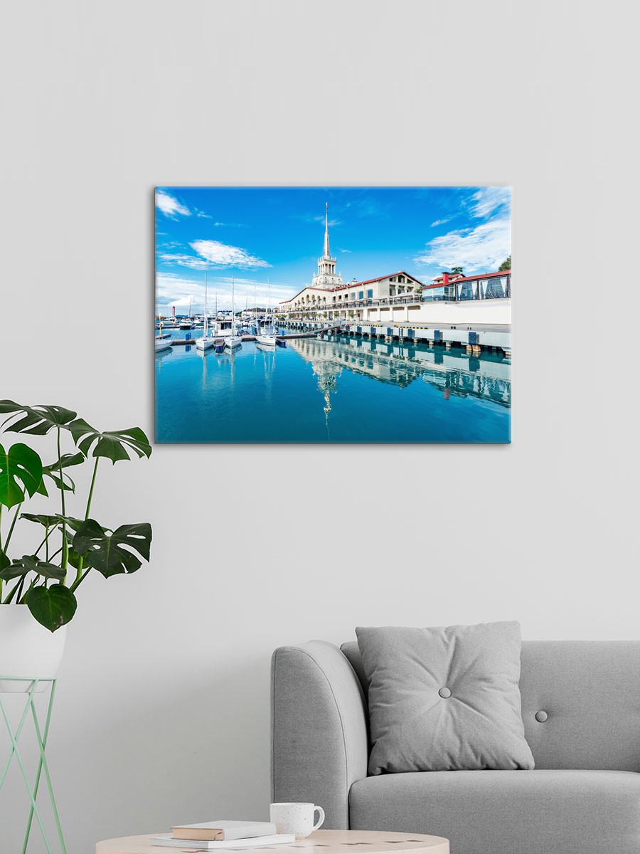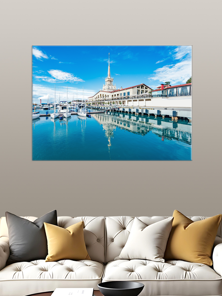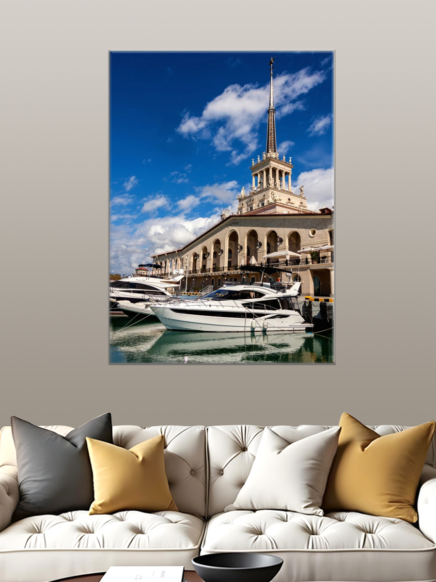 Описание: Картина 50 на 70 "Прибрежная симфония" изображает живописный морской порт с белоснежными яхтами, отражающимися в спокойной воде. На фоне – величественное здание с высокой башней, окутанное утренним светом и облаками. Эта картина передает атмосферу умиротворения и свободы, пробуждая в зрителе желание отправиться в путешествие. Уникальность картины заключается в её способности создавать ощущение близости к природе и морю, погружая вас в мир спокойствия и гармонии. Она идеально впишется в интерьер гостиной, придавая ему лёгкость и свежесть, или станет акцентом в кабинете, вдохновляя на новые идеи. Разместите её на стене над диваном или рядом с окном, чтобы наслаждаться её красотой каждый день. Эта картина — не просто элемент декора, а источник положительных эмоций и воспоминаний о беззаботных летних днях у моря.
