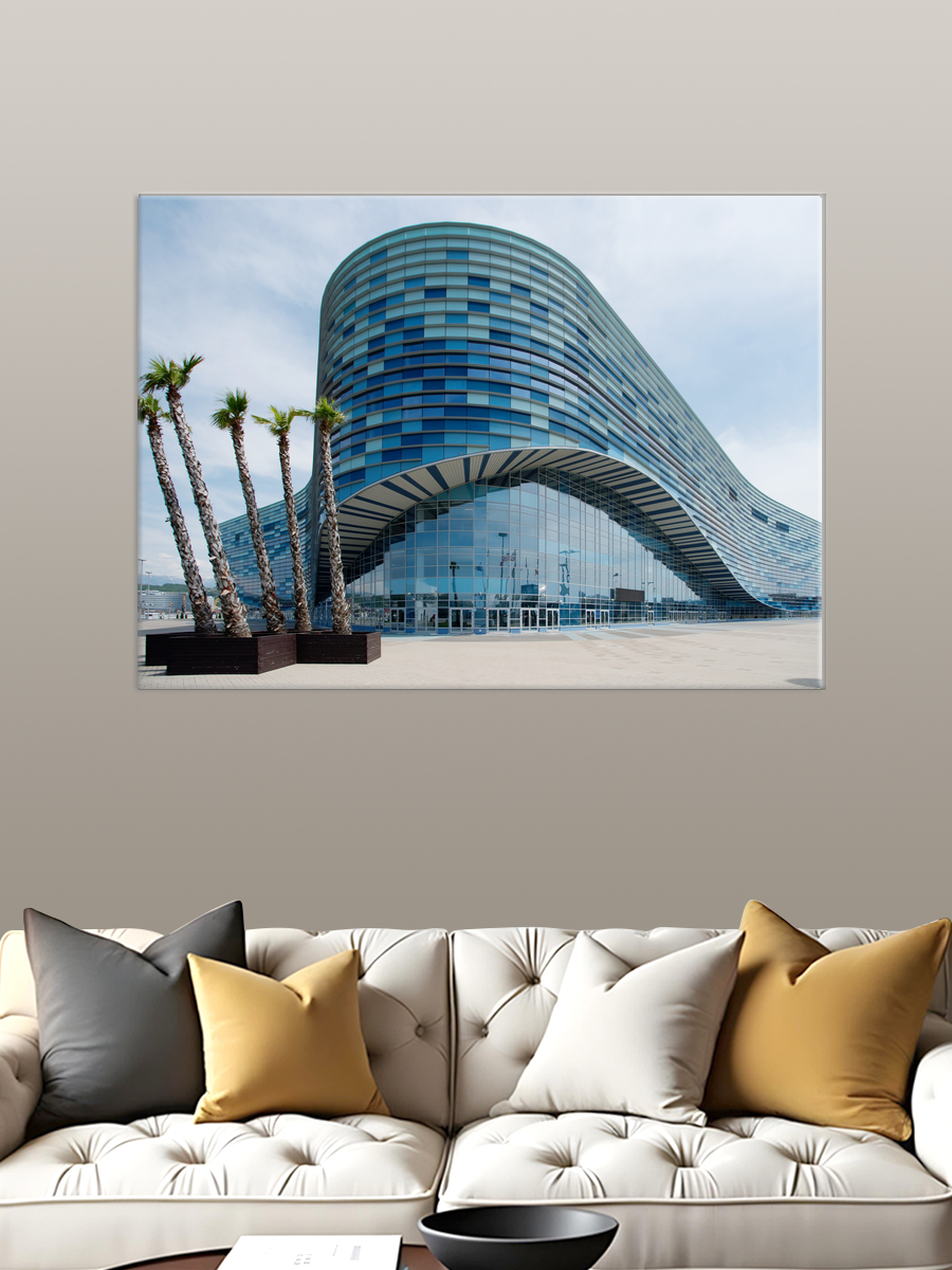 Описание: Картина 50 на 70 "Современная архитектура". На картине изображено элегантное здание, выполненное в современном стиле с изогнутыми линиями и стеклянными фасадами, отражающими небо и окружающий ландшафт. Основная идея картины - показать гармонию между архитектурой и природой, а также передать чувство легкости и воздушности. Эта уникальная работа привлечет внимание благодаря своим ярким цветам и динамичному композиционному решению. Эта картина вызывает положительные эмоции и чувство вдохновения, напоминая о красоте современных городов и их способности сочетаться с природой. Она станет отличным акцентом в любом интерьере, добавляя нотку стиля и современности. Подходит для офисов, гостиных, коридоров и даже спален, создавая атмосферу уюта и гармонии. Эта работа станет идеальным подарком для ценителей архитектуры и современного искусства, а также для тех, кто хочет добавить в своё пространство что-то уникальное и вдохновляющее.