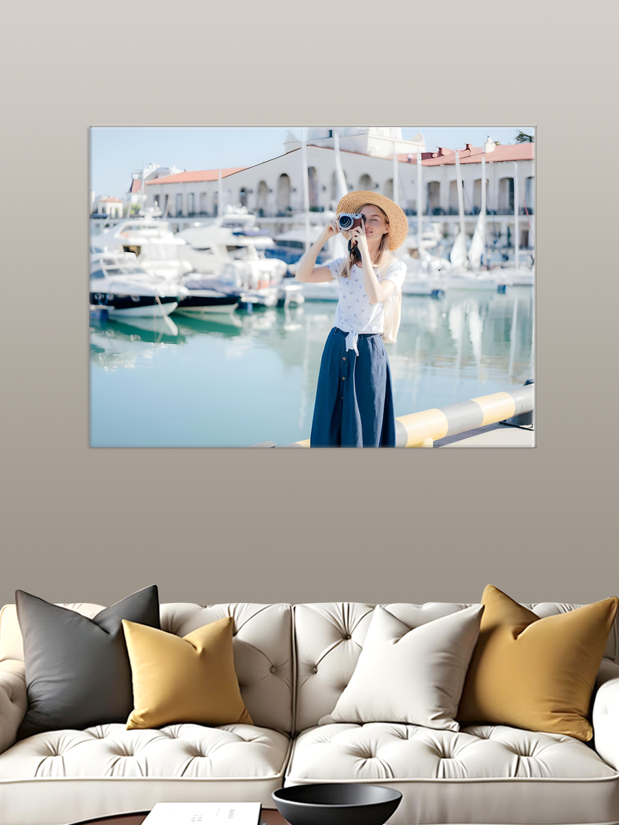 Описание: Картина 50 на 70 "Летний день у моря". На этой живописной картине изображена молодая женщина, которая с восхищением фотографирует морской пейзаж. Яркое голубое небо и спокойные воды создают атмосферу легкости и радости, а яхты на фоне добавляют динамики и уюта. Уникальность этой картины заключается в том, что она передает мгновение счастья и вдохновения, заставляя зрителя почувствовать себя частью этой яркой летней сцены. Эта картина вызывает положительные эмоции, такие как радость, спокойствие и ностальгию о теплых летних днях. Она может стать ярким акцентом в вашем интерьере, напоминая о приятных моментах отдыха и путешествий. Представьте, как эта картина будет гармонично смотреться в гостиной, оформленной в светлых тонах, или в уютном уголке, где вы любите читать и мечтать. Подойдет она также для офисного пространства, где будет вдохновлять на творчество и позитивные мысли. "Летний день у моря" станет не только украшением вашего дома, но и источником вдохновения для вас и ваших гостей.