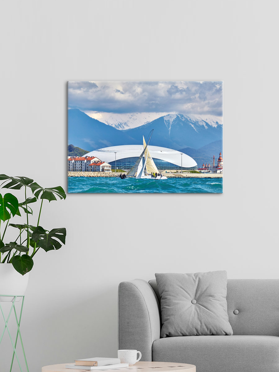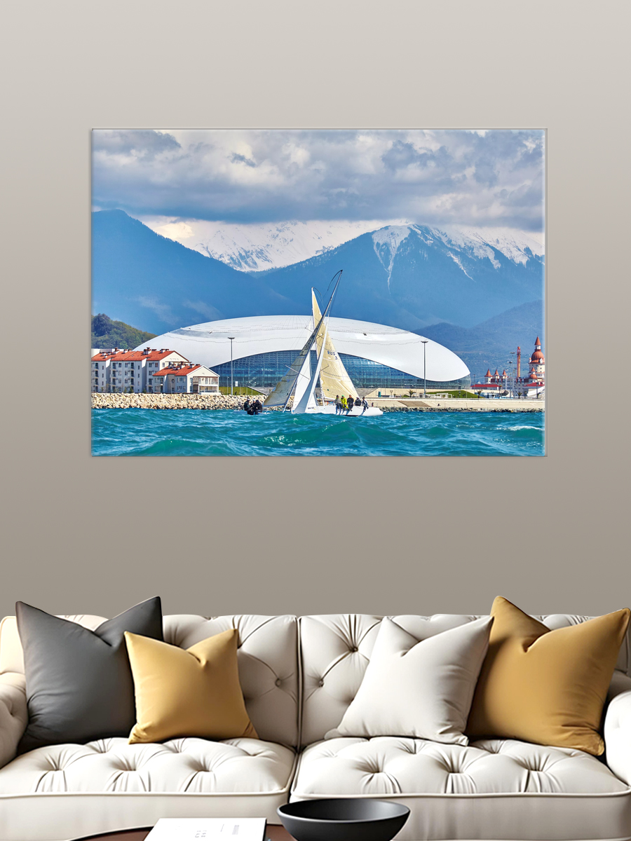 Описание: Картина 50 на 70 'Морская Симфония' изображает живописный морской пейзаж, где на фоне величественных гор и облачного неба плавно движется парусник. Уникальность этой картины заключается в сочетании ярких и мягких оттенков, которые создают атмосферу спокойствия и гармонии. Каждый элемент, от волн до зданий на берегу, передает ощущение свободы и легкости. Смотря на 'Морскую Симфонию', вы погружаетесь в мир умиротворения и вдохновения. Картина вызывает положительные эмоции, напоминая о летних днях на воде и свободе, которую приносит ветер в парусах. Это произведение искусства станет настоящим центром внимания в любом интерьере, наполняя пространство теплом и светом. Картина идеально подойдет для гостиной, кабинета или даже спальни, где она создаст атмосферу расслабления и уюта. Ее можно повесить над диваном, в зоне отдыха или напротив окна, чтобы дополнить светлое пространство. 'Морская Симфония' станет прекрасным подарком для любителей моря и природы, а также для тех, кто ценит высокое качество и оригинальность в искусстве.