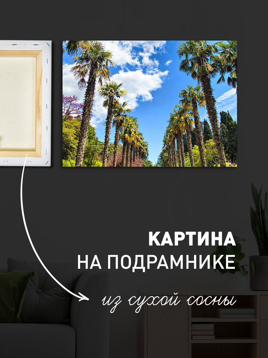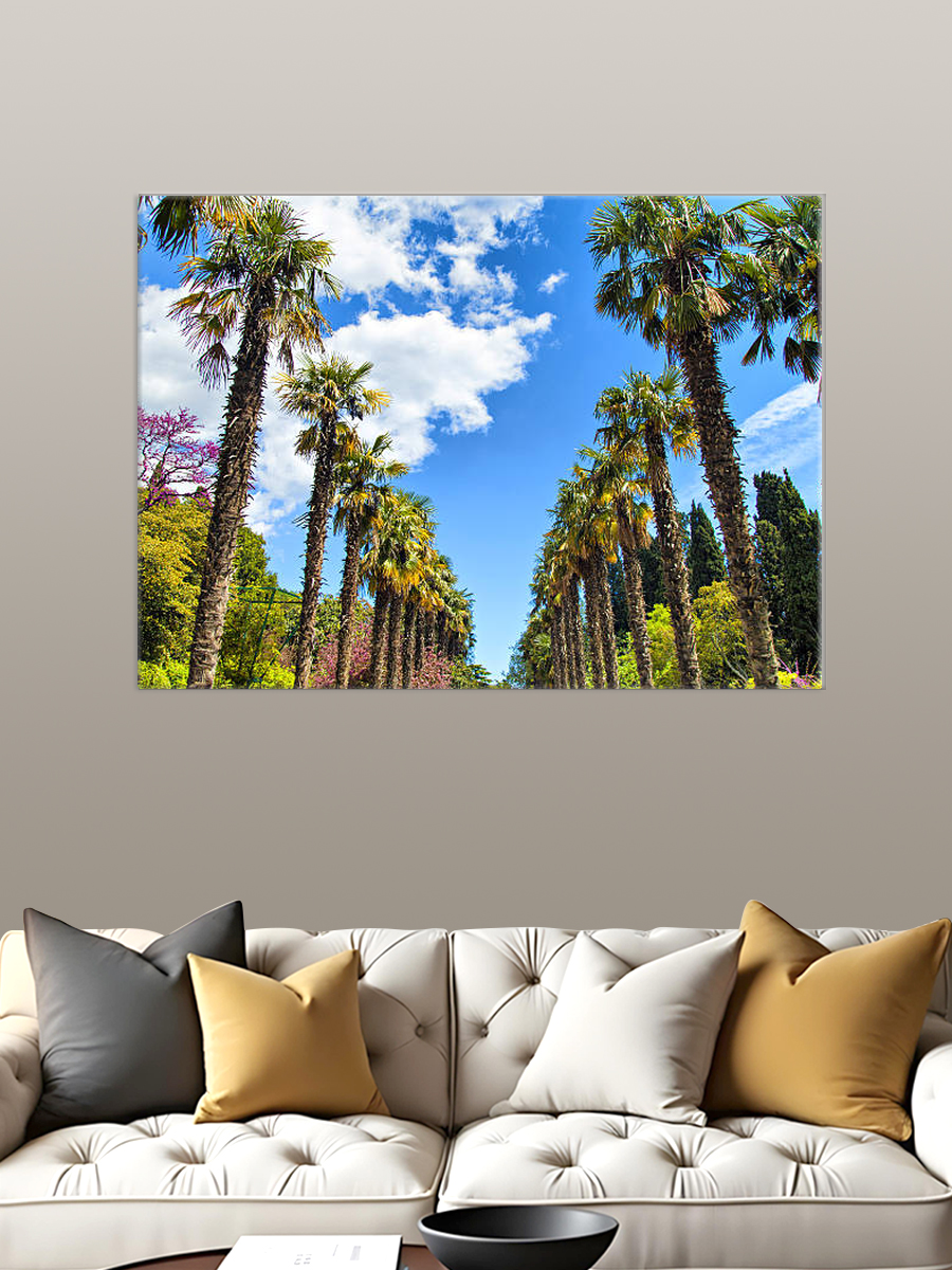 Описание: Картина 50 на 70 "Солнечные пальмы" изображает великолепную аллею из пальм, устремляющихся к яркому голубому небу, украшенному легкими облаками. Эта работа передает атмосферу тропического рая, где природа и свет гармонично сочетаются. Уникальность картины заключается в ее способности вызывать чувство спокойствия и умиротворения, приглашая зрителя в мир летнего безмятежья. Каждый взгляд на картину наполняет душу теплом и радостью, словно вы находитесь на отдыхе под ярким солнцем. Эмоции, которые она вызывает, способствуют созданию расслабляющей атмосферы, идеально подходящей для тех, кто ценит красоту природы и хочет добавить в свой интерьер нотки экзотики. Эта картина станет прекрасным дополнением для гостиной, спальни или кабинета, где она будет напоминать о теплых днях и отпуске. Также ее можно повесить в офисе, создавая уютную и вдохновляющую обстановку для работы. Благодаря своим ярким цветам и живописному изображению, "Солнечные пальмы" легко впишется в современный или классический интерьер, добавляя ему индивидуальности и стиля.