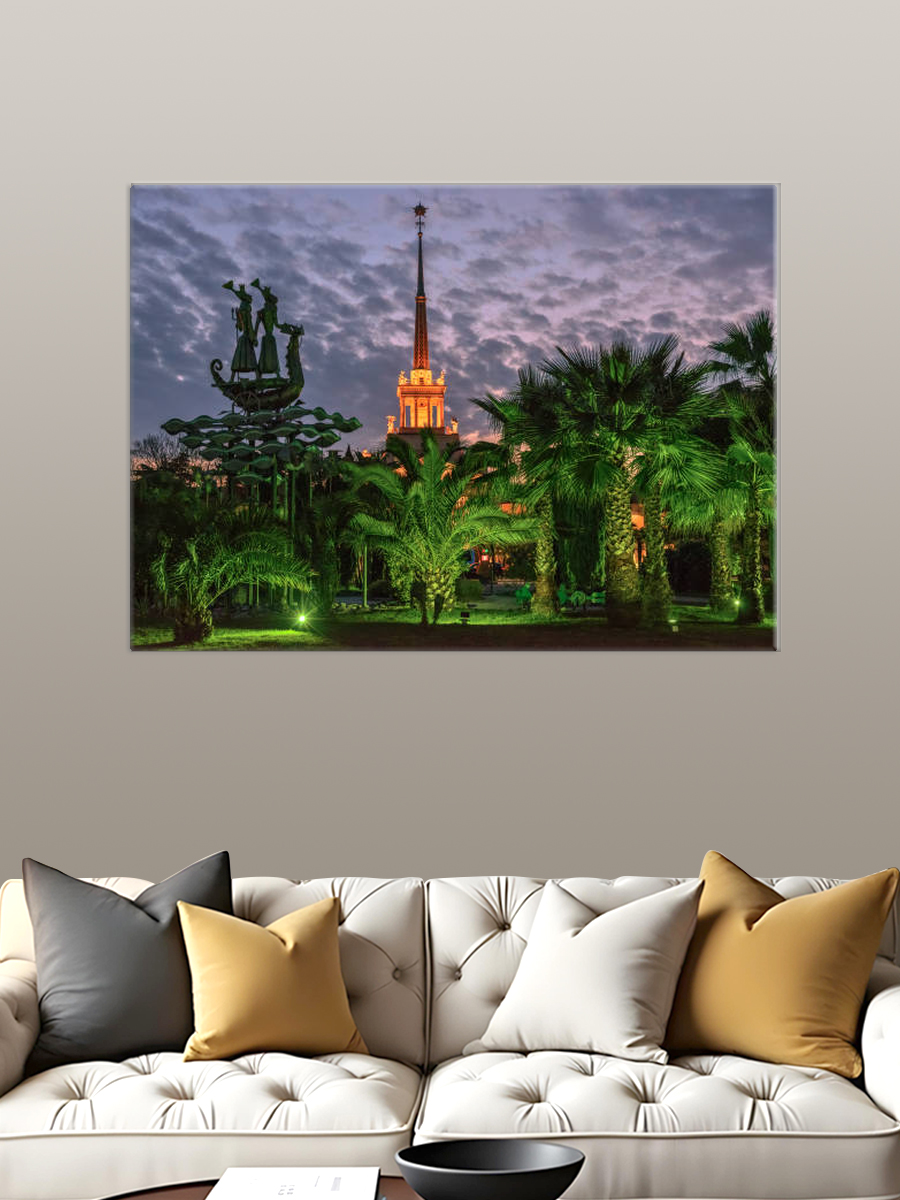 Описание: Картина 50 на 70 "Тайна ночного сада" – это великолепное изображение, запечатлевающее волшебную атмосферу вечернего парка с экзотическими пальмами и величественным зданием на фоне заката. Уникальность этой картины заключается в сочетании ярких и насыщенных цветов, создающих ощущение спокойствия и умиротворения. Взглянув на неё, вы словно переноситесь в мир, где природа и архитектура гармонично сосуществуют. Эта картина вызывает чувства тепла и вдохновения, даря возможность отдохнуть от повседневной суеты. Она наполняет пространство живой энергией и создает уютную атмосферу, способствуя расслаблению и медитации. Подойдет для интерьеров в стиле модерн, эклектика или даже классическом оформлении. Ее можно повесить в гостиной, кабинете или спальне, где она станет центральным акцентом, притягивающим взгляды. Картина прекрасно дополнит ваш интерьер, делая его более стильным и изысканным. Не упустите возможность сделать свой дом более уютным и наполненным вдохновением с помощью этого произведения искусства.