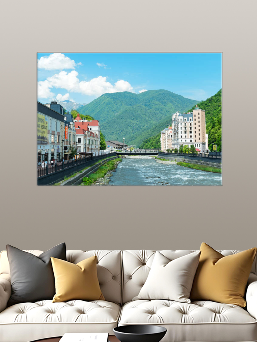 Описание: Картина 50 на 70 "Природа и спокойствие" изображает живописный горный пейзаж, где величественные зеленые холмы встречаются с ярким голубым небом. На переднем плане река, плавно текущая среди уютных зданий, создает атмосферу умиротворения. Эта картина олицетворяет гармонию природы и человеческой жизни, вызывая чувства спокойствия и счастья. Она станет прекрасным дополнением к любому интерьеру, идеально вписываясь в гостиные, кабинеты или спальни. Благодаря своим успокаивающим цветам и вдохновляющему сюжету, она будет прекрасно смотреться на стенах вашего дома, создавая уютную и расслабляющую атмосферу.