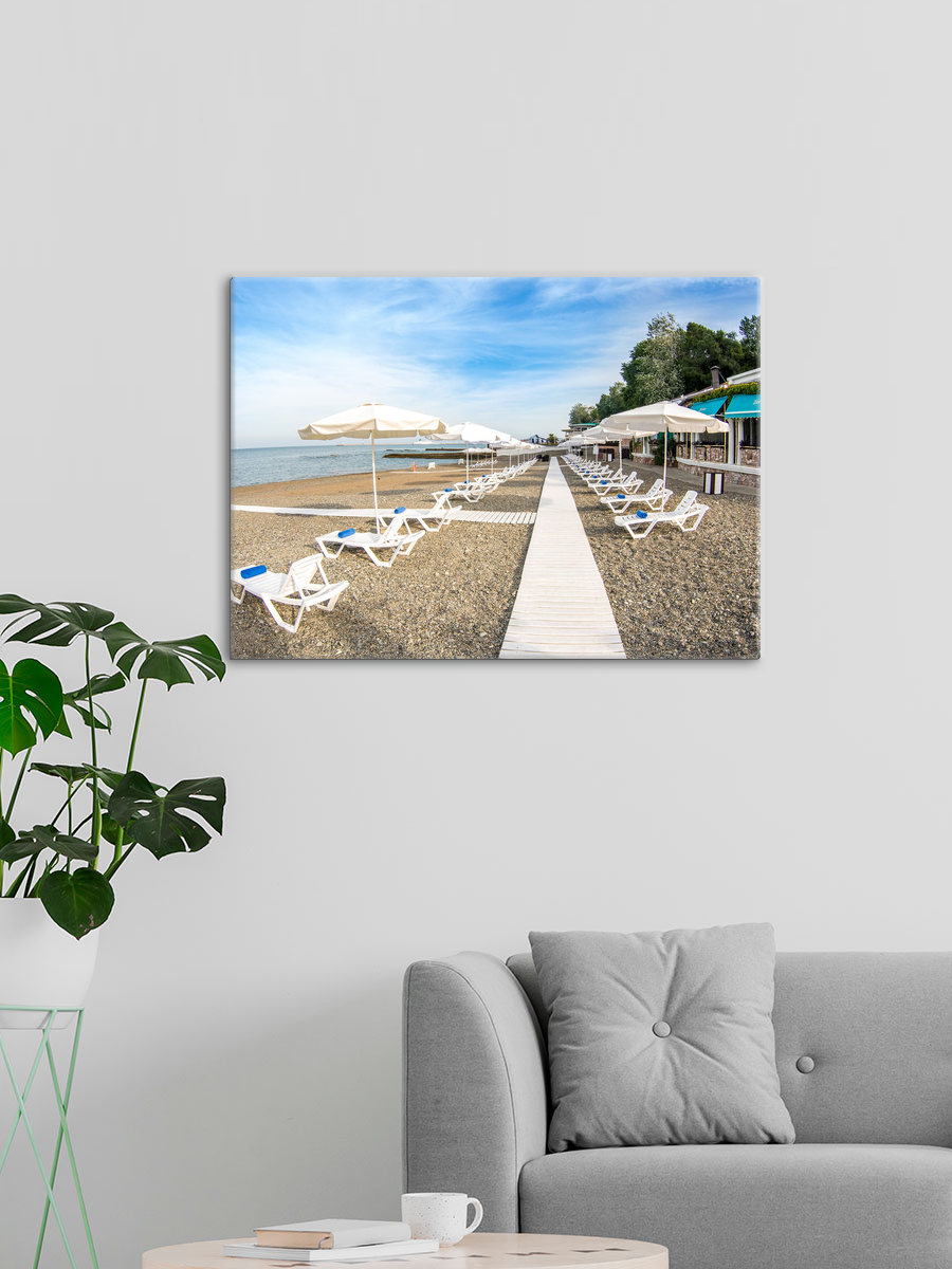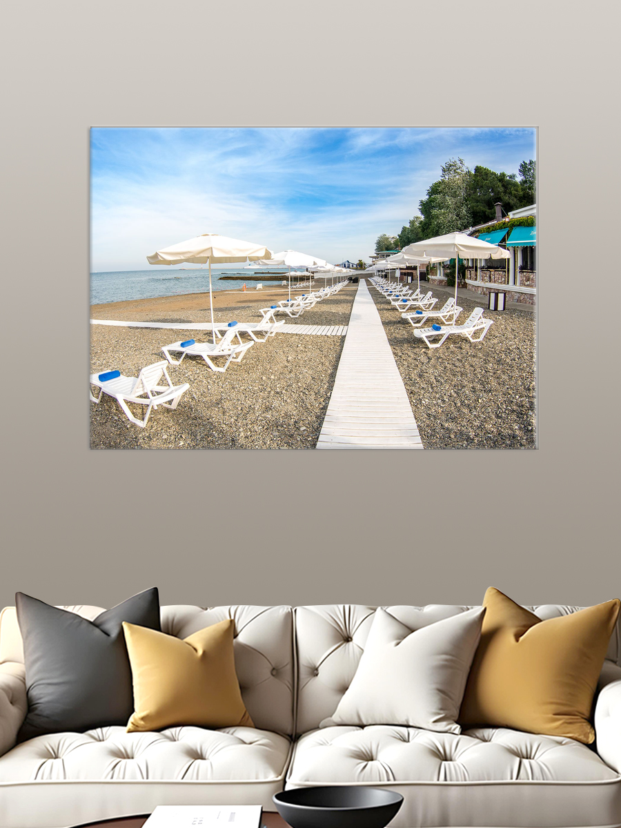 Описание: Картина 50 на 70 "Морское утро" — это восхитительное изображение спокойного пляжа, где мягкие волны нежно касаются каменистого берега. На переднем плане вы видите удобные белые шезлонги, укрытые яркими голубыми полотенцами, а над ними раскинулись элегантные зонтики, защищающие от солнечных лучей. Уникальность этой картины заключается в её способности передавать атмосферу безмятежности и умиротворения, словно приглашая вас погрузиться в мир спокойствия. Эта картина вызывает теплые и приятные эмоции, напоминая о летних днях, проведенных на берегу моря. Она создает ощущение свободы и радости, вдохновляя на мечты о путешествиях и отдыхе. Вы можете представить, как морской бриз приносит свежесть и спокойствие, делая каждый взгляд на картину настоящим наслаждением. Идеально подойдет для интерьера, оформленного в светлых тонах, как в современных, так и в классических стилях. Она станет прекрасным акцентом в гостиной, спальне или кабинете, добавляя нотку летнего настроения и гармонии. Обвив ее в рамку, вы сможете повесить ее на стену или разместить на полке, создавая уютный уголок для отдыха и вдохновения. Эта картина станет не только украшением вашего дома, но и источником положительных эмоций для вас и ваших близких.