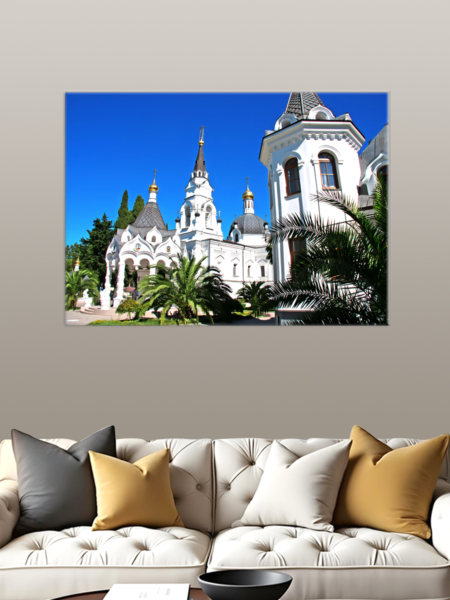 Описание: Картина 50 на 70 "Солнечный храм" представляет собой яркий и живописный пейзаж, на котором изображены величественные архитектурные формы храма, окруженные зеленью и ясным небом. Уникальность этой картины заключается в её способности передать атмосферу спокойствия и умиротворения, создавая ощущение гармонии с природой. При взгляде на "Солнечный храм" зритель ощущает тепло солнечных лучей и свежесть зелени, что наполняет его внутренним мир позитивом и радостью. Эта картина вызывает чувства вдохновения, умиротворения и надежды, словно приглашая в мир духовного покоя и красоты. Картина идеально подойдет для оформления различных интерьеров – от уютной гостиной до светлого кабинета или спальни. Она станет прекрасным акцентом в любом помещении, добавляя нотки элегантности и гармонии. "Солнечный храм" также отлично впишется в интерьер, оформленный в классическом или современном стиле, а её яркие цвета будут радовать глаз и поднимать настроение каждый день.