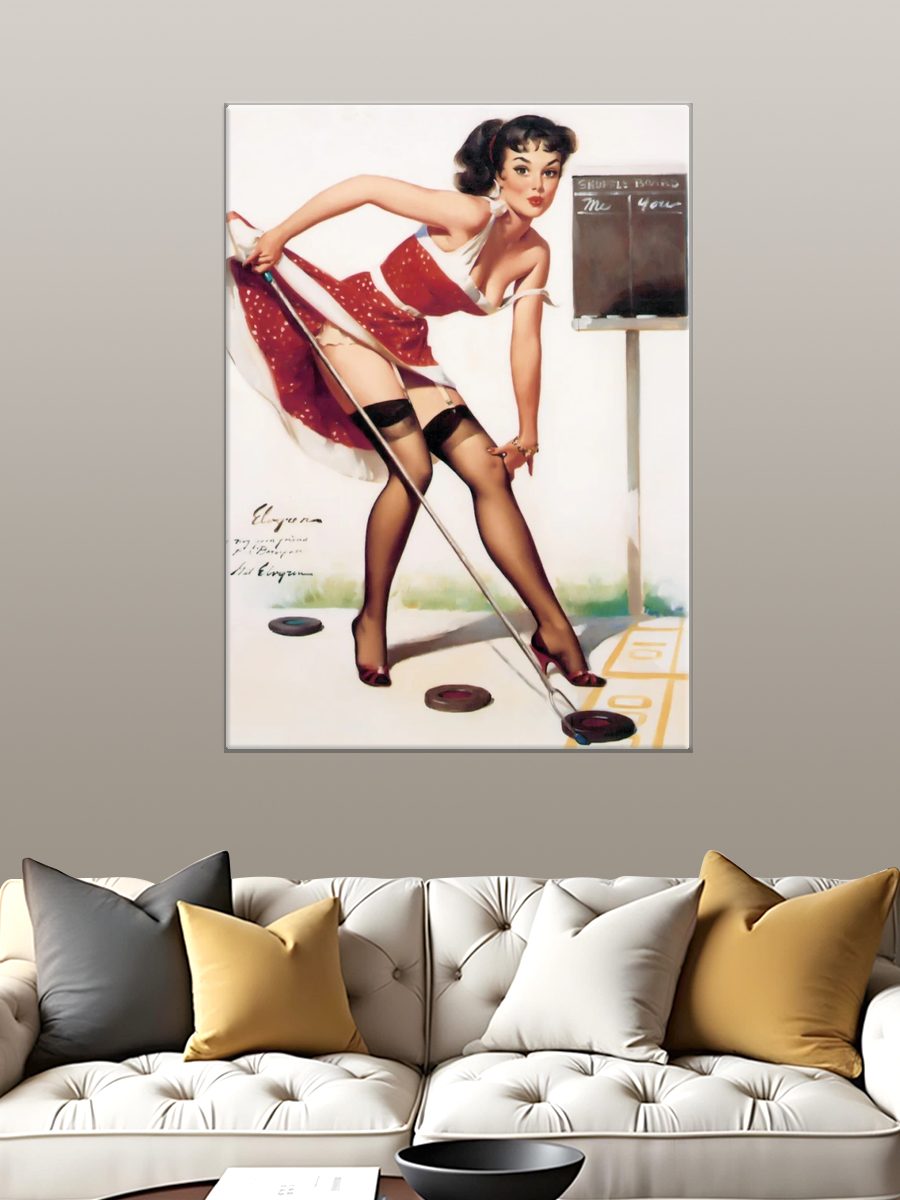 Описание: Картина 50 на 70 "Элегантная игра" — это яркое и живое изображение, которое сразу привлекает внимание. На холсте запечатлён момент, когда женщина в красном платье с белыми горошками, изящно наклонившись, готовится к игре в кёрлинг. Её уверенный взгляд и грациозная поза создают ощущение динамики и игривости, что делает картину уникальной и запоминающейся. Эта работа вызывает множество положительных эмоций — от лёгкости и радости до ностальгии по играм и общению с друзьями. Яркие цвета и игривый сюжет наполняют пространство позитивом, создавая атмосферу уюта и тепла. Картина станет не только украшением вашего интерьера, но и источником вдохновения для ежедневной жизни. Она отлично впишется в различные стили: от ретро и винтажного до современного. Повесьте её в гостиной, игровой комнате или даже в кабинете — она добавит характер и индивидуальность любому пространству. "Элегантная игра" может стать ярким акцентом в вашем доме, привнося в него атмосферу веселья и уюта.