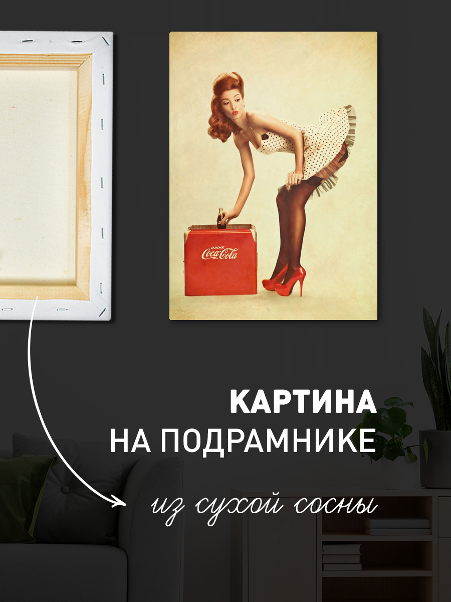 Описание: Картина 50 на 70 "Очарование ретро" представляет собой яркое изображение женщины в винтажном платье с горошком, которая с игривой улыбкой тянется к красной коробке Coca-Cola. Эта работа вызывает ностальгические чувства, погружая зрителя в атмосферу 50-х годов, когда стиль и элегантность сочетались с игривостью. Уникальность картины заключается в её способности передать дух времени через яркие цвета и динамичную композицию. Эта картина наполняет пространство позитивом и энергией, вызывая улыбку у каждого, кто её увидит. Она прекрасно подойдет для уютной кухни, стильной столовой или даже в качестве акцента в гостиной, придавая интерьеру нотки ретро-шарма. Визуально работа выглядит как приглашение в мир беззаботности и радости, что делает её идеальным выбором для тех, кто хочет добавить в свой дом частичку истории и стиля. Картина может стать замечательным подарком для любителей винтажного стиля, а также для тех, кто ценит красивое и оригинальное оформление своего пространства.