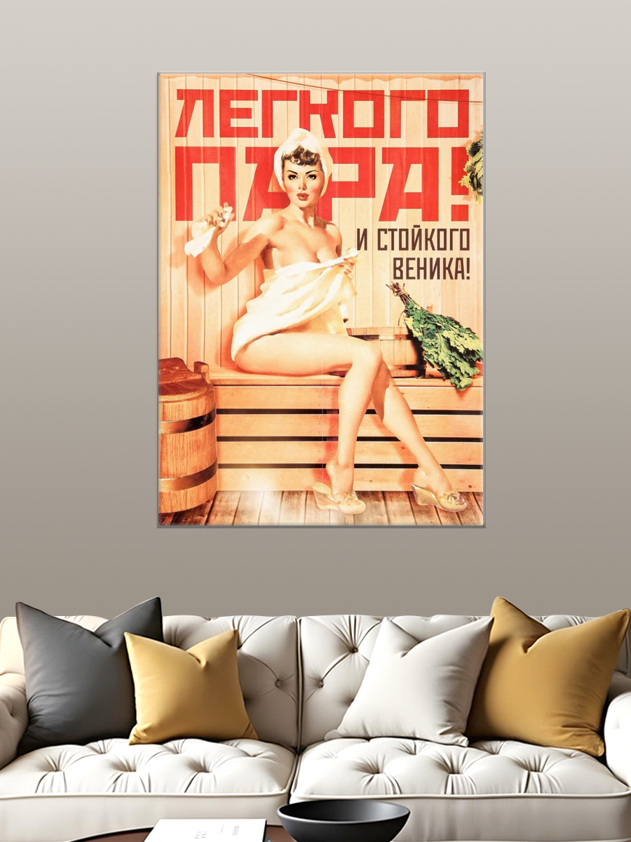 Описание: Картина 50 на 70 "Легкого пара!" — это яркое и запоминающееся произведение искусства, которое переносит зрителя в атмосферу русской бани. На холсте изображена очаровательная модель, обернутая в легкое полотенце, которая с игривой улыбкой держит веник, символизирующий традиции и уют русской сауны. Основная идея картины — передать тепло, расслабление и радость от простых удовольствий, таких как парная и spa-процедуры. Эта картина вызывает положительные эмоции и дарит ощущение легкости и уюта. Она напоминает о приятных моментах, проведённых в кругу друзей и близких, и создает атмосферу комфорта и расслабления. Яркие цвета и динамичная композиция делают её центром внимания, которое будет радовать глаз и поднимать настроение. Картина прекрасно впишется в интерьер в стиле скандинавского минимализма, современного или даже прованса. Она отлично подойдет для установки в ванной комнате, сауне или спа-зоне, а также может украсить стену в гостиной или прихожей, добавляя в пространство нотки тепла и уюта. Благодаря своей уникальности и яркости, эта картина станет не только украшением вашего интерьера, но и отличным подарком для тех, кто ценит традиции и уют домашнего очага.