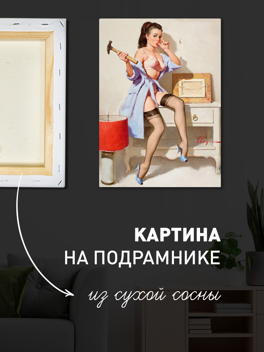 Описание: Картина 50 на 70 "Очарование домашнего уюта" представляет собой яркое и запоминающееся изображение, которое сочетает в себе игривость и уют. На картине изображена женщина в легком халате, держащая в руках молоток, что создает атмосферу неожиданности и легкой провокации. Такой контраст делает картину уникальной, привнося в ваше пространство элемент веселья и игривости. Эта картина вызывает улыбку и поднимает настроение, наполняя комнату атмосферой легкости и романтики. Она способна вызвать у зрителя чувство ностальгии по временам, когда подобные образы украшали дома, напоминающие о простых радостях жизни. "Очарование домашнего уюта" станет отличным акцентом в интерьере, добавляя яркие детали в любую комнату. Она прекрасно подойдет для спальни или гостиной, где вы хотите создать атмосферу тепла и уюта. Также ее можно разместить в кабинете или на кухне, чтобы добавить немного игривости в повседневную обстановку. Эта картина станет не только украшением вашего дома, но и отличным подарком для близких, которые ценят искусство и уникальные вещи.