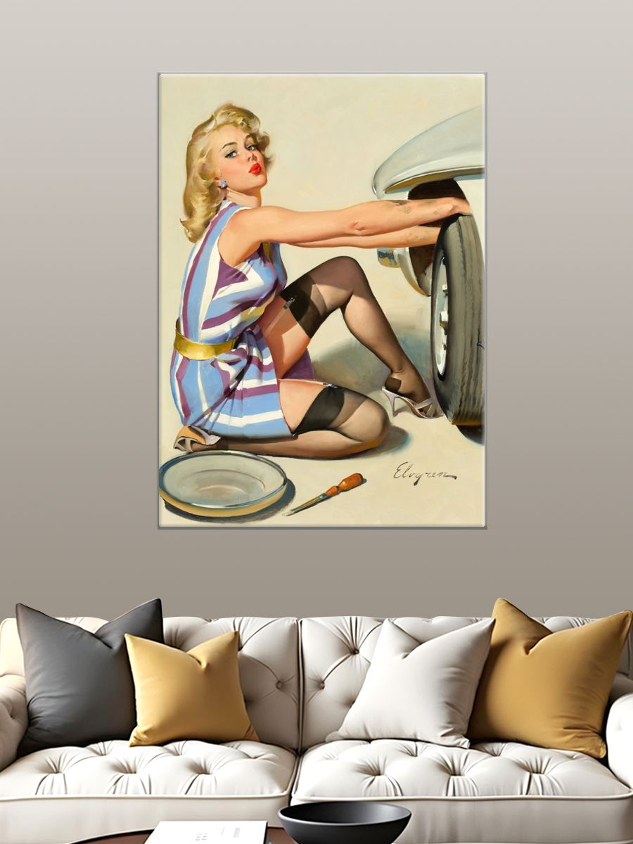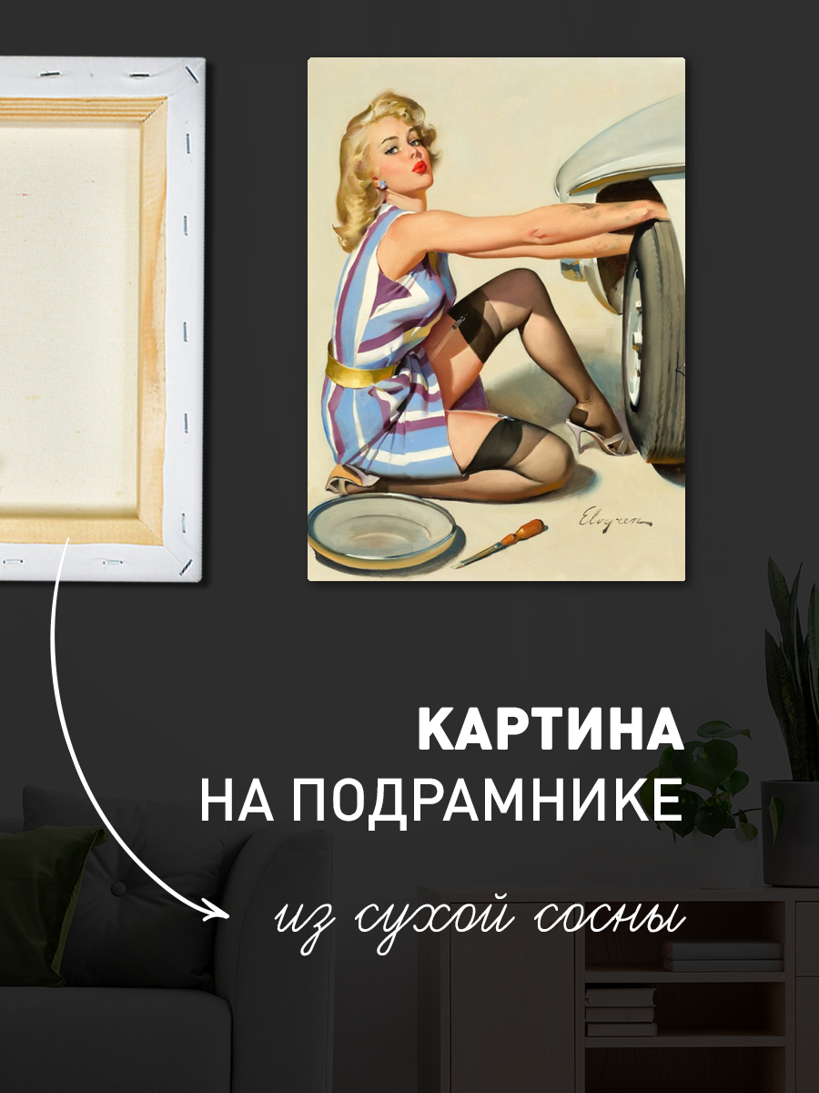Описание: Картина 50 на 70 "Очарование у автомобиля" представляет собой изысканный и яркий образ, на котором изображена женщина, занимающаяся ремонтом автомобиля. Она одета в стильное полосатое платье и элегантные туфли, что подчеркивает её уверенность и женственность. Эта картина наполнена особым шармом и игривостью, что делает её уникальной в мире искусства. Основная идея картины – соединение классической красоты и современных реалий, где даже в мужской сфере, как автосервис, женщина может выглядеть привлекательно и стильно. Она вызывает чувства восхищения и вдохновения, напоминая нам о том, что женственность и сила могут сосуществовать гармонично. Эта работа, безусловно, станет ярким акцентом в вашем интерьере, вызывая улыбки и положительные эмоции у всех, кто её увидит. Картина отлично подойдет для гостиной, кабинета или даже кухни, добавляя в пространство нотку игривости и стиля. Её можно разместить над диваном, на стене напротив рабочего места или в уголке, где она будет радовать глаз каждый день. Эта работа станет не только украшением вашего дома, но и предметом для обсуждения, привнося в ваш интерьер индивидуальность и характер.