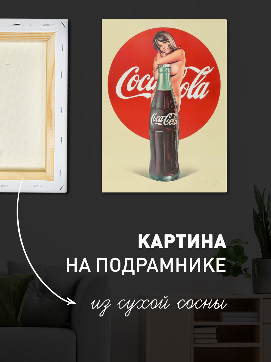 Описание: Картина 50 на 70 "Coca-Cola" представляет собой яркое и провокационное произведение искусства, на котором изображена обнаженная женщина, обнимающая классическую бутылку Coca-Cola на фоне яркого красного круга с логотипом. Эта работа сочетает в себе элементы поп-арта и ретро-стиля, что делает её уникальной и запоминающейся. Основная идея картины заключается в контрасте между классической рекламой и человеческой природой, вызывая у зрителя множество эмоций: от ностальгии до восхищения. Эта картина вызывает ощущение игривости и свободы, заставляя задуматься о потребительской культуре и её влиянии на наше восприятие красоты. Она наполняет пространство энергией и жизнью, добавляя яркий акцент в любое помещение. Отлично подойдет для современных интерьеров, таких как лофты, художественные студии и креативные офисы. Повесьте её в гостиной или на кухне, и она станет центром внимания, вызывая интерес гостей и создавая атмосферу непринужденности и стиля. Эта картина не просто украшение стены — это разговорный предмет, который привнесет в ваш дом частичку искусства и истории.