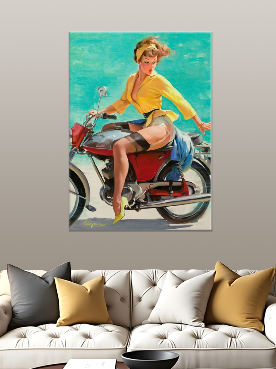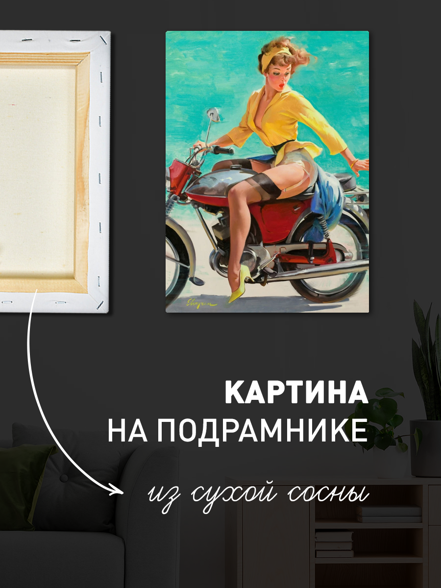 Описание: Картина 50 на 70 "На мотоцикле" - это яркое и динамичное изображение, которое переносит зрителя в мир свободы и приключений. На картине изображена элегантная женщина на мотоцикле, которая привлекает внимание своим дерзким стилем и уверенной позой. Яркие цвета и выразительная композиция создают атмосферу веселья и энергии, вызывая чувство восхищения и вдохновения. Эта картина вызывает яркие эмоции, напоминая о теплых летних днях и духе авантюризма. Зритель может почувствовать ветер в волосах и радость от скорости, что делает её идеальным акцентом для любого интерьера. Она станет прекрасным дополнением к современному или ретро-декору, добавляя нотку игривости и элегантности. Картина прекрасно впишется в гостиную, кабинет или даже уютное кафе, создавая атмосферу дружелюбия и непринужденности. Она станет отличным подарком для любителей мотоциклов или просто ценителей искусства, способным украсить любое пространство и вдохновить на новые свершения.