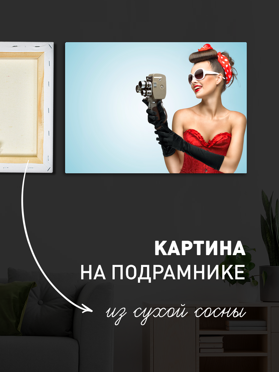 Описание: Картина 50 на 70 "Vintage Glamour" представляет собой захватывающее изображение, на котором изображена элегантная женщина в красном корсете, держащая винтажную камеру. Эта работа воссоздает атмосферу старинного кино и великолепия, вызывая ностальгические чувства и воспоминания о прошлом. Основная идея картины заключается в том, чтобы передать дух ретро и празднование женственности, что делает её уникальной и привлекательной для ценителей искусства. Каждый взгляд на эту картину наполняет сердце радостью и вдохновением. Яркие цвета и игривое выражение лица модели создают атмосферу веселья и легкости, поднимая настроение и наполняя пространство положительной энергией. Картина словно приглашает зрителя в мир сказки и романтики, что делает её идеальным дополнением к любому современному или винтажному интерьеру. "Vintage Glamour" прекрасно подойдет для спальни, гостиной или даже домашнего офиса, добавляя нотку элегантности и шарма. Она станет изюминкой вашего пространства, привлекая внимание гостей и создавая уютную атмосферу. Разместив картину на стене, вы не только украсите свой интерьер, но и создадите пространство, в котором будет приятно находиться и работать. Эта картина — не просто декор, а настоящий источник вдохновения и положительных эмоций.