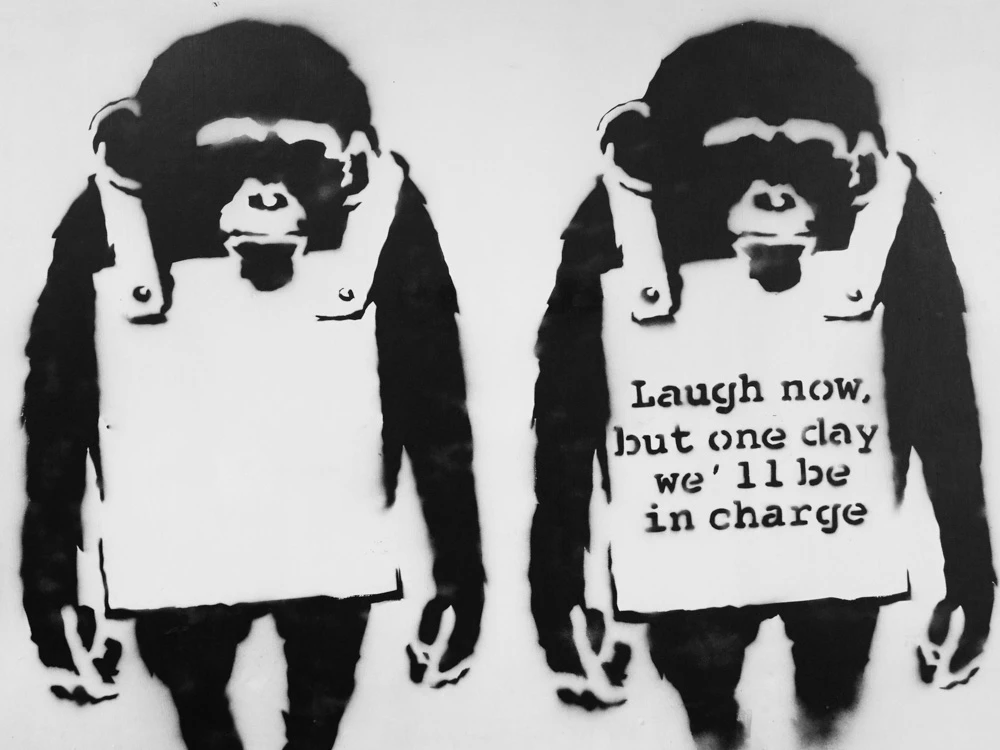 Описание: Картина 50 на 70 "Laugh Now" изображает двух симпатичных обезьян, одетых в белые комбинезоны, которые стоят рядом и смотрят на зрителя. На их комбинезонах написана фраза: "Laugh now, but one day we'll be in charge". Эта работа вызывает глубокие размышления о человеческом обществе и роли животных в нашей жизни. Уникальность картины заключается в сочетании юмора и серьезного послания, которое заставляет задуматься о будущем. Картина передает чувство легкости и иронии, при этом создавая пространство для размышлений. Она может вызывать улыбку и одновременно задавать важные вопросы, что делает её идеальной для обсуждений в кругу друзей и семьи. Эта работа прекрасно подойдет для современного интерьера, добавляя элемент неожиданности и оригинальности. Она будет уместна в гостиной, кабинете, или даже в офисе, где важно создать атмосферу креативности и открытости к новым идеям. Благодаря своим нейтральным цветам, картина легко впишется в различные цветовые схемы и стили оформления. Она станет центром внимания и источником вдохновения в вашем пространстве.