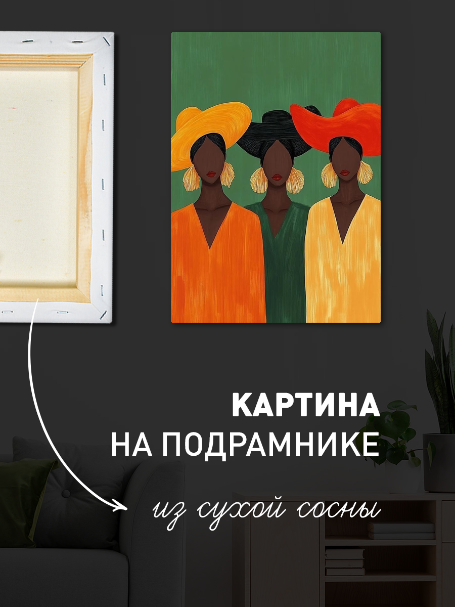 Описание: Картина 50 на 70 "Четыре грации" - это выразительное полотно, которое изображает силуэт четырех женщин в ярких оранжево-коричневых нарядах и головных уборах. Основная идея картины заключается в celebration женственности и красоты, отражая разнообразие стилей и самовыражения. Уникальность этой работы заключается в сочетании абстрактных форм и ярких цветов, которые создают динамику и движение, пробуждая в зрителе чувство радости и вдохновения. Эта картина вызывает множество положительных эмоций — от восхищения до легкости, она наполняет пространство теплом и энергией. Каждая деталь, от узоров на платьях до выразительных поз, говорит о силе и уверенности женщин, создавая атмосферу поддержки и единства. "Четыре грации" идеально впишется в любой современный интерьер, будь то гостиная, спальня или даже офисное пространство. Она станет ярким акцентом на стене, привлекая внимание и вызывая интерес у гостей. Картина отлично дополнит как минималистичный, так и эклектичный интерьер, добавляя ему характер и индивидуальность. Повесьте её на стену рядом с мягкой мебелью или в зоне отдыха, чтобы создать уютную атмосферу, в которой приятно проводить время.