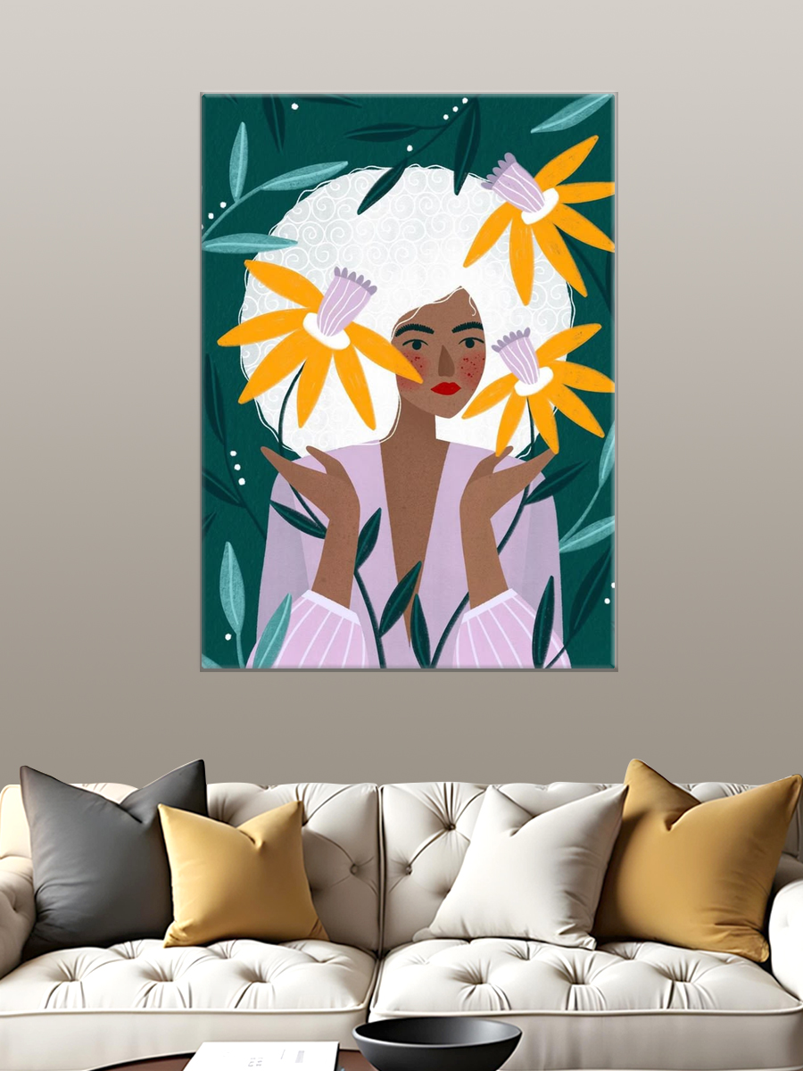 Описание: Картина 50 на 70 "Цветочная гармония" - это яркое и запоминающееся произведение искусства, которое привносит в ваше пространство атмосферу весны и свежести. На изображении изображена женщина с пышной белой прической, окруженная яркими желтыми цветами и зелеными листьями. Основная идея картины заключается в гармонии между природой и человеческой красотой, что делает её уникальной и вдохновляющей. Эта картина вызывает светлые и радостные эмоции, напоминая о теплом солнце и цветущих лугах. Она может стать центром притяжения в вашем интерьере, вызывая улыбку и положительные ощущения у гостей. Цвета картины - яркие желтые и спокойные зеленые оттенки - создают уютную и жизнеутверждающую атмосферу, которая будет радовать глаз каждый день. Картина отлично подойдет для различных стилей интерьера, включая скандинавский, современный и бохо. Она прекрасно впишется в гостиные, спальни или кабинеты, добавив яркости и индивидуальности вашему пространству. Повесьте её на стену рядом с растениями или в светлом уголке, чтобы создать гармоничное сочетание с природой. "Цветочная гармония" станет не только украшением вашего дома, но и источником вдохновения и позитива.