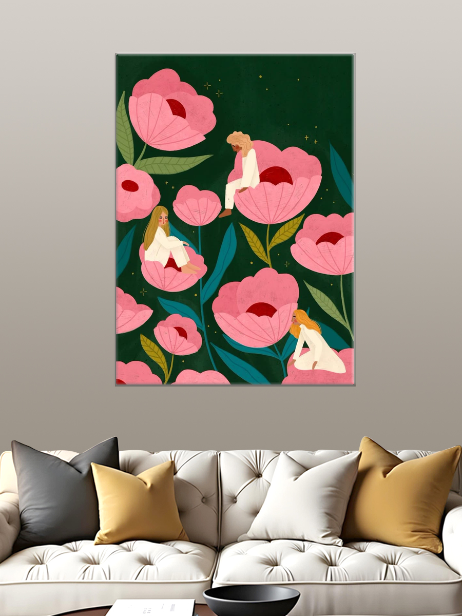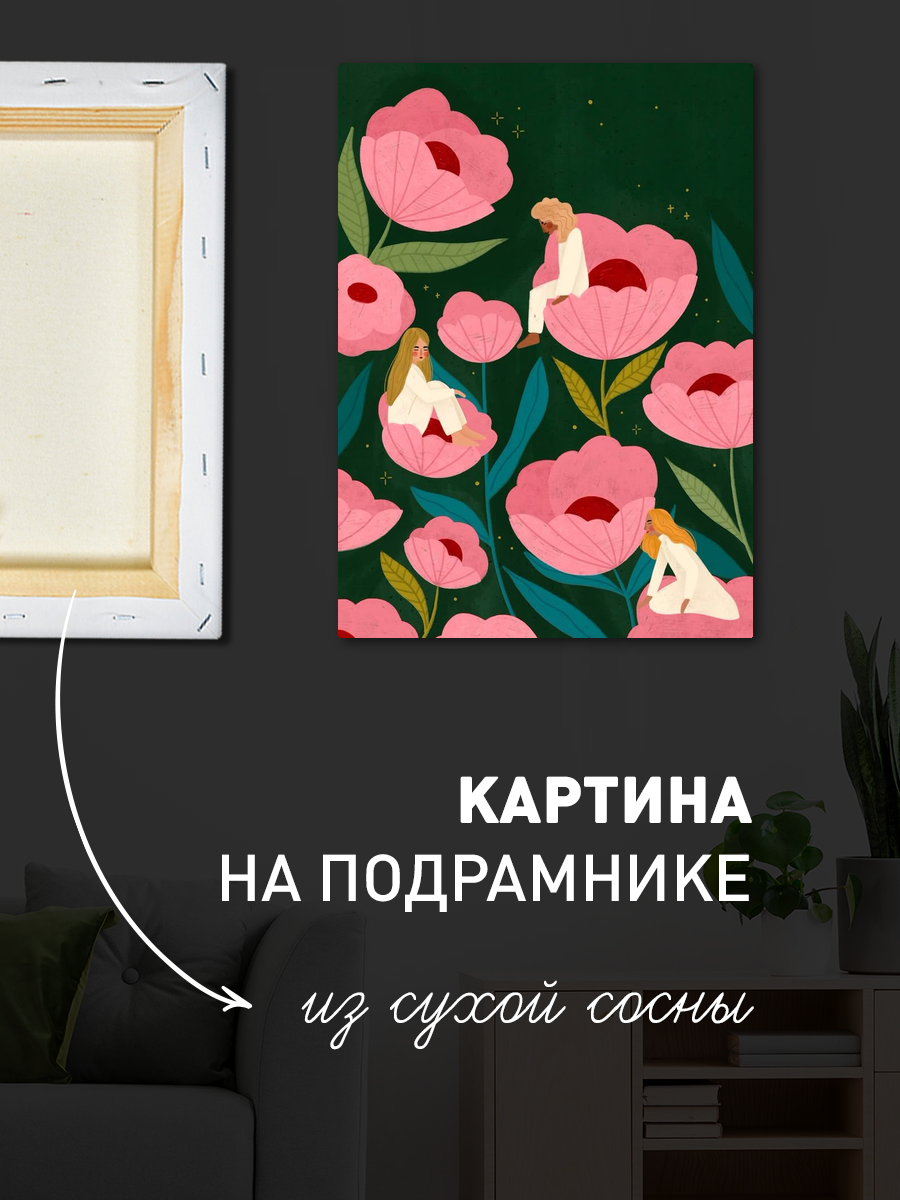 Описание: Картина 50 на 70 'Цветочная гармония' — это уникальное произведение искусства, которое переносит зрителя в мир мечты и спокойствия. На холсте изображены женщины, нежно расположившиеся среди огромных цветков, каждый из которых символизирует красоту и женственность. Основная идея картины заключается в соединении природы и человеческой души, что создает атмосферу умиротворения и гармонии. Эта картина вызывает чувство легкости и счастья, погружая в мир фантазий и вдохновения. Яркие и теплые цвета, такие как розовый и зеленый, наполняют пространство позитивной энергией, а спокойные оттенки создают уют и комфорт. 'Цветочная гармония' станет настоящим центром притяжения в вашем доме, вызывая восхищение у гостей и создавая приятное настроение. Она идеально подойдет для различных интерьеров: от современных минималистичных до уютных скандинавских стилей. Можно разместить её в гостиной, спальне или даже в кабинете, где она будет вдохновлять на творчество и радовать глаз. Этот холст станет не только элементом декора, но и источником положительных эмоций и вдохновения каждый день.
