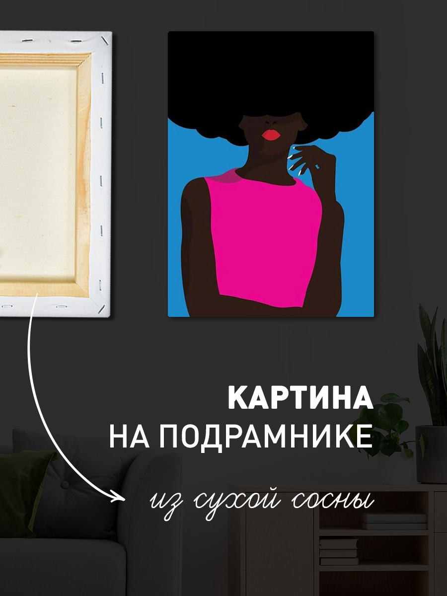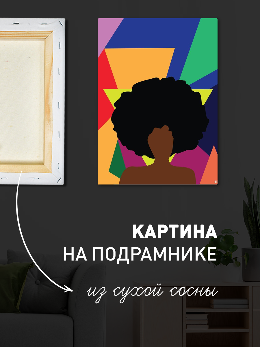 Описание: Картина 50 на 70 "Вдохновение" представляет собой яркое и выразительное произведение искусства, которое сочетает в себе элементы абстракции и силуэтного портрета. На картине изображена женщина с пышной афро-стрижкой, которая контрастирует с геометрическим фоном, наполненным насыщенными цветами. Основная идея картины заключается вcelebration of individuality and beauty, отражая силу и уверенность женщин. Уникальность данного произведения заключается в использовании ярких, смелых оттенков, которые создают динамику и движение, привлекая внимание зрителя. Эта картина вызывает чувство радости, силы и вдохновения, побуждая зрителя задуматься о своей уникальности и внутренней силе. Она станет отличным акцентом в любом интерьере, будь то современная гостиная, стильный офис или уютная спальня. Благодаря своим ярким цветам и интересной композиции, картина легко впишется в различные стили оформления, от минимализма до бохо. Повесьте её на стену, и она станет не только украшением вашего пространства, но и источником положительной энергии и вдохновения каждый день.