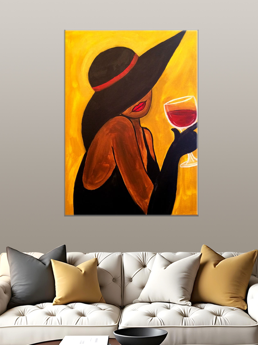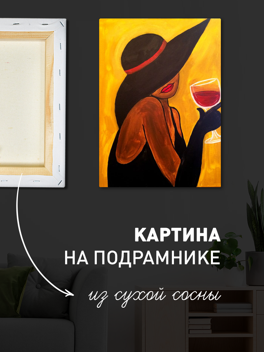 Описание: Картина 50 на 70 "Женщина с вином" – это яркое и выразительное произведение искусства, которое привлекает внимание своим уникальным стилем и эмоциональной глубиной. На холсте изображена загадочная женщина с бокалом вина, изящно одетая в черное платье и широкополую шляпу. Ее поза говорит о уверенности и грации, а яркие красные губы добавляют акцент к образу. Основная идея картины – это празднование женской силы и независимости, что делает её особенно привлекательной для современных интерьеров. Эта картина вызывает теплые и радостные эмоции, наполняя пространство атмосферой легкости и утонченности. Она может стать центром внимания в вашем доме, напоминая о том, как важно наслаждаться жизнью и маленькими радостями. Уникальное сочетание желтого фона с черными и красными элементами создает контраст, который оживляет любое помещение, будь то гостиная, спальня или даже кабинет. Картина отлично впишется в интерьер в стиле модерн, ар-деко или даже минимализм, добавляя яркий штрих в обстановку. Повесьте её на стену рядом с мягкой мебелью или в угол, где она будет привлекать взгляды и вызывать восхищение гостей. Она прекрасно дополнит ваш уютный уголок, придавая ему стиль и характер. Позвольте "Женщине с вином" стать вашим личным источником вдохновения и хорошего настроения!