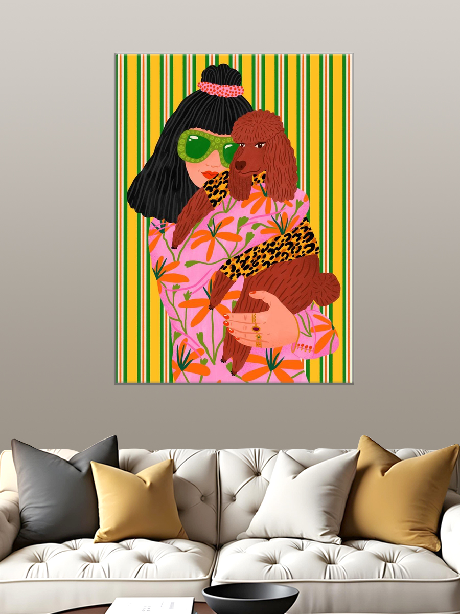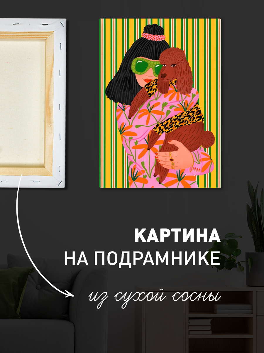 Описание: Картина 50 на 70 "Собака и хозяин" представляет собой яркое и жизнерадостное изображение, на котором женщина в стильной одежде обнимает свою собаку. Основная идея картины заключается в выражении нежности и любви между человеком и его питомцем, что делает её уникальным произведением искусства. Яркие цвета и смелые узоры создают атмосферу веселья и уюта, наполняя пространство положительной энергией. Эта картина вызывает радость и тепло, пробуждая положительные эмоции. Она словно зовет нас окунуться в мир дружбы и преданности, что делает её идеальным украшением для дома. Представьте, как она будет выглядеть на стене вашей гостиной или в прихожей, создавая атмосферу уюта и радости. Картина также прекрасно дополнит интерьер в стиле бохо, модерн или эклектику, добавляя яркие акценты и подчеркивая индивидуальность вашего пространства. Она станет настоящим центром внимания и разговоров, привнося в ваш дом частичку искусства и жизни. Не упустите возможность добавить в своё пространство это удивительное произведение, которое будет радовать вас и ваших близких каждый день.