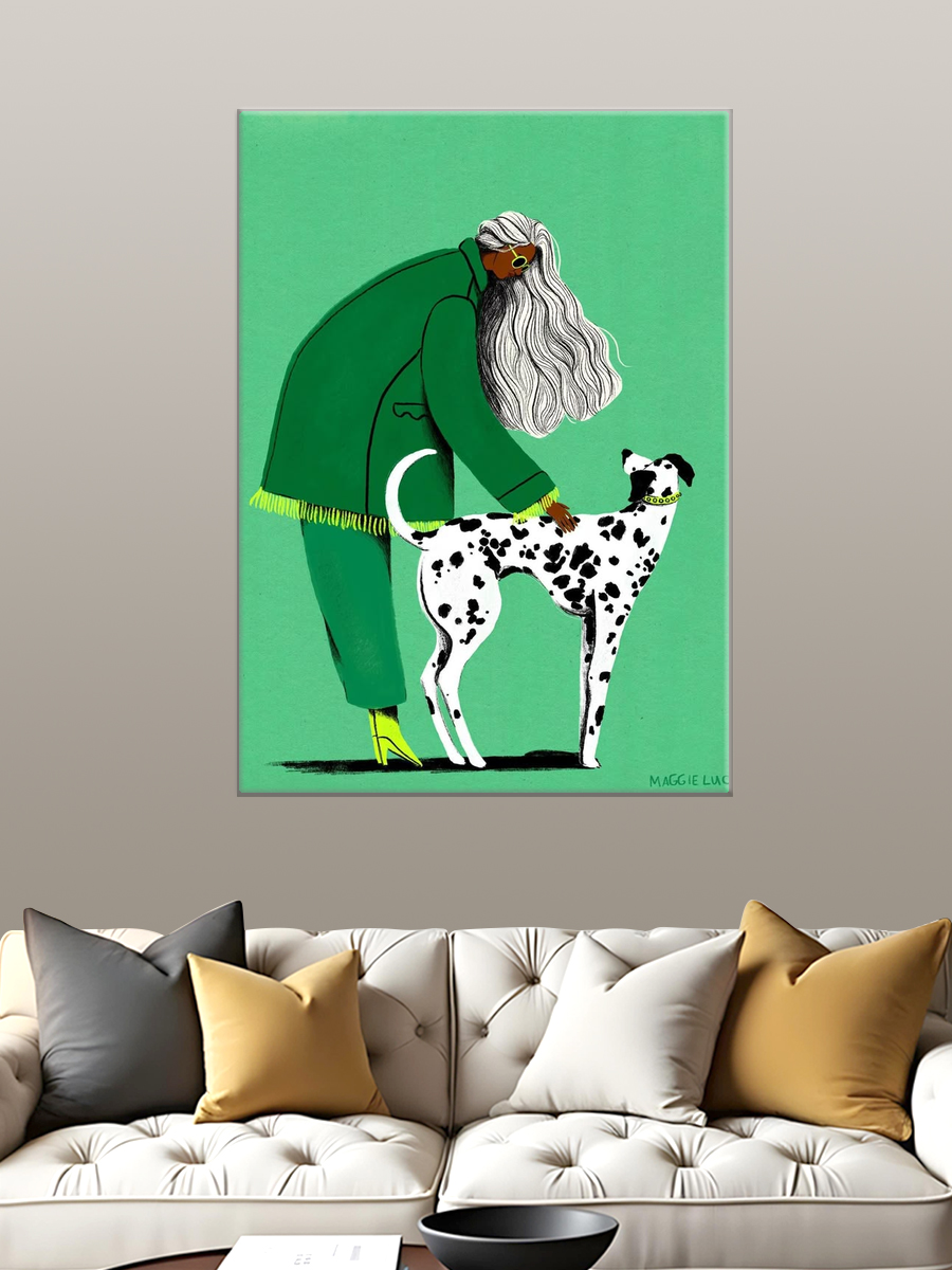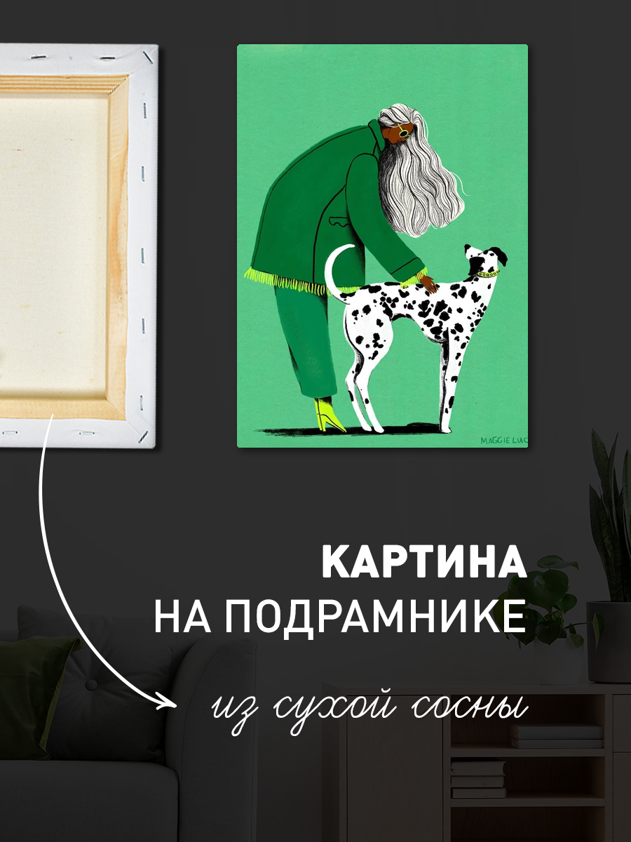 Описание: Картина 50 на 70 "Очарование дружбы" изображает гармоничное взаимодействие между стильной женщиной с длинными белыми волосами и ее верным другом — далматином. Женщина, одетая в яркий зеленый костюм, нежно гладит своего питомца, создавая атмосферу тепла и заботы. Уникальность этой картины заключается в сочетании выразительных линий и ярких цветов, которые передают чувство радости и уюта. Эта работа вызывает положительные эмоции, наполняет пространство светом и жизнью. Она может стать отличной частью вашего интерьера, добавляя нотки оригинальности и стиля. Ваша гостиная, спальня или кабинет будут выглядеть более уютно и привлекательно с этой картиной на стене. Сочетание зеленого фона и белых акцентов создает эффект свежести и легкости, что делает эту картину идеальной для современных интерьеров, оформленных в минималистическом или скандинавском стиле. "Очарование дружбы" станет великолепным подарком для любителей животных и ценителей искусства, которые хотят добавить яркие акценты в свой дом.