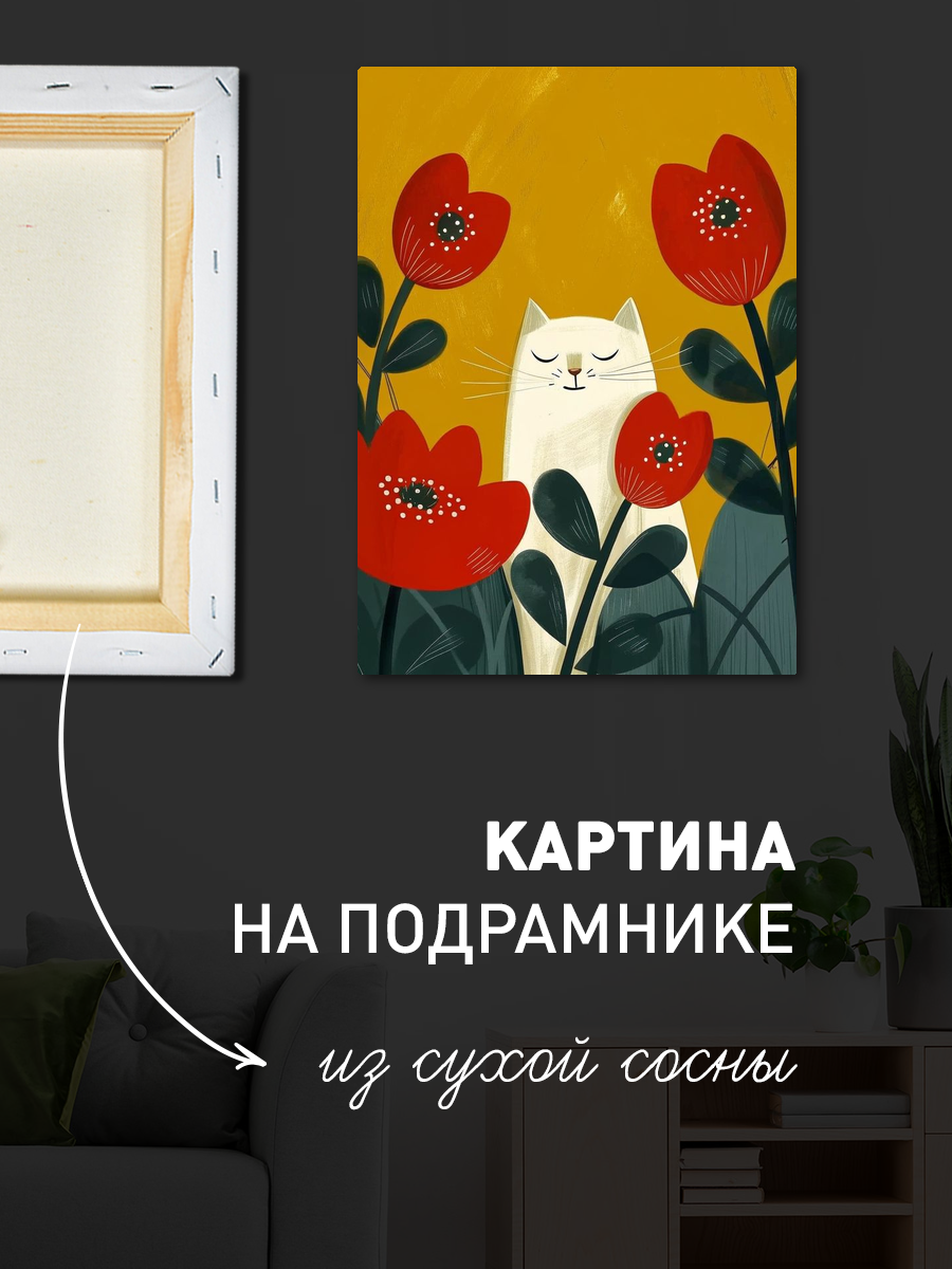 Описание: Картина 50 на 70 'Спокойствие природы' воплощает в себе гармонию и умиротворение. На холсте изображена белая кошка, сидящая среди ярких красных цветов на фоне теплого желтого цвета. Эта картина передает ощущение спокойствия и счастья, приглашая зрителя насладиться простыми радостями жизни. Каждый элемент — от милого выражения лица кошки до ярких цветов — наполнен теплотой и позитивной энергией. Эта картина станет ярким акцентом в вашем интерьере, добавляя уют и солнечное настроение в любую комнату. Она прекрасно подойдет для спальни, детской или гостиной, создавая атмосферу спокойствия и радости. 'Спокойствие природы' будет отлично смотреться как в современном, так и в классическом интерьере, подчеркивая индивидуальность вашего пространства. Представьте, как эта картина будет радовать вас каждый день, вызывая улыбку и положительные эмоции. Она станет не только украшением вашего дома, но и источником вдохновения, помогая вам находить радость в мелочах. Не упустите возможность добавить эту уникальную работу в свою коллекцию — она станет настоящей находкой для ценителей искусства и любителей домашних уютов.