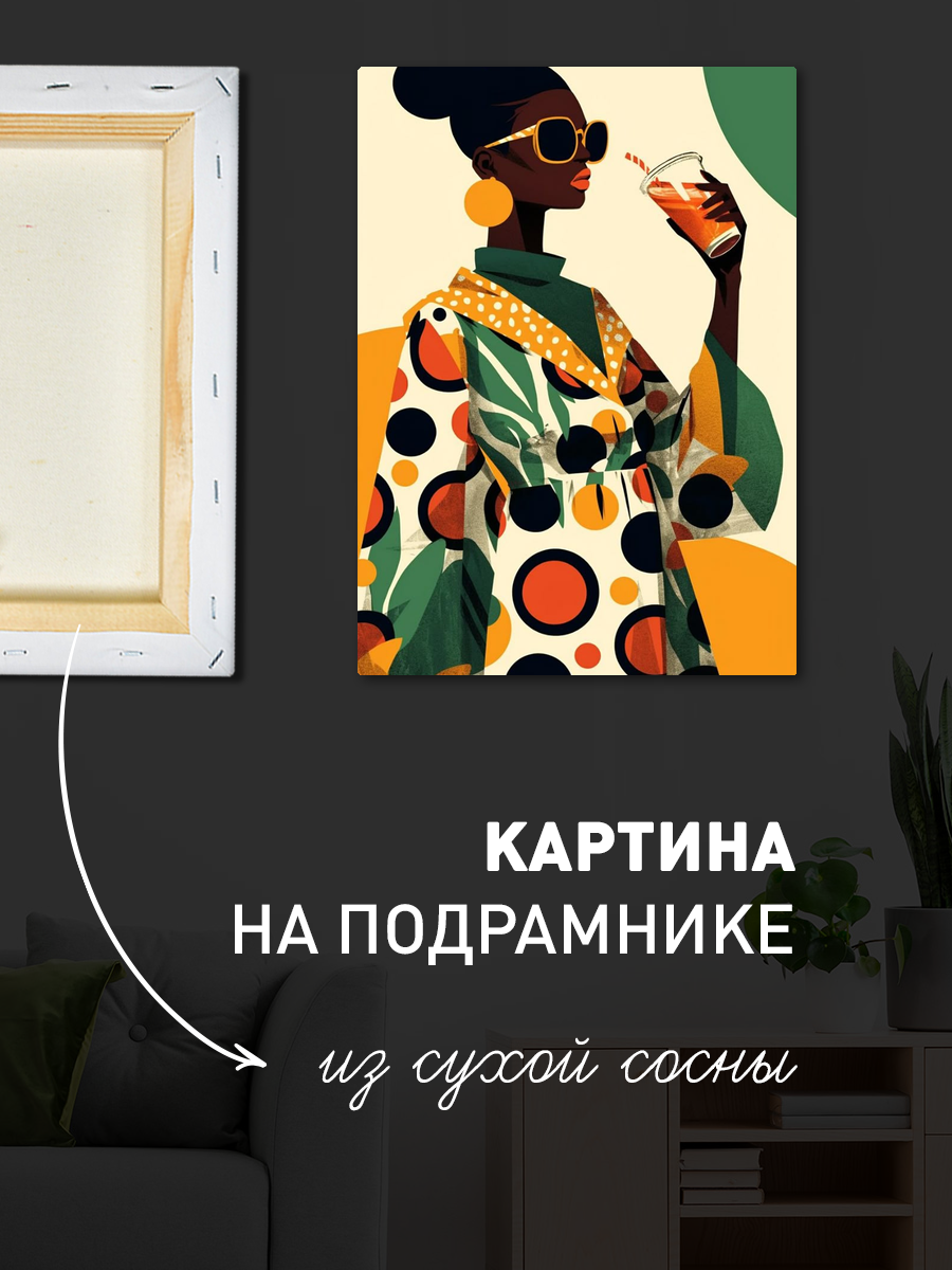Описание: Картина 50 на 70 "Стильная дама с напитком" – это яркое и жизнерадостное произведение искусства, которое захватывает внимание с первого взгляда. На картине изображена элегантная женщина, одетая в оригинальный наряд с цветочным и геометрическим принтом, держащая стакан с напитком. Эта работа олицетворяет уверенность, стиль и современность, что делает её уникальной. Эмоции, которые вызывает эта картина, можно описать как лёгкость и радость. Яркие цвета и динамичные формы создают атмосферу отдыха и наслаждения жизнью. Кажется, что эта дама готова к новым приключениям, и её уверенность заряжает оптимизмом. Картина отлично впишется в любой современный интерьер: от гостиной до кухни. Она станет ярким акцентом на стене и добавит изюминку в ваш дом, создавая атмосферу уюта и стиля. Подходит для тех, кто ценит индивидуальность и хочет добавить нотку креативности в своё пространство. Оживите свой интерьер с помощью этой уникальной работы, которая станет не только украшением, но и источником вдохновения каждый день.