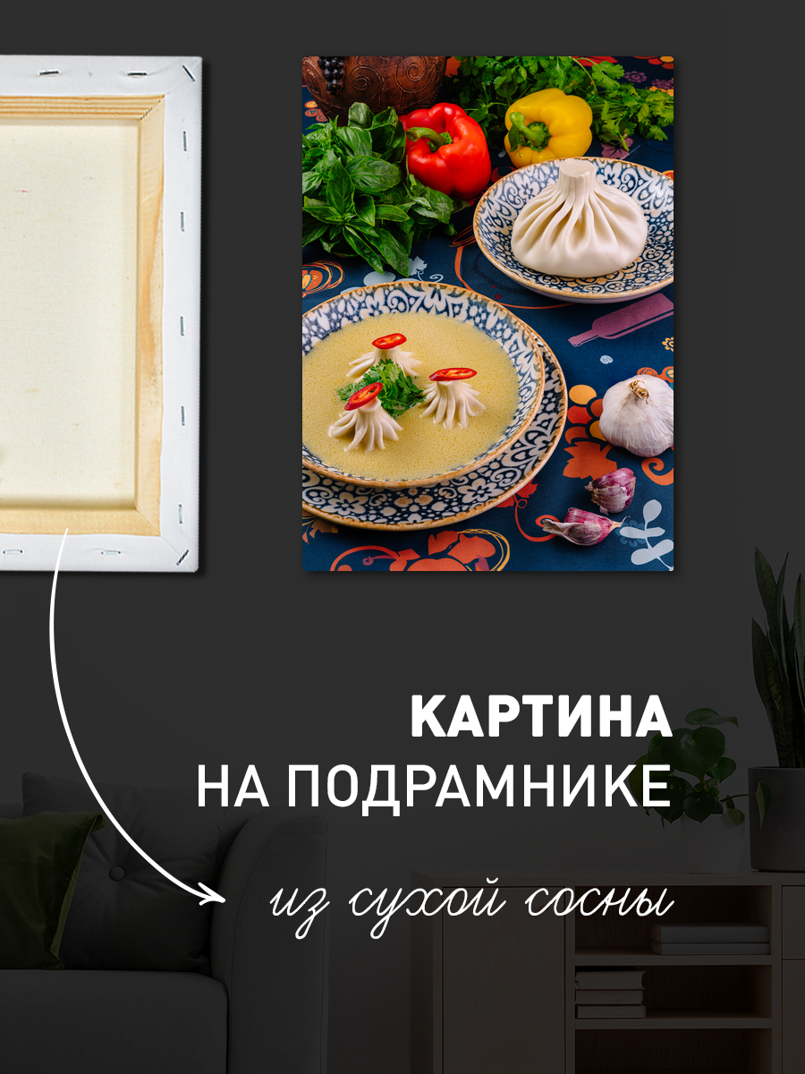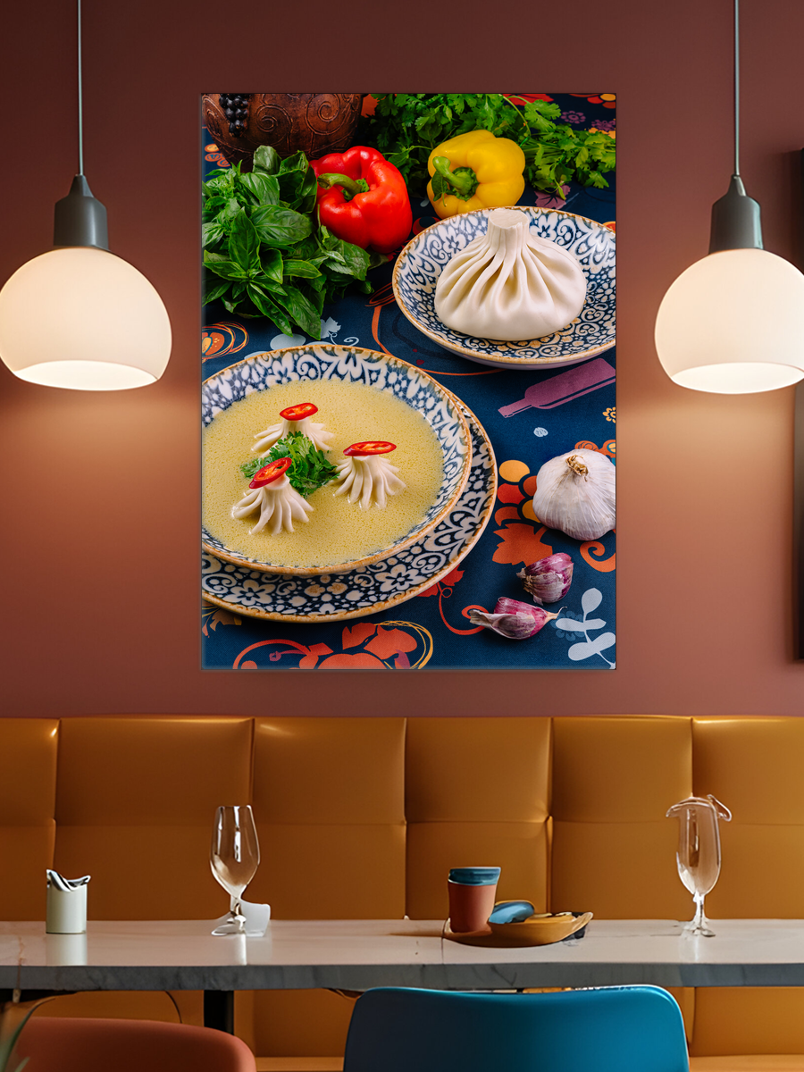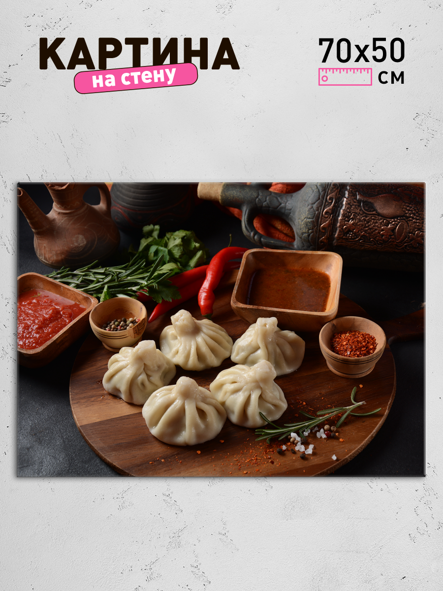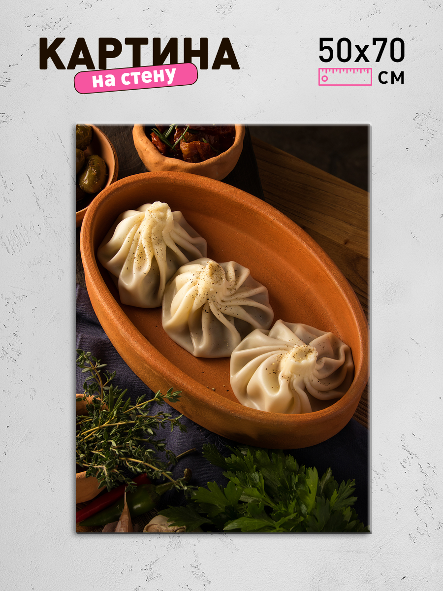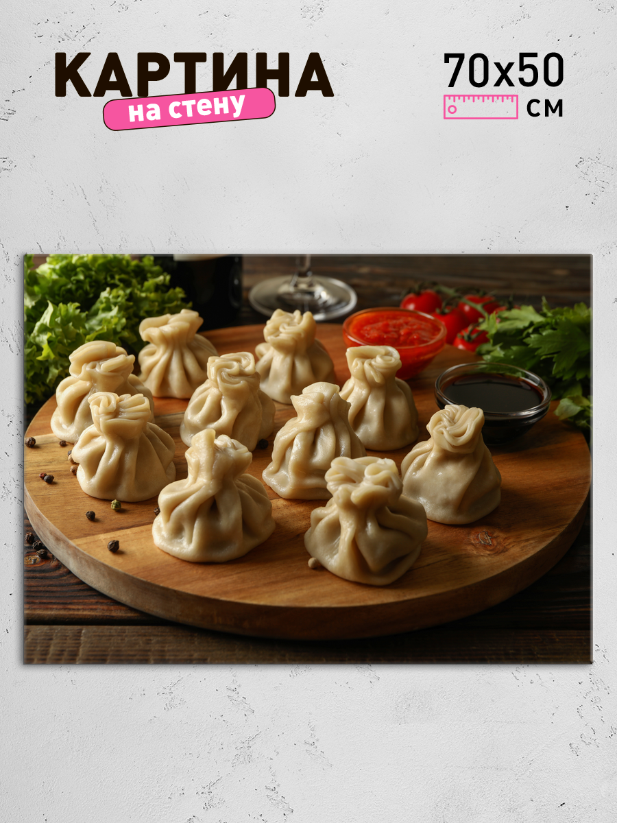Описание: Картина 50 на 70 "Восточная симфония" изображает аппетитные хинкали, аккуратно выложенные на деревянной доске. Основная идея картины заключается в передаче атмосферности и уюта традиционной кухни, где каждый элемент, от теста до пряностей, рассказывает свою историю. Уникальность этой работы заключается в детальной проработке текстур и цветов, что позволяет зрителю ощутить аромат свежеприготовленных блюд. Эта картина вызывает чувство тепла и ностальгии, погружая в атмосферу дружеских встреч и семейных обедов. Каждая деталь словно приглашает на дегустацию, создавая уютное настроение в вашем доме. Идеально подойдет для кухни, столовой или гостиной, добавляя яркие акценты в интерьер и подчеркивая вашу любовь к кулинарии. Она станет отличным подарком для ценителей восточной кухни и всех, кто ценит домашний уют и атмосферу дружбы.