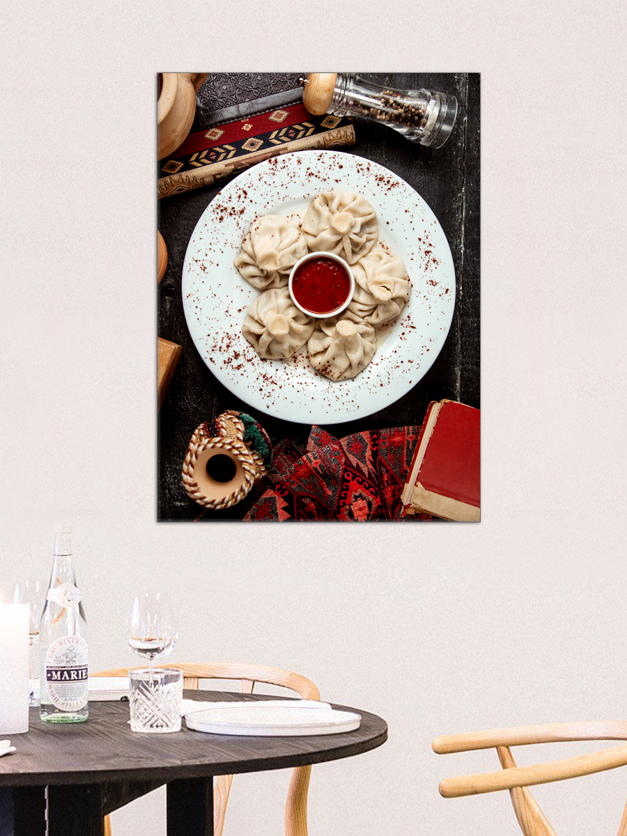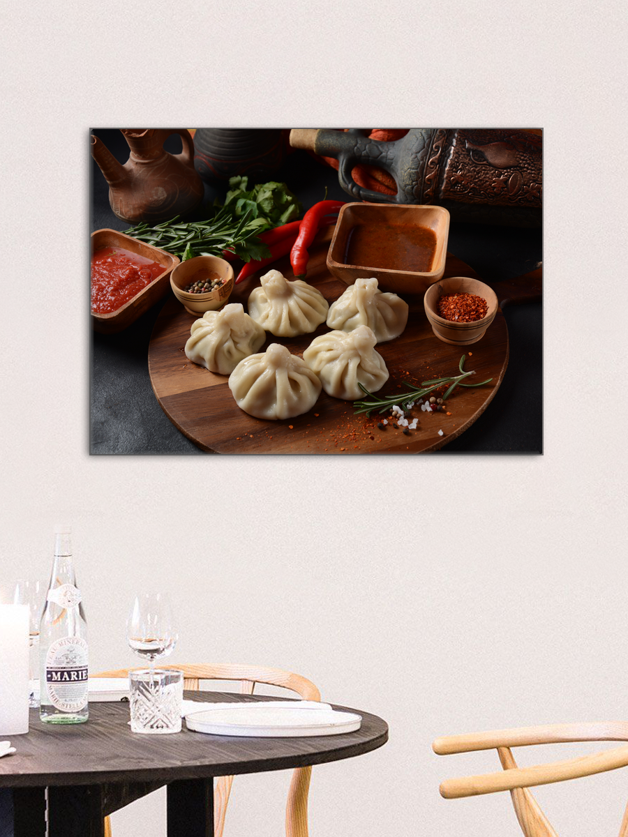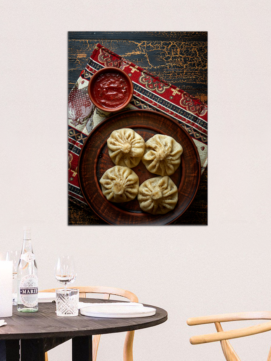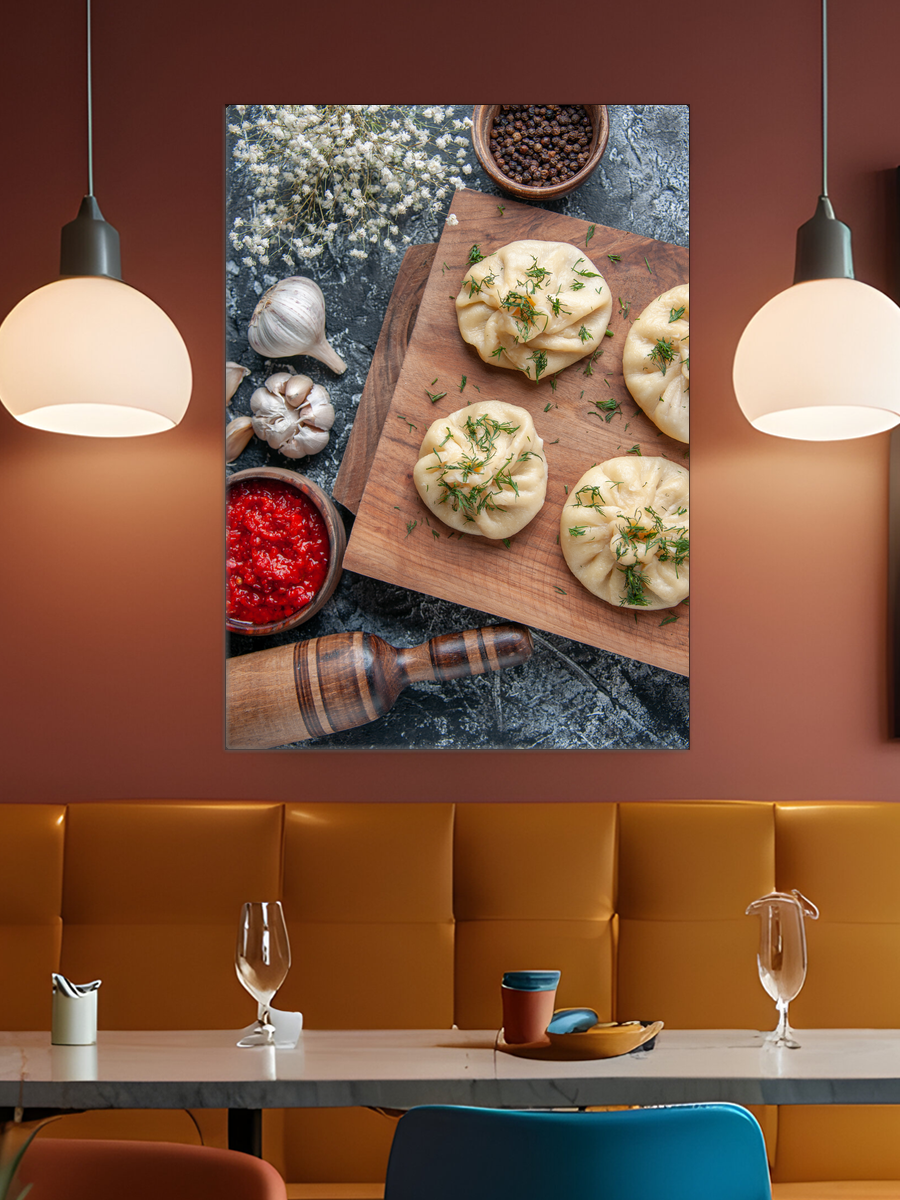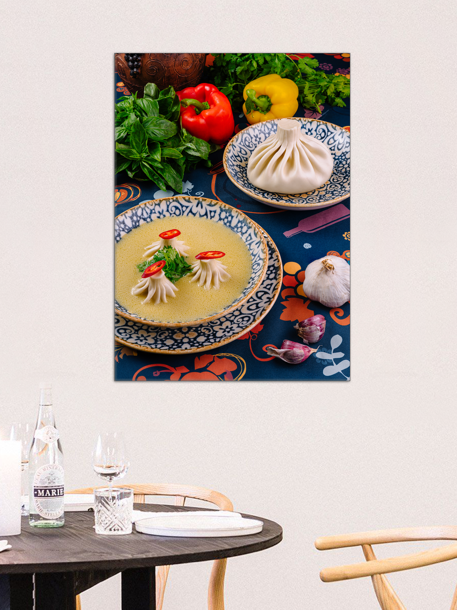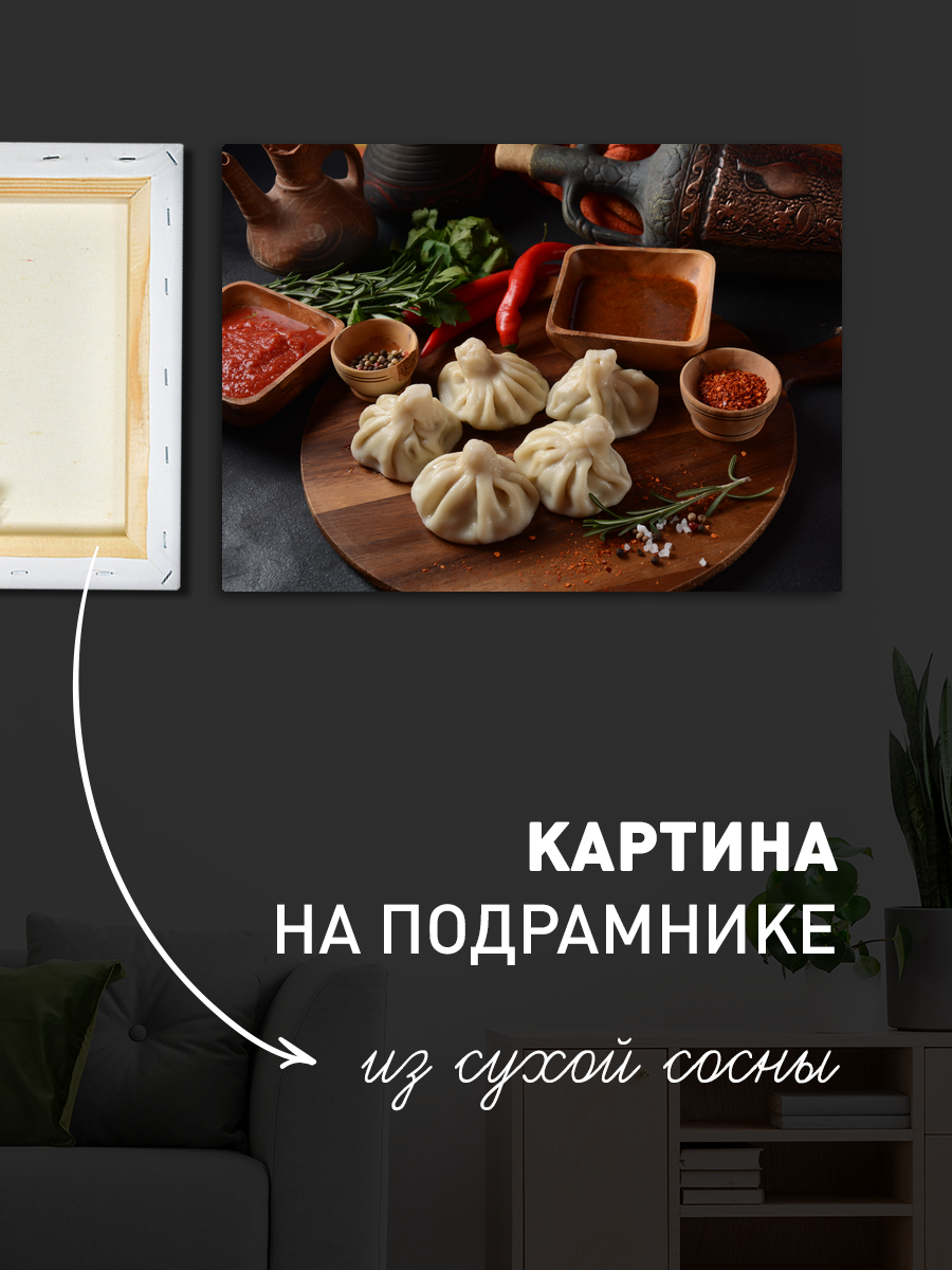 Описание: Картина 50 на 70 "Восточная симфония" изображает аппетитные хинкали, аккуратно выложенные на деревянной доске. Основная идея картины заключается в передаче атмосферности и уюта традиционной кухни, где каждый элемент, от теста до пряностей, рассказывает свою историю. Уникальность этой работы заключается в детальной проработке текстур и цветов, что позволяет зрителю ощутить аромат свежеприготовленных блюд. Эта картина вызывает чувство тепла и ностальгии, погружая в атмосферу дружеских встреч и семейных обедов. Каждая деталь словно приглашает на дегустацию, создавая уютное настроение в вашем доме. Идеально подойдет для кухни, столовой или гостиной, добавляя яркие акценты в интерьер и подчеркивая вашу любовь к кулинарии. Она станет отличным подарком для ценителей восточной кухни и всех, кто ценит домашний уют и атмосферу дружбы.