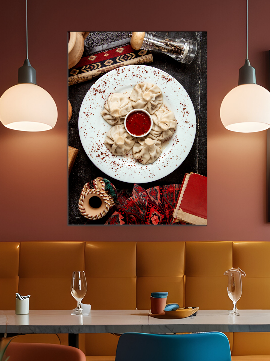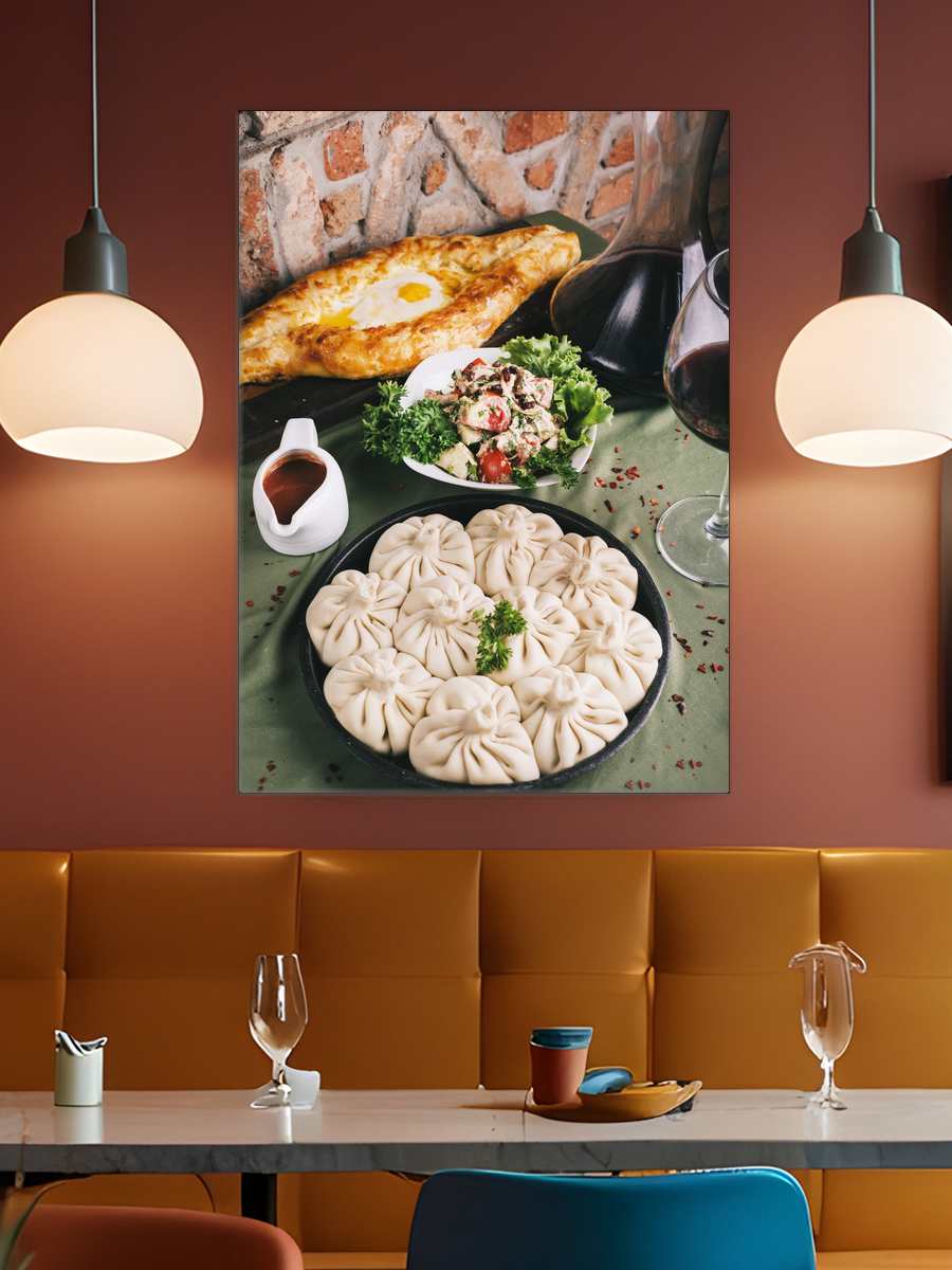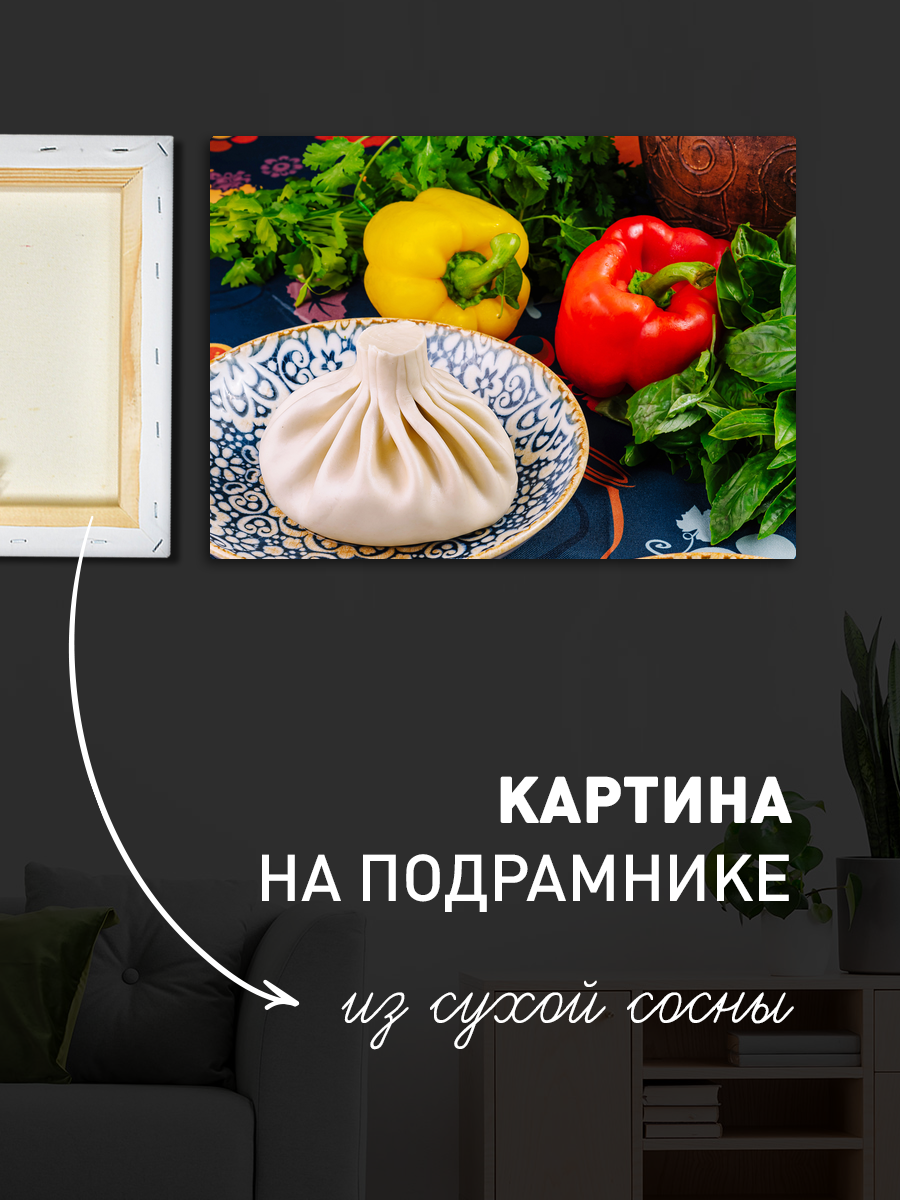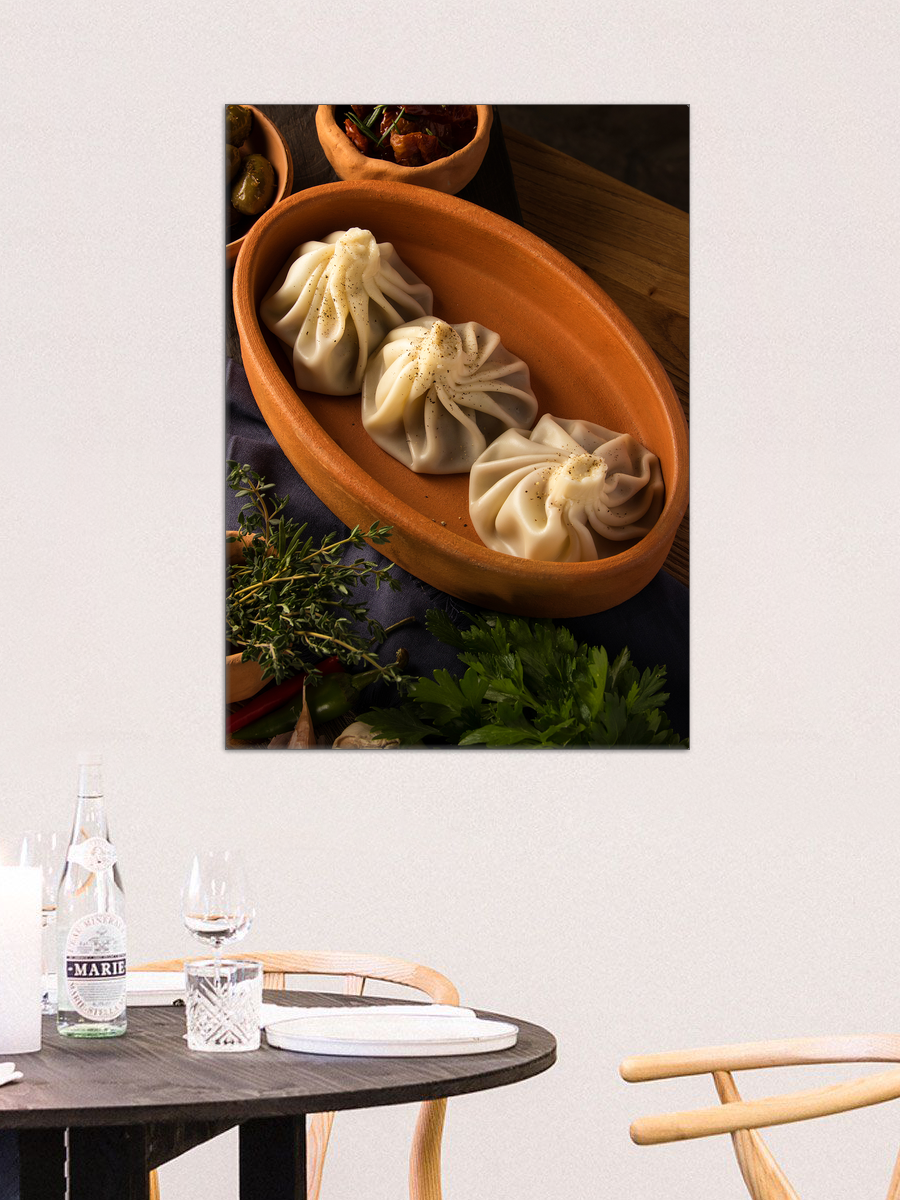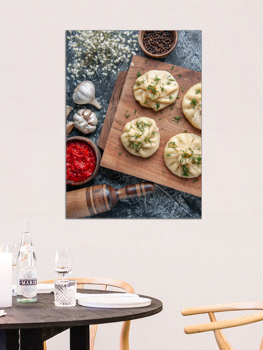 Описание: Картина 50 на 70 "Восточная симфония" изображает аппетитные хинкали, аккуратно выложенные на деревянной доске. Основная идея картины заключается в передаче атмосферности и уюта традиционной кухни, где каждый элемент, от теста до пряностей, рассказывает свою историю. Уникальность этой работы заключается в детальной проработке текстур и цветов, что позволяет зрителю ощутить аромат свежеприготовленных блюд. Эта картина вызывает чувство тепла и ностальгии, погружая в атмосферу дружеских встреч и семейных обедов. Каждая деталь словно приглашает на дегустацию, создавая уютное настроение в вашем доме. Идеально подойдет для кухни, столовой или гостиной, добавляя яркие акценты в интерьер и подчеркивая вашу любовь к кулинарии. Она станет отличным подарком для ценителей восточной кухни и всех, кто ценит домашний уют и атмосферу дружбы.