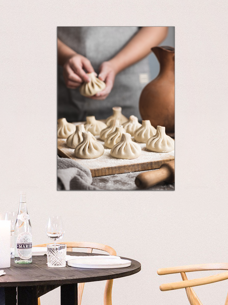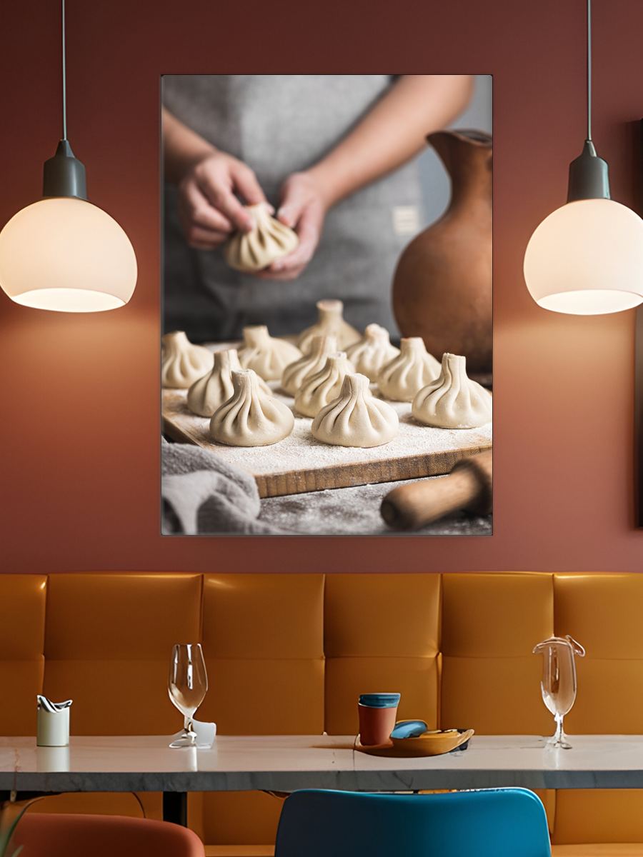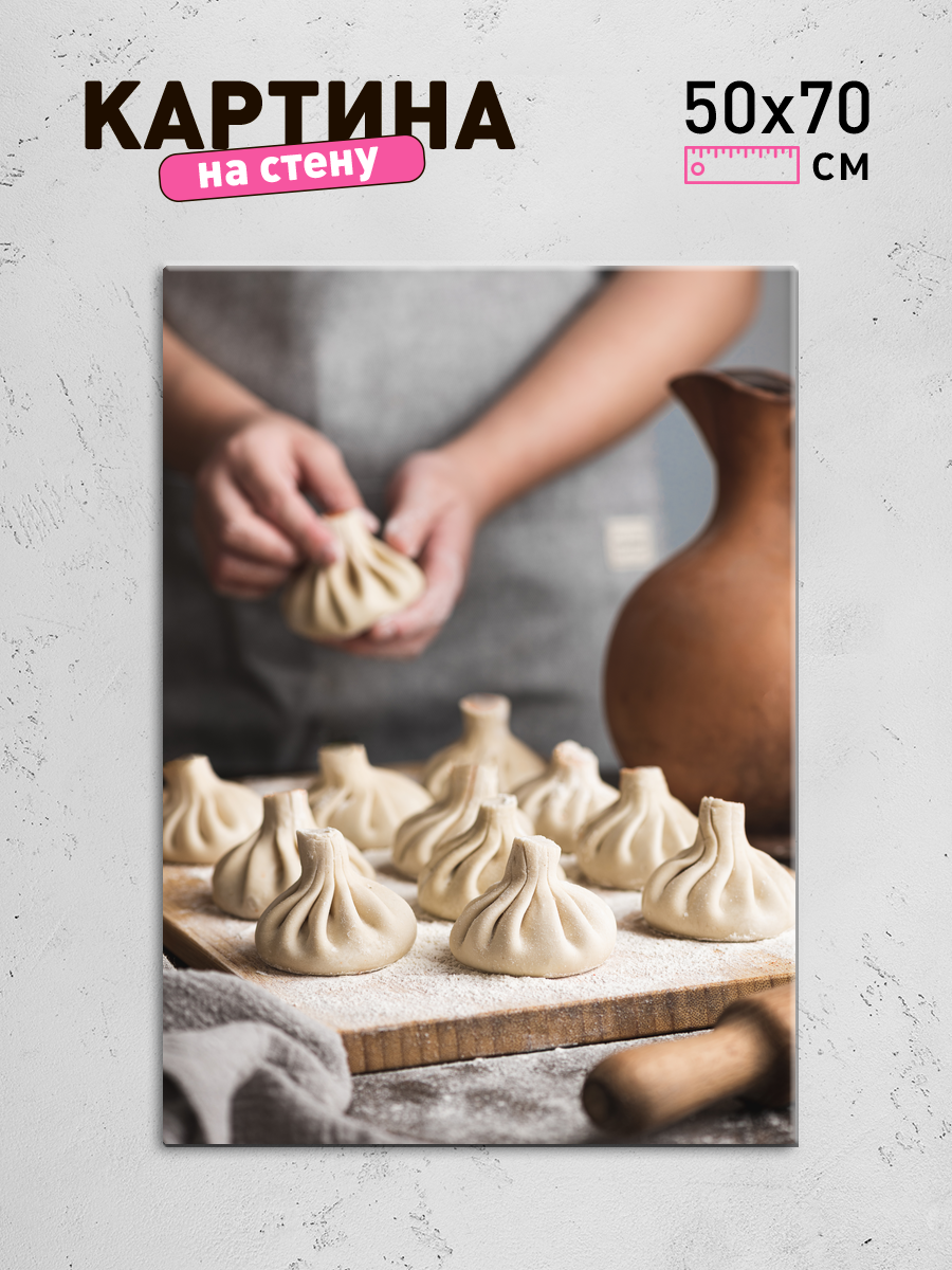 Описание: Картина 50 на 70 "Название картины" изображает процесс создания традиционных хинкали, в центре внимания находятся аккуратно сформированные пельмени, выложенные на деревянной доске, окруженные кухонными аксессуарами. Эта работа погружает зрителя в атмосферу домашнего уюта и тепла, передавая не только мастерство кулинарии, но и культурное наследие. Уникальность картины заключается в тонкой игре текстур и естественных оттенков, создающих ощущение объема и реалистичности. Она вызывает теплые эмоции, напоминает о семейных традициях и радости совместного приготовления пищи. Эта картина станет отличным акцентом в кухне или столовой, добавляя нотку уюта и стиля. Она прекрасно впишется в интерьеры, оформленные в скандинавском, деревенском или современном стиле. Мягкие бежевые и коричневые оттенки создают гармонию с натуральными материалами, такими как дерево и лен, а легкие акценты голубого добавляют свежести. Подарите себе или близким возможность наслаждаться искусством каждое утро, когда вы будете проходить мимо. Эта картина — не просто украшение, это отражение культуры, любви и тепло домашнего очага.