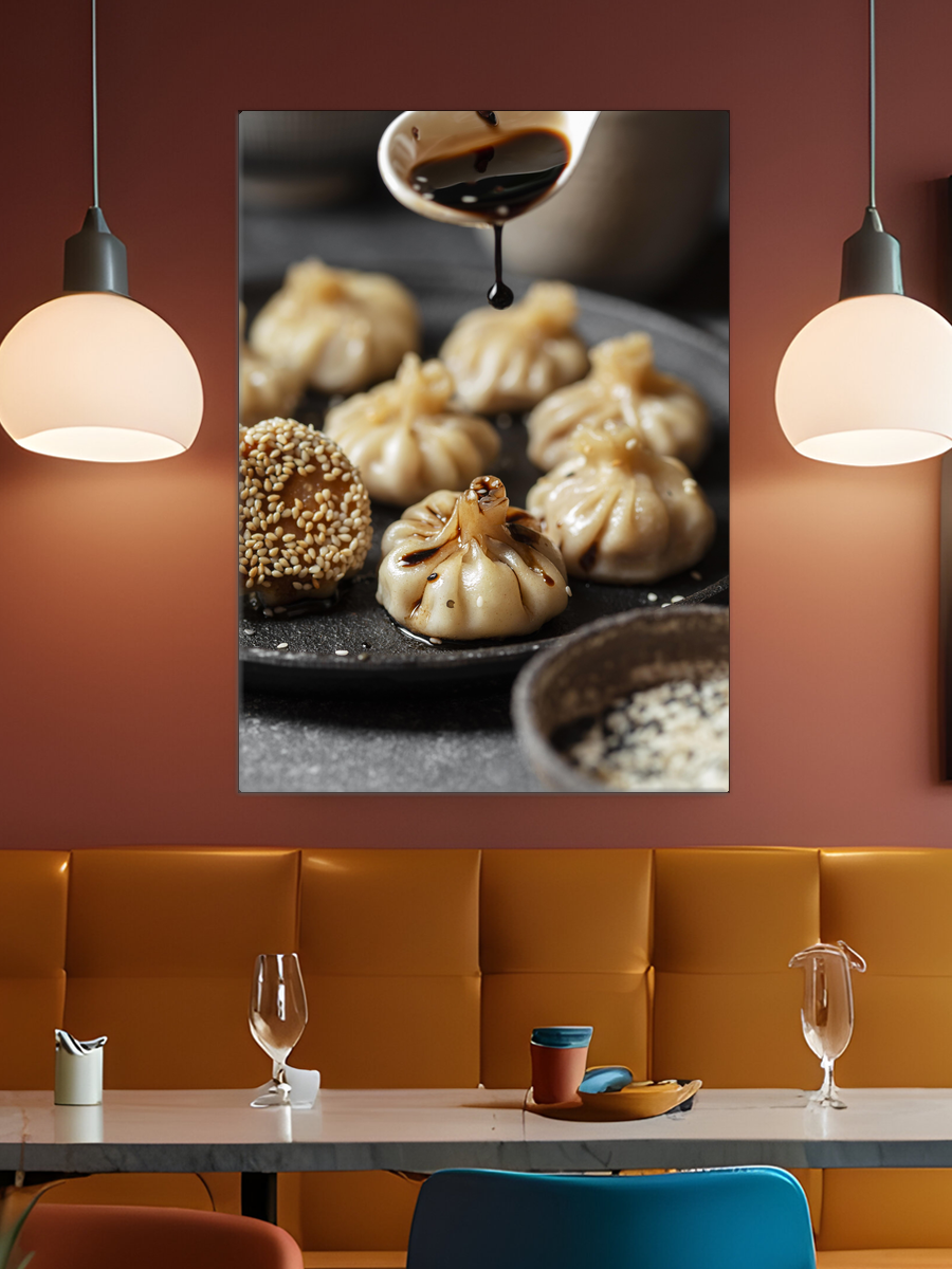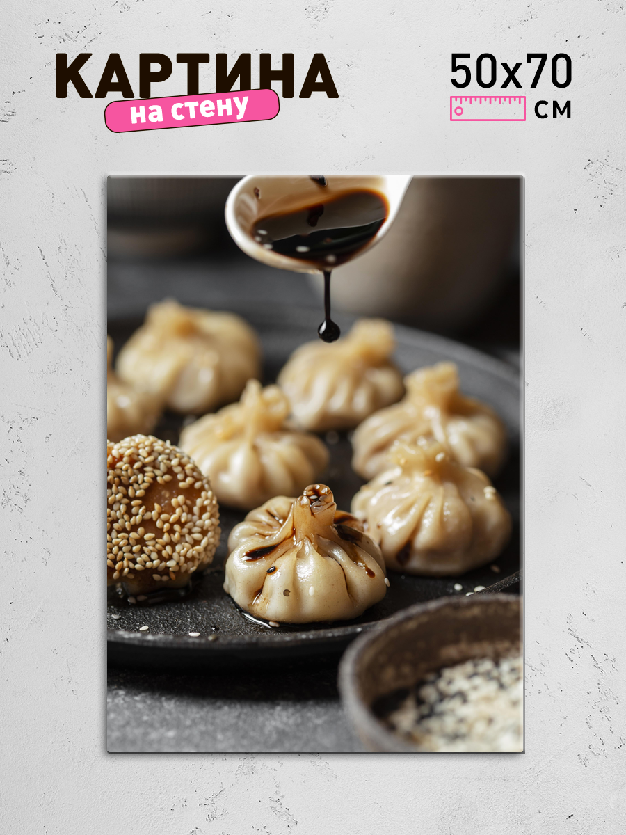 Описание: Картина 50 на 70 'Дымящиеся пельмени' представляет собой изысканное изображение аппетитных пельменей, аккуратно расположенных на тарелке, с каплей соевого соуса, стекающего с ложки. Основная идея картины — передать атмосферу уютного обеда, насыщенного вкусами и ароматами восточной кухни. Уникальность этой работы заключается в детализированной передаче текстур и цветов, которые вызывают желание попробовать эти блюда. Картина вызывает тёплые и приятные чувства, погружая зрителя в атмосферу домашнего уюта и радости от совместных трапез. Она напоминает о семейных встречах и приятных разговорах за столом, создавая вокруг себя ауру комфорта и радости. Эта картина идеально впишется в интерьер кухни или столовой, добавляя нотки восточной экзотики и изысканности. Также она станет прекрасным акцентом в кафе или ресторане, где подают азиатскую кухню. Повешенная на стену, она будет привлекать взгляды и вызывать аппетит, создавая атмосферу дружелюбия и гостеприимства. Не упустите возможность украсить своё пространство этой уникальной картиной, которая станет не только стильным элементом декора, но и источником вдохновения для кулинарных экспериментов.
