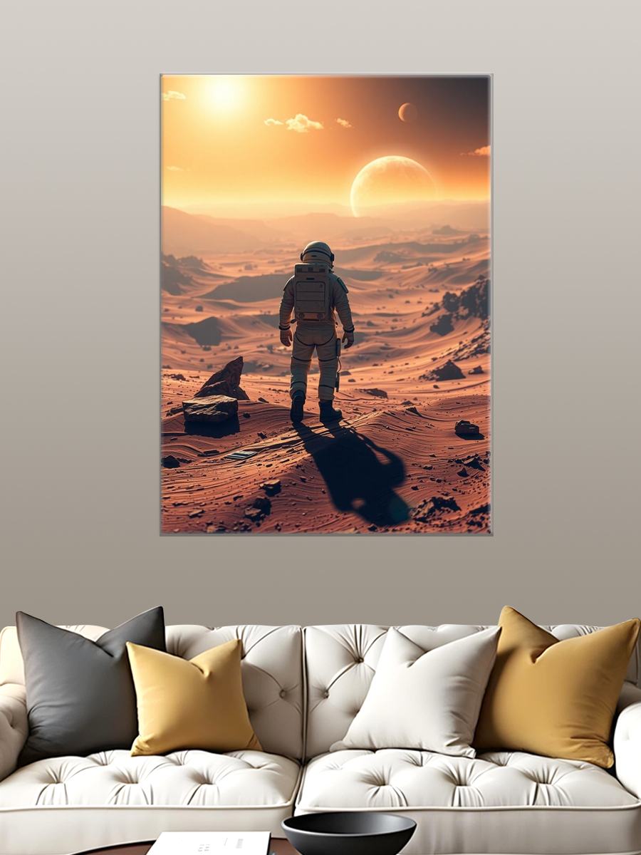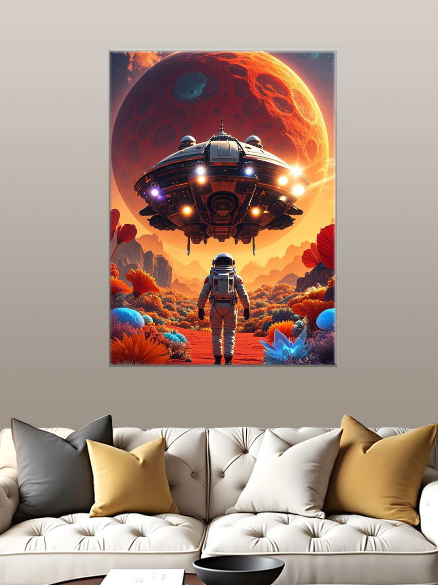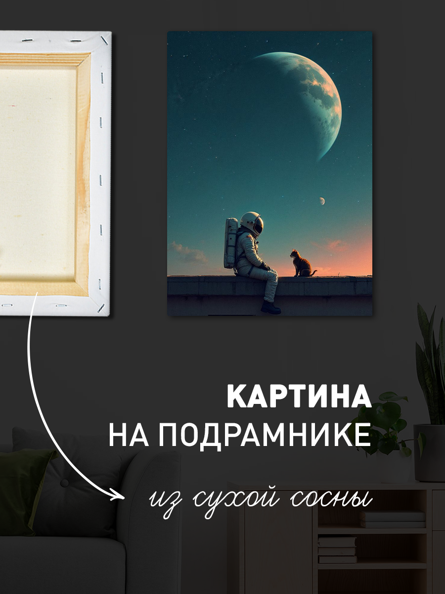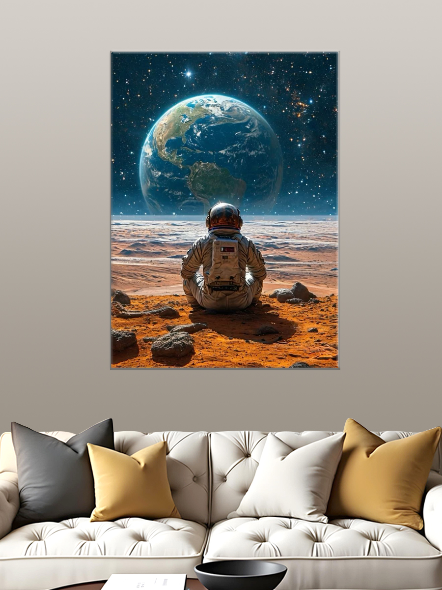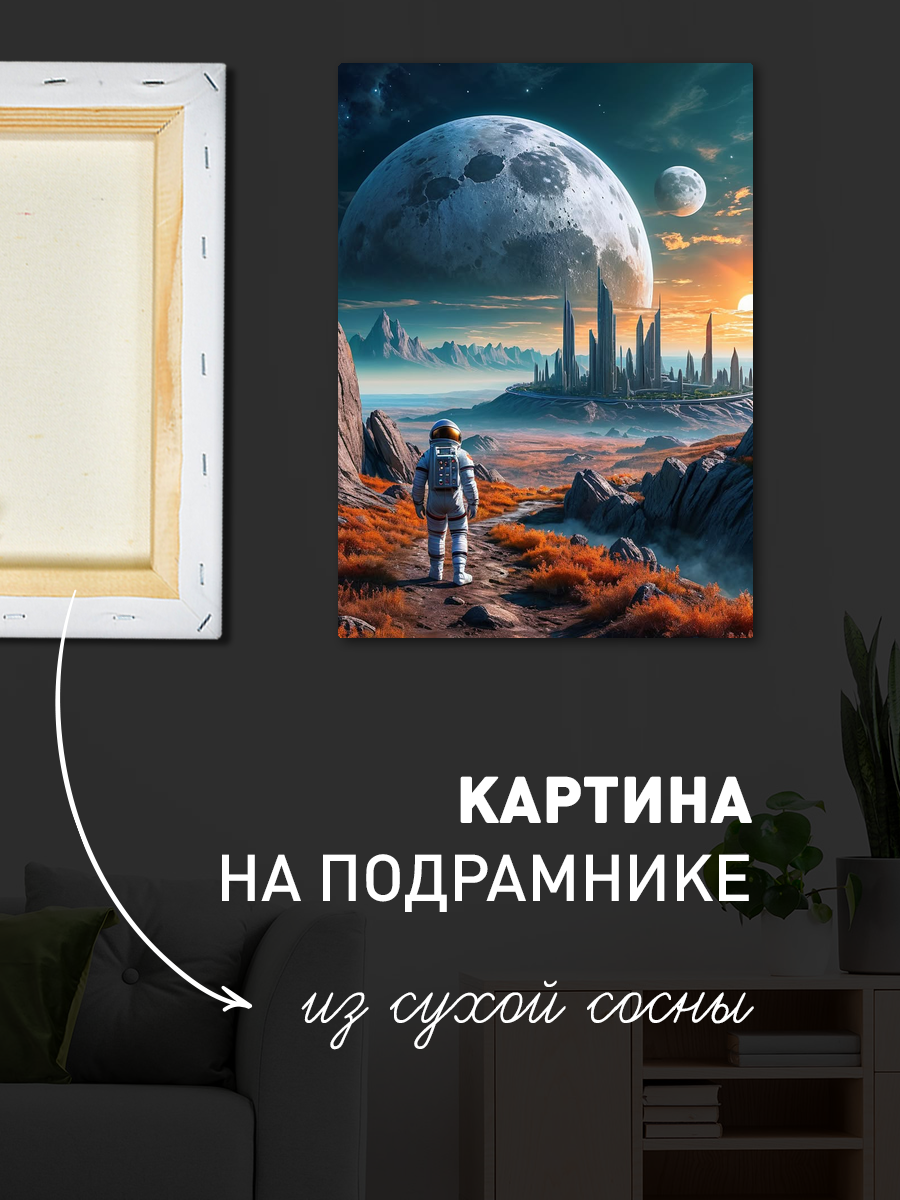 Описание: Картина 50 на 70 "Космическое созерцание". Эта удивительная работа изображает астронавта, сидящего на марсианской поверхности и созерцающего нашу Землю вдалеке, окруженную звёздами. Основная идея картины — это исследование и одиночество, момент тишины и размышлений в бескрайних просторах космоса. Уникальность заключается в комбинировании реалистичного изображения астронавта с абстрактным космическим фоном, создающим ощущение безмятежности и величия. Эта картина вызывает глубокие эмоции: она пробуждает чувства восхищения и стремления к открытиям, заставляет задуматься о месте человека во Вселенной. Вы будете чувствовать спокойствие и вдохновение, глядя на неё, как будто она переносит вас в другие миры и заставляет мечтать о новых горизонтах. Картина идеально впишется в современный интерьер: её можно разместить в гостиной, кабинете или спальне, добавив нотки космической тематики и стиля. Она станет отличным акцентом в любом пространстве, подчеркивая индивидуальность и вкус владельца. Не упустите возможность украсить свой дом этой вдохновляющей работой, которая будет радовать глаз и напоминать о бесконечных возможностях нашего мира.